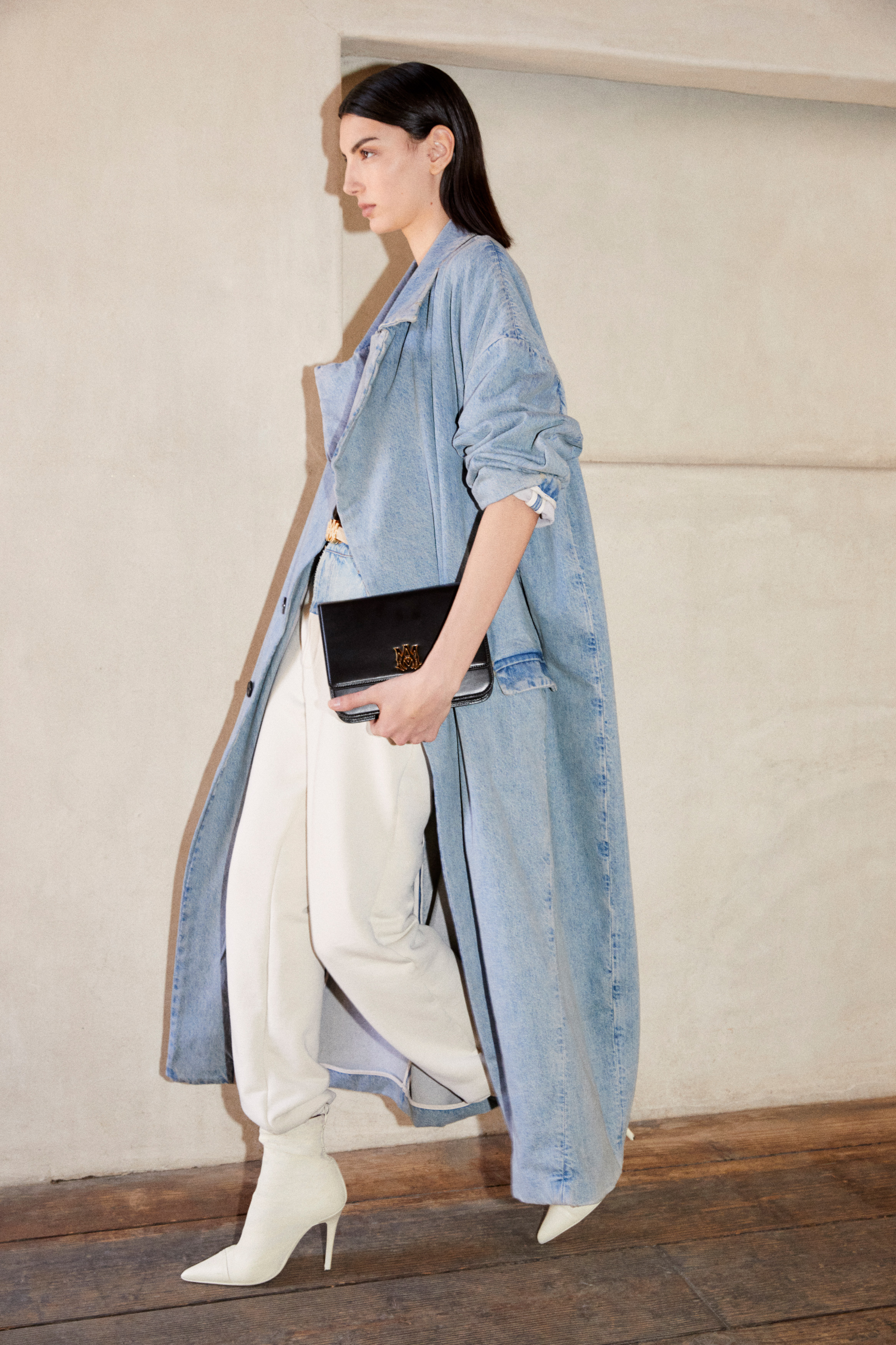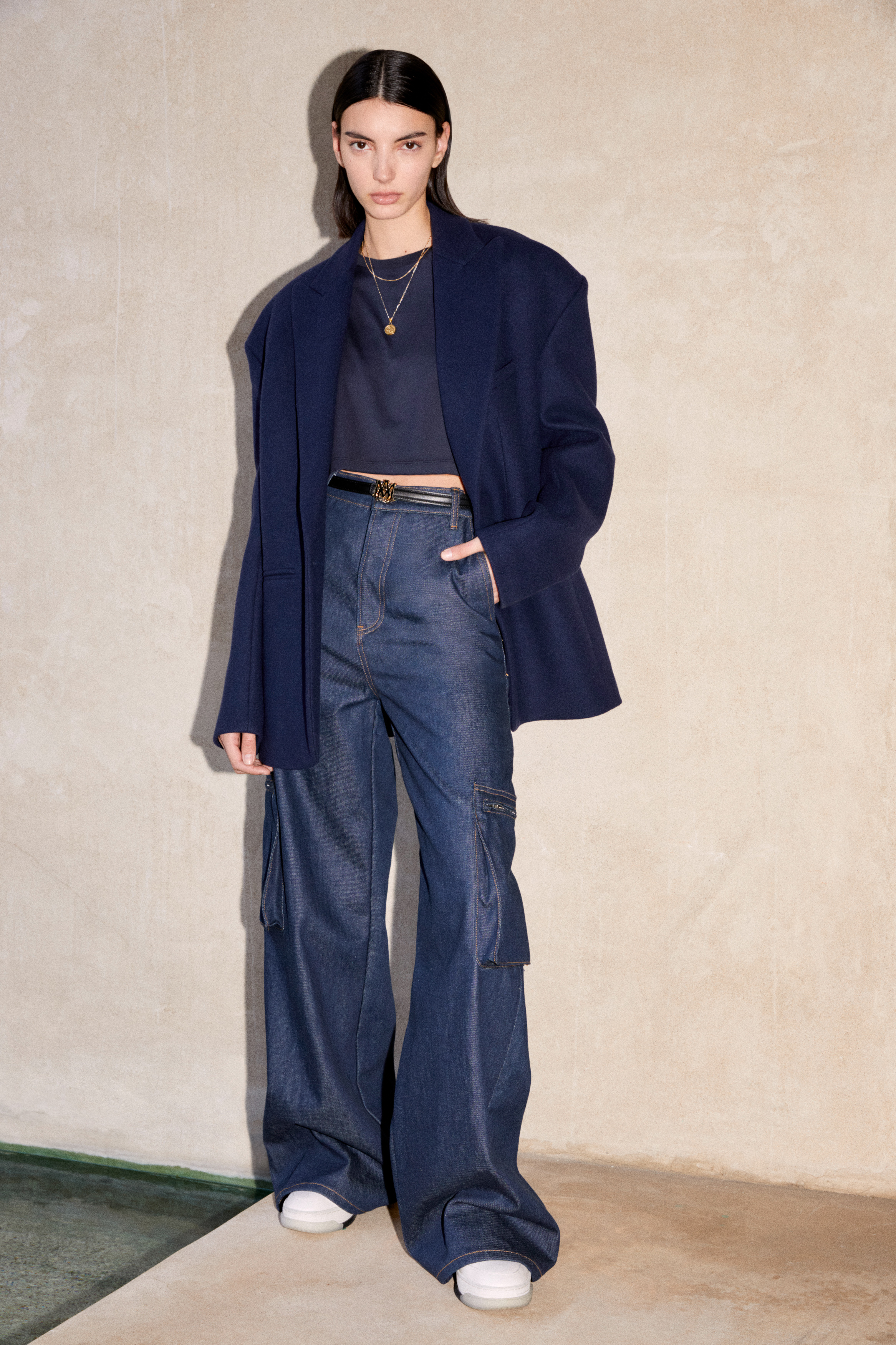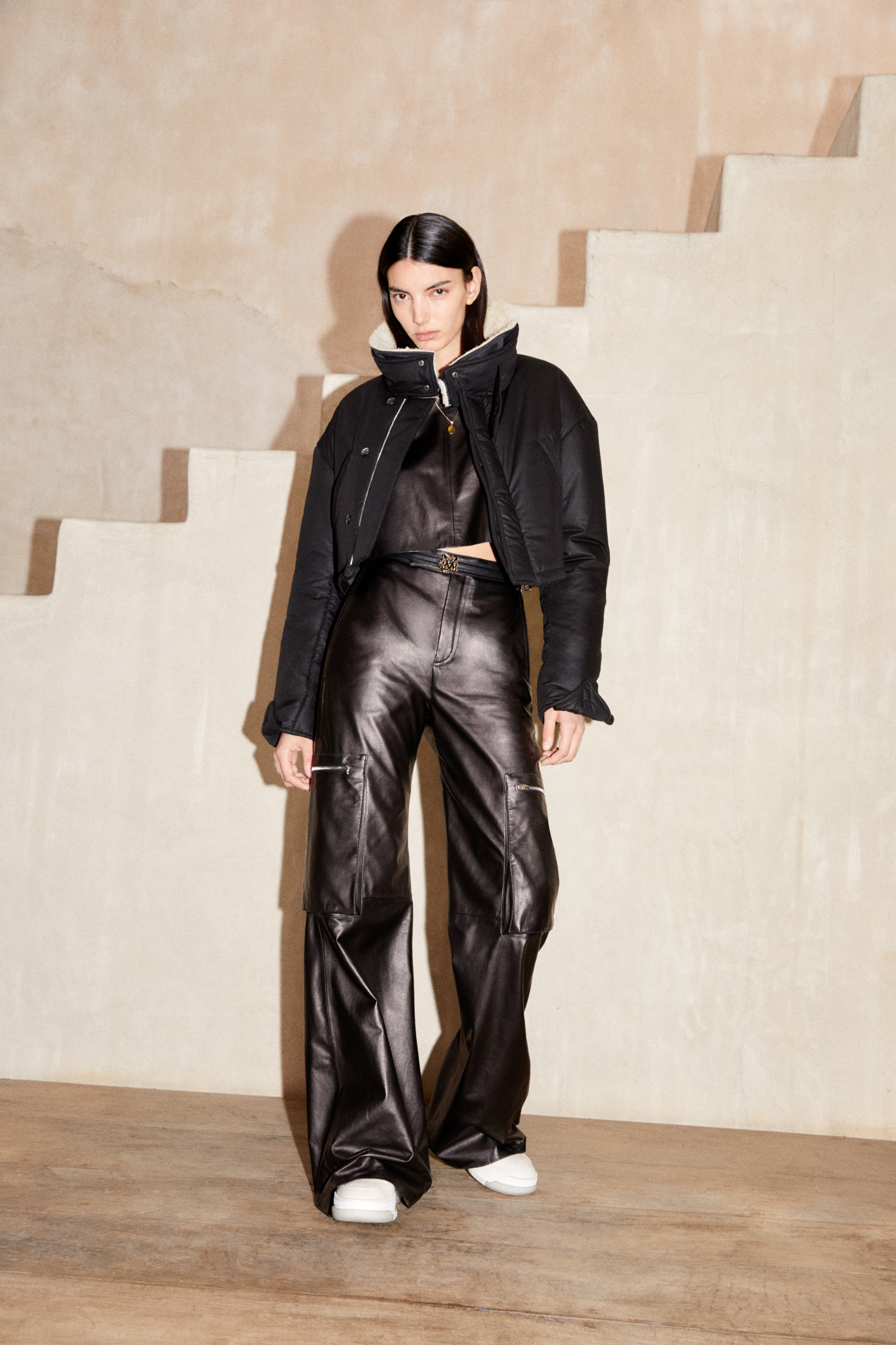 Feminine and established, Mike Amiri builds character through volume. Outlined by AMIRI’s ubiquitous utility silhouettes, the collection focuses on dynamic shapes and an elevated attitude; recognized by defined, oversized outerwear, relaxed body and wide-leg, cargo flare.