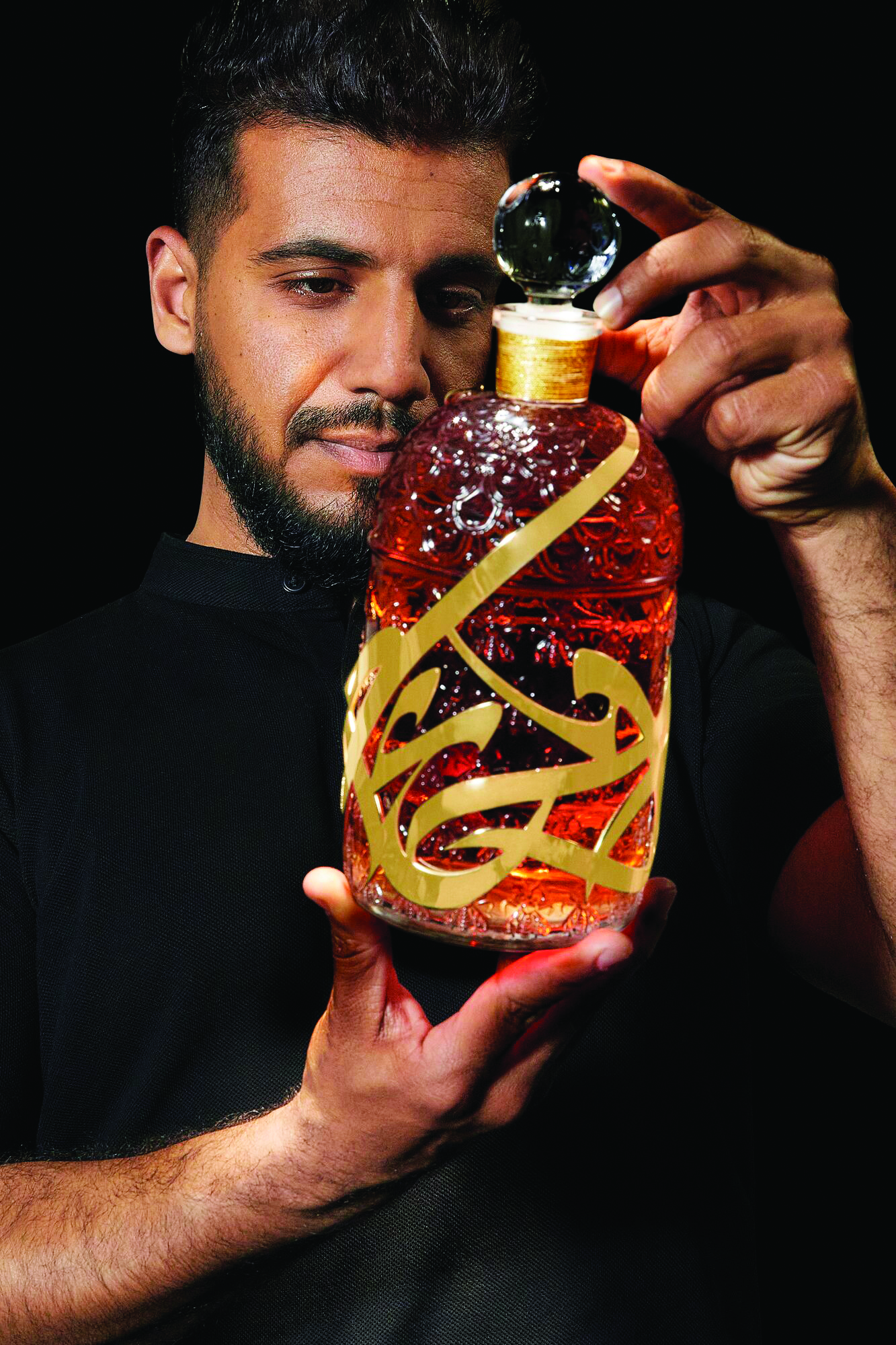 Voluptuous shapes, graceful curves, soaring lines. In a bold artwork that weaves stylized Arabic characters with Guerlain’s “G”, Inkman has turned the emotion of the scent into a visual poem. To craft this exceptional piece, made to measure for each bottle, the House has called on the legendary Parisian jeweler Goossens, a symbol of French savoir-faire.
