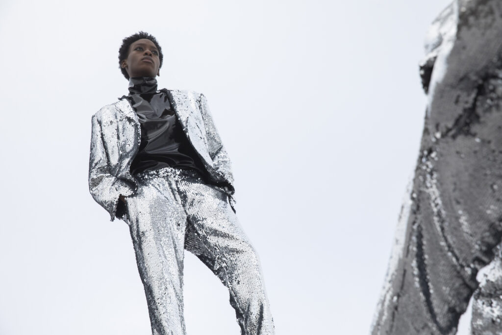 I think that the subject of fluidity is central today. What interests me is the allure, the attitude and to me, it seems only natural to blur gender. In fact, many women have worn pieces from our menswear Couture and I’m very mindful of this desire. I also love being able to create unique fully embroidered suits that scintillate and this season I covered them in sequins and crystals.