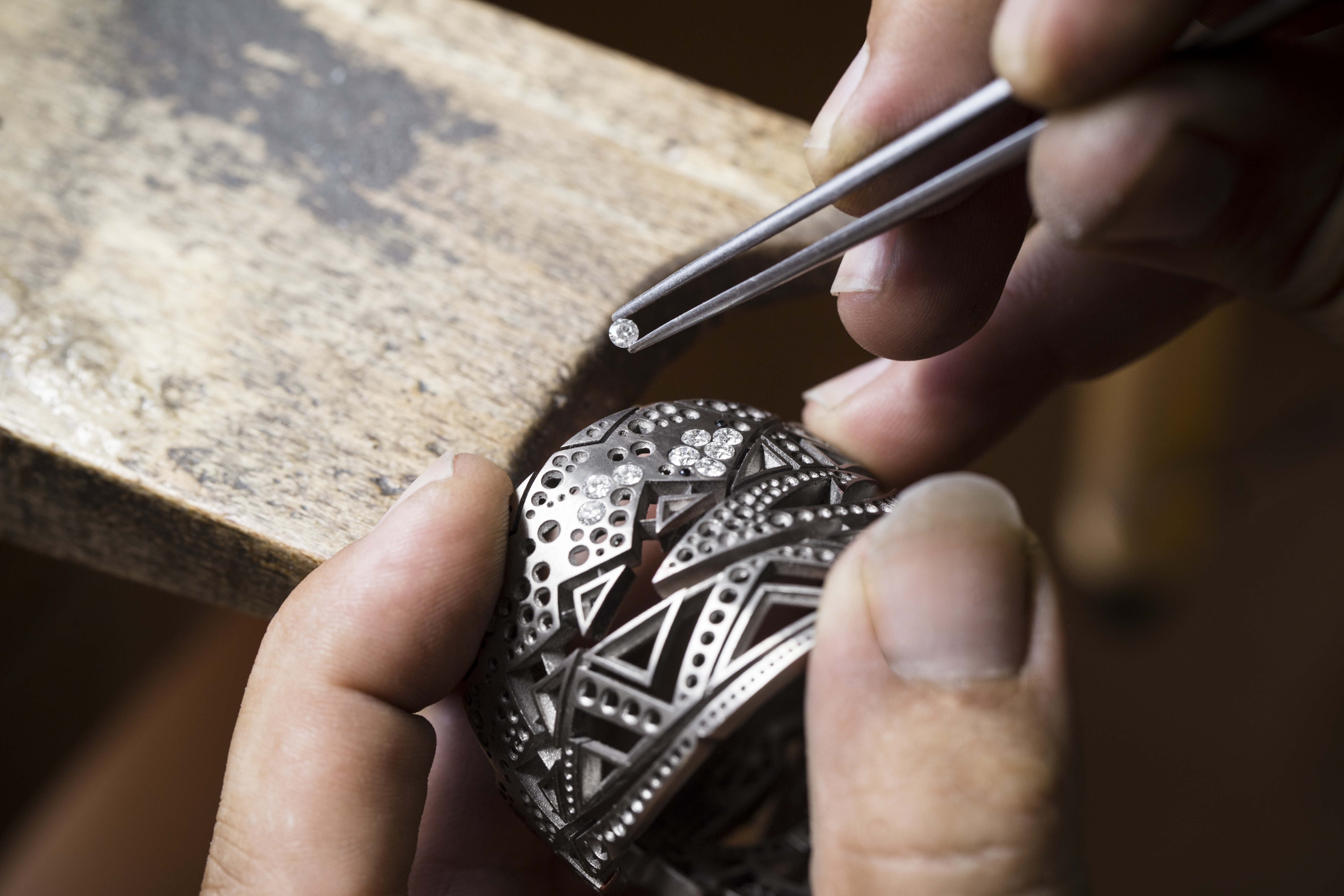 Placing 99.53 carats of beautiful diamonds demanded 1,565 hours of work.