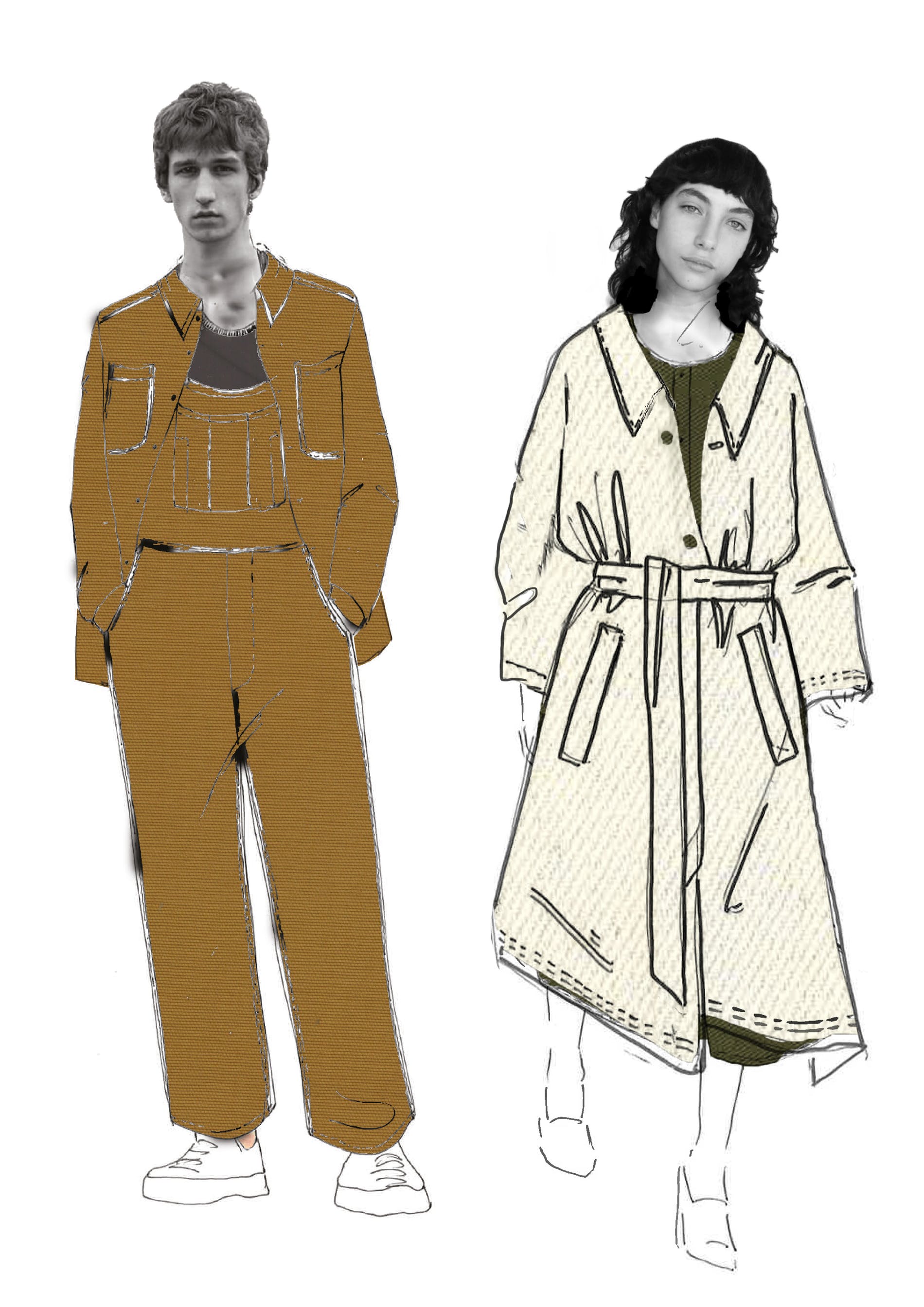 · LA CORNICHE – meaning ‘a road above the sea’ takes its inspiration from nature – the sun, wind, water and stones, includes jackets, jumpsuit.