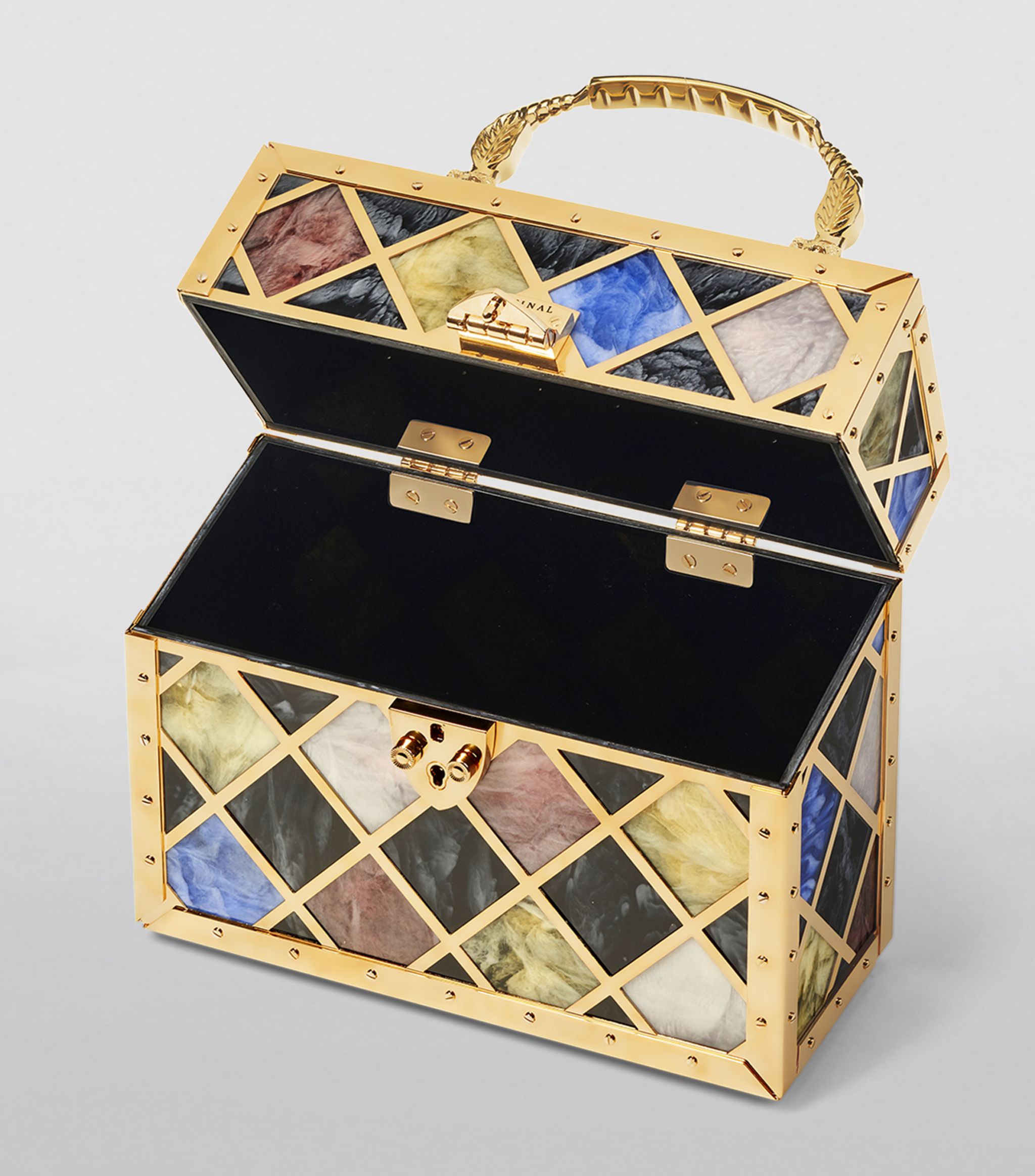 The Luna, which is the ultimate evening accessory, is an eye-catching style that can be carried by hand or worn draped over the shoulder with the detachable chain strap. And just when we think we have a winner, we see the latest addition to Aspinal of London's Trunk collection, the Harlequin-like Mosaic bag is crafted with marble-effect panels bonded together by a gold-tone frame, the colourful diamond-like pattern offers the ultimate statement.