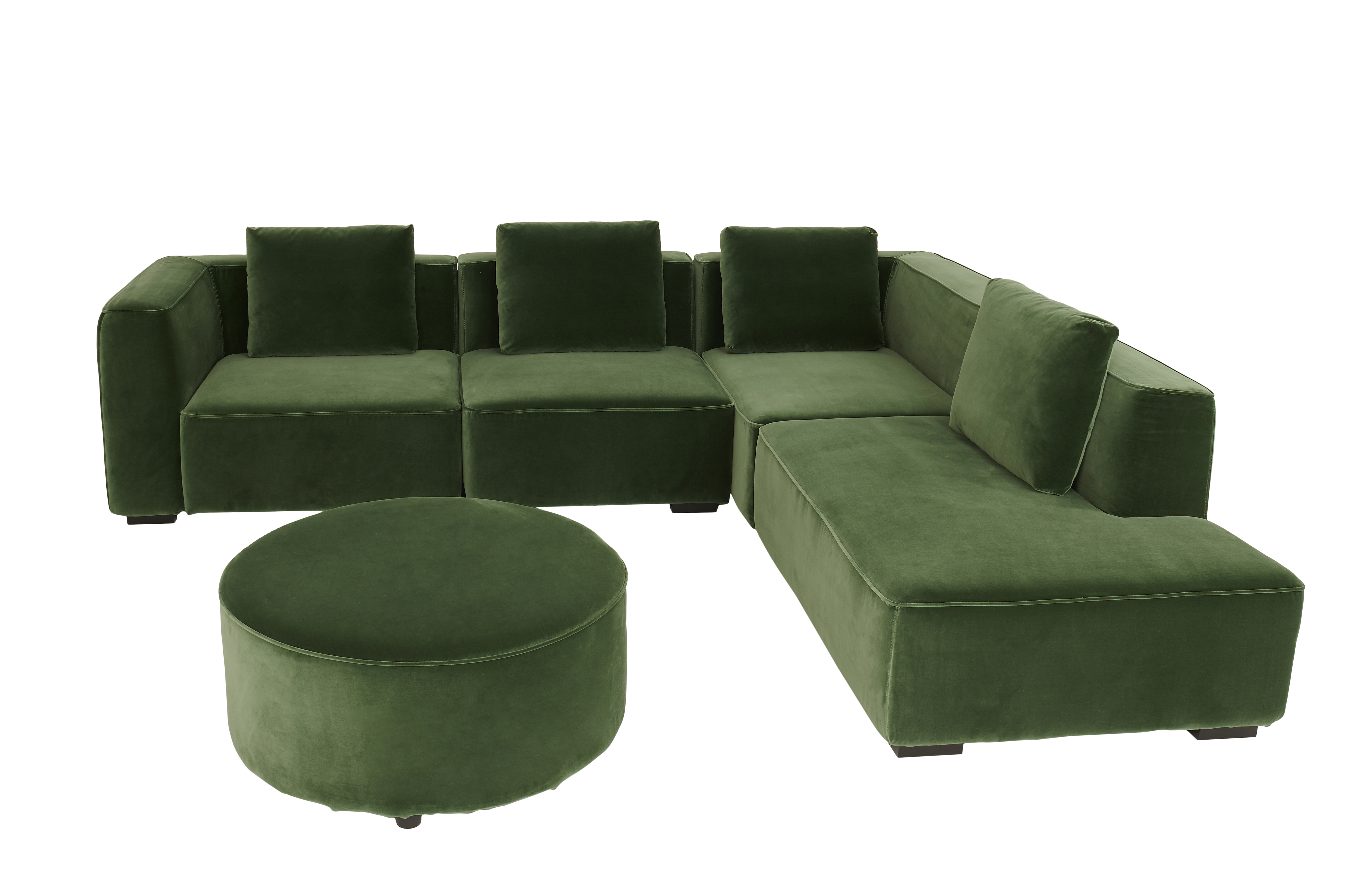 Consider size first: If you have a bigger living room, you’ll need to decide exactly how much of the living room space you want your couch to fill. Do you want to include other couches or chairs? Do you want a coffee table? If so, a simple sofa, or one with a slight L-shape is probably the best fit. If you’re looking for a sofa that will be the focal point of your living room, look for round shapes that take up a bit more room and provide a lot of seating.