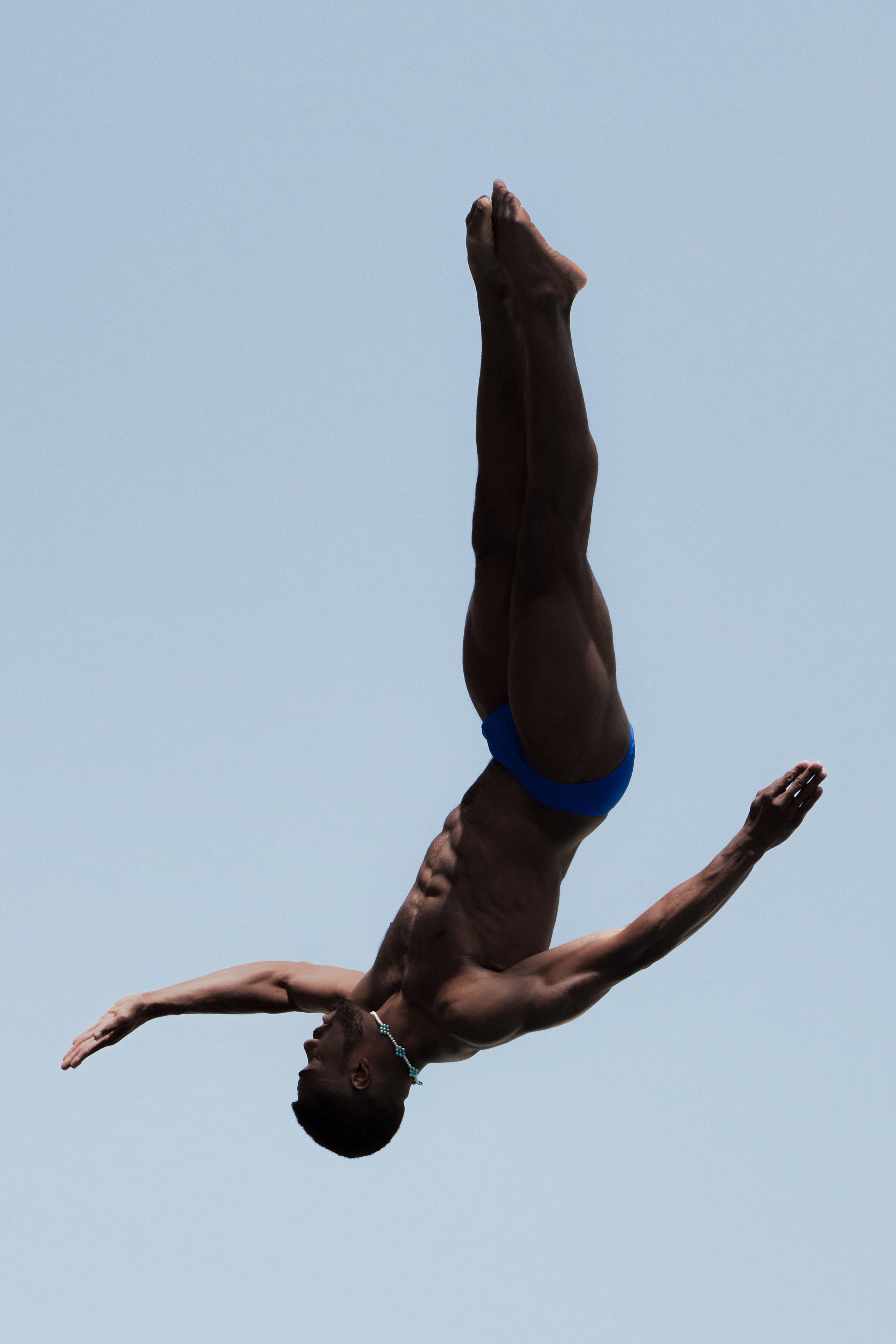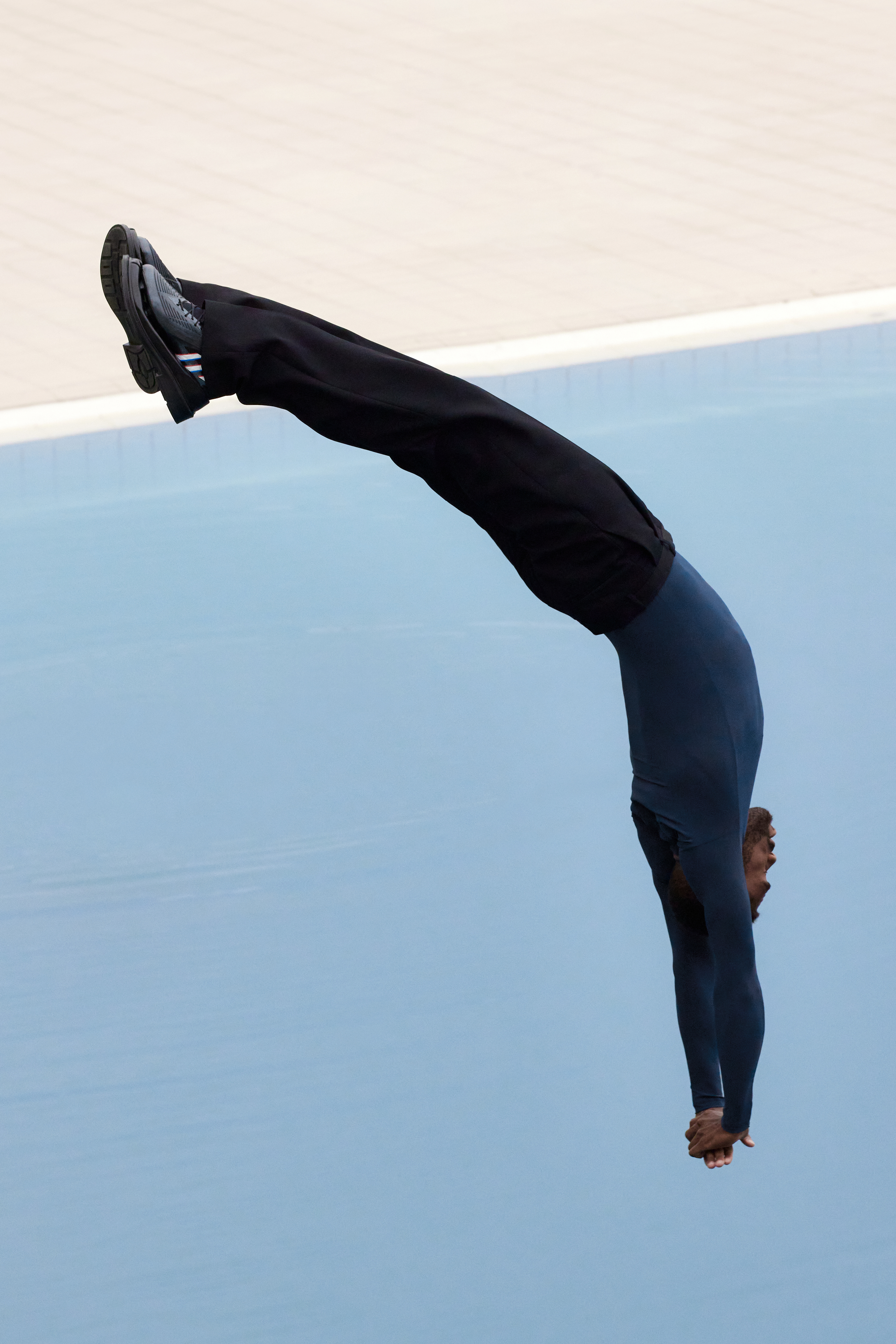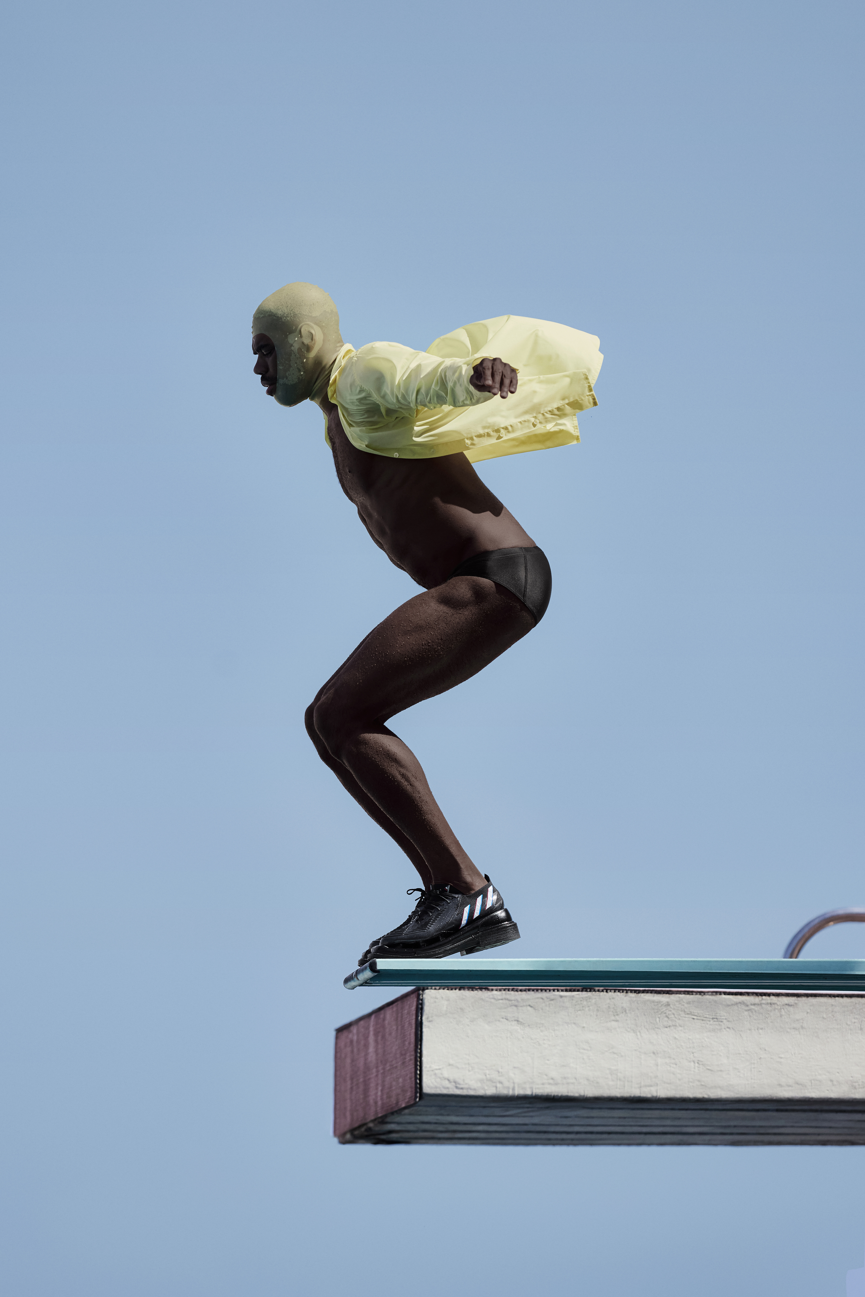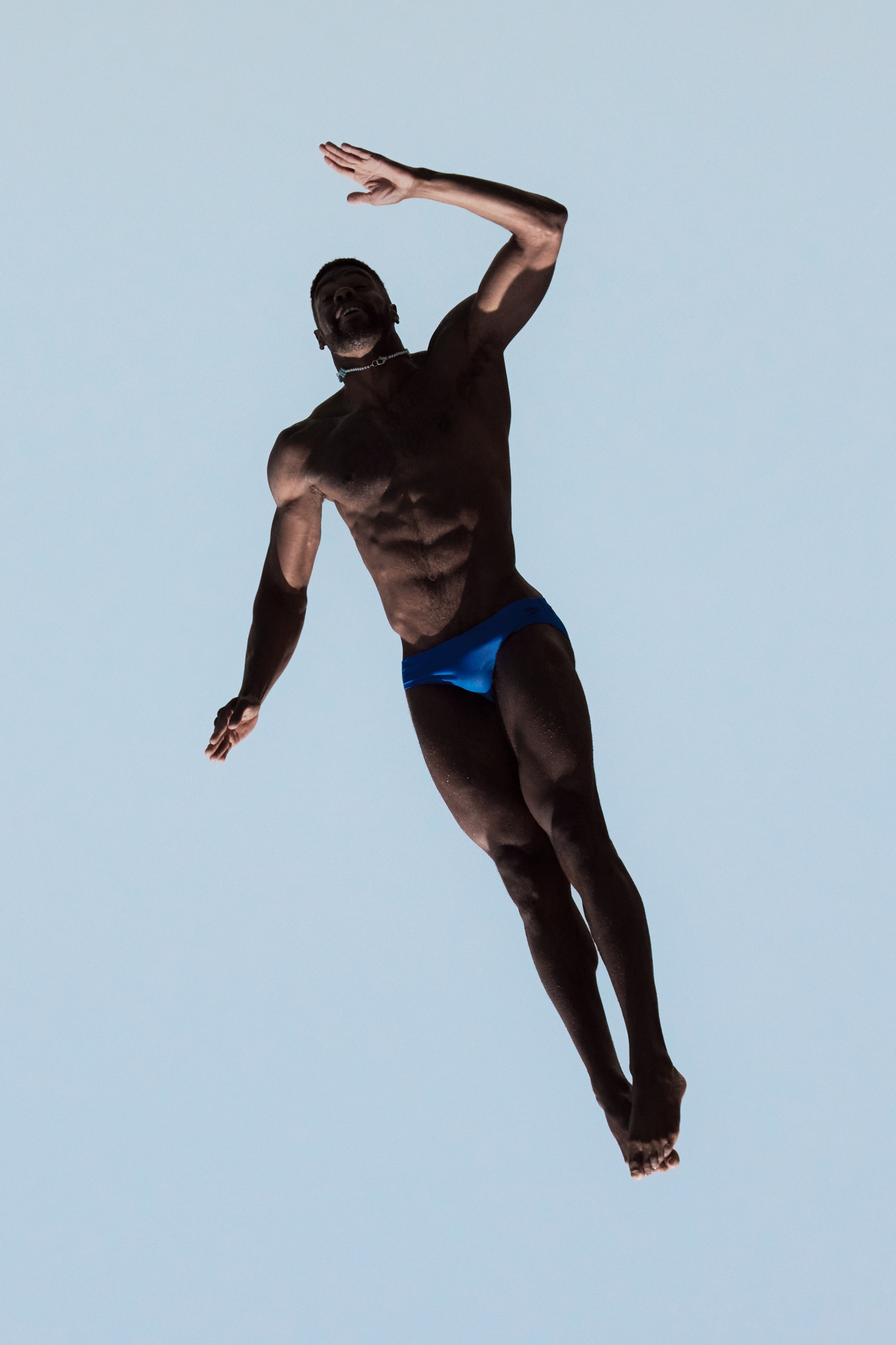 Pride of our caribbean DNA is central to us and therefore THE DIVE features and celebrates Yona Knight-Wisdom, the first Jamaican platform diver to compete in an olympic game. Yona's mastery of his craft conveys the beauty of a sport that uses the human body artistically as a canvas for expression. There lies the natural connection to fashion and what draws us together. As a fashion house, our work and our art come to life through the human body.