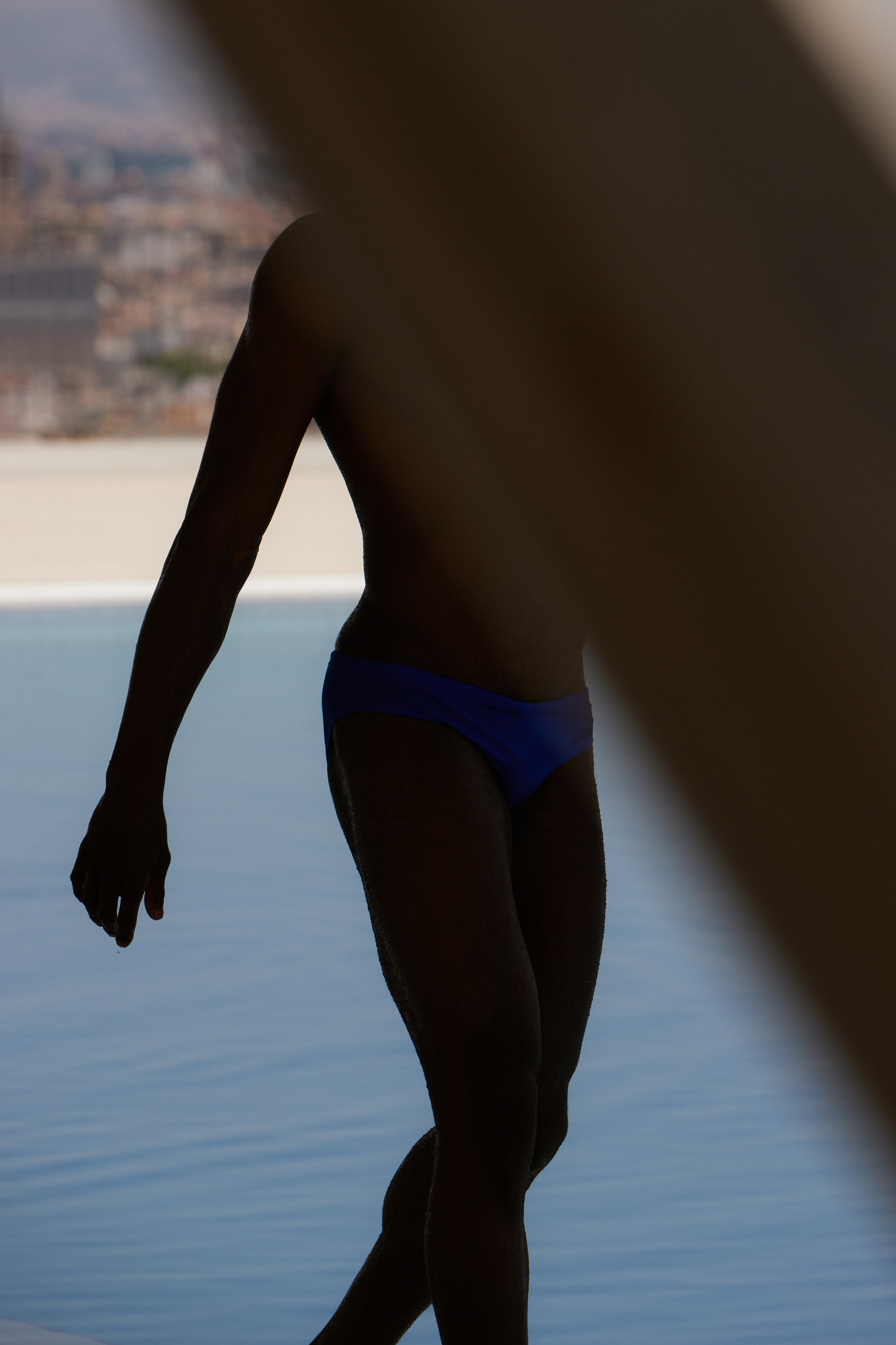 The campaign was shot at Piscina Municipal de Montjuïc, in Barcelona. The exquisite view of the cityand Gaudi's La Sagrada Familia Basilica make it one of the world's most beautifel and traditional open-air diving pools and provided a dramatic setting for the campaign.