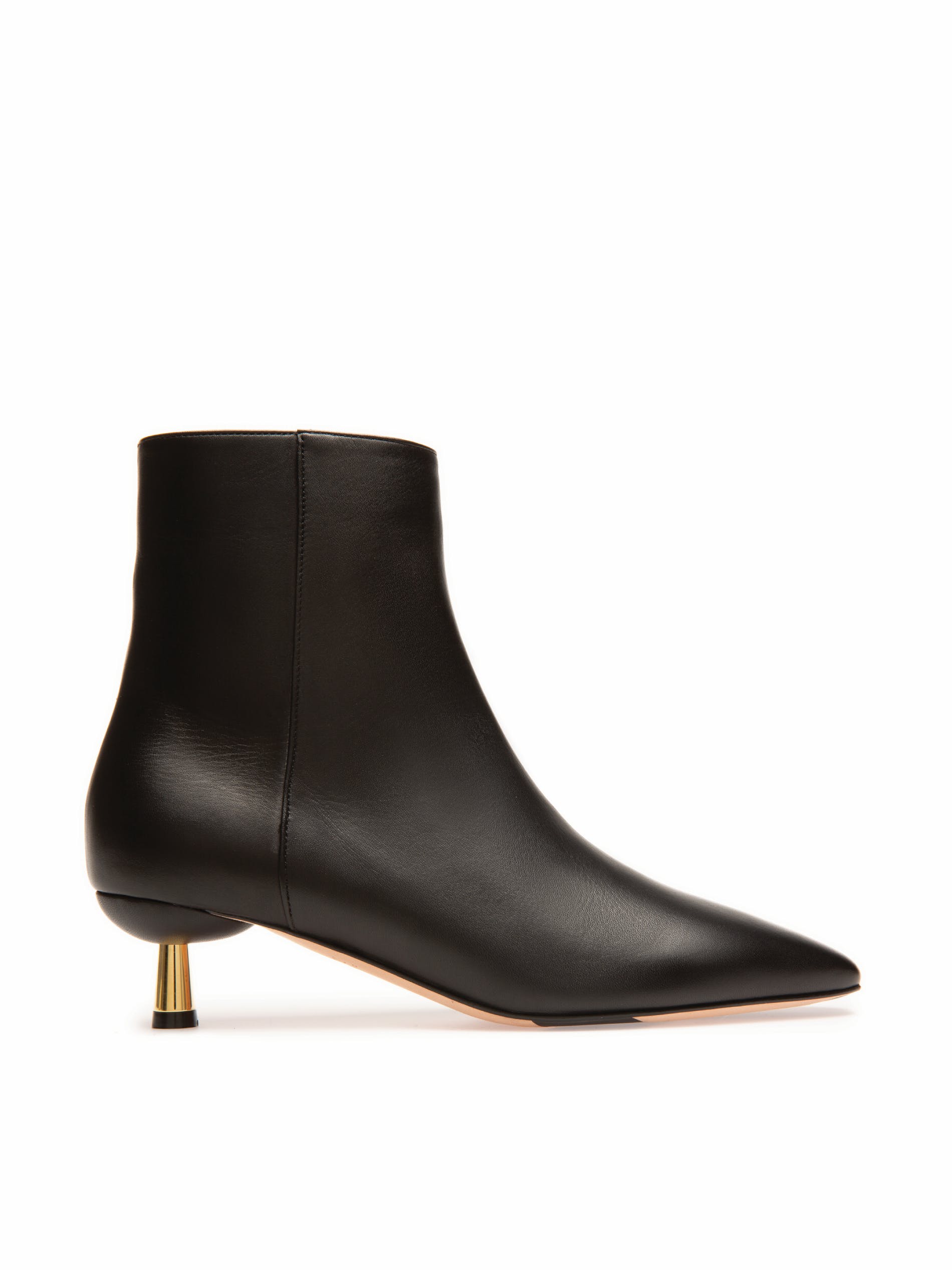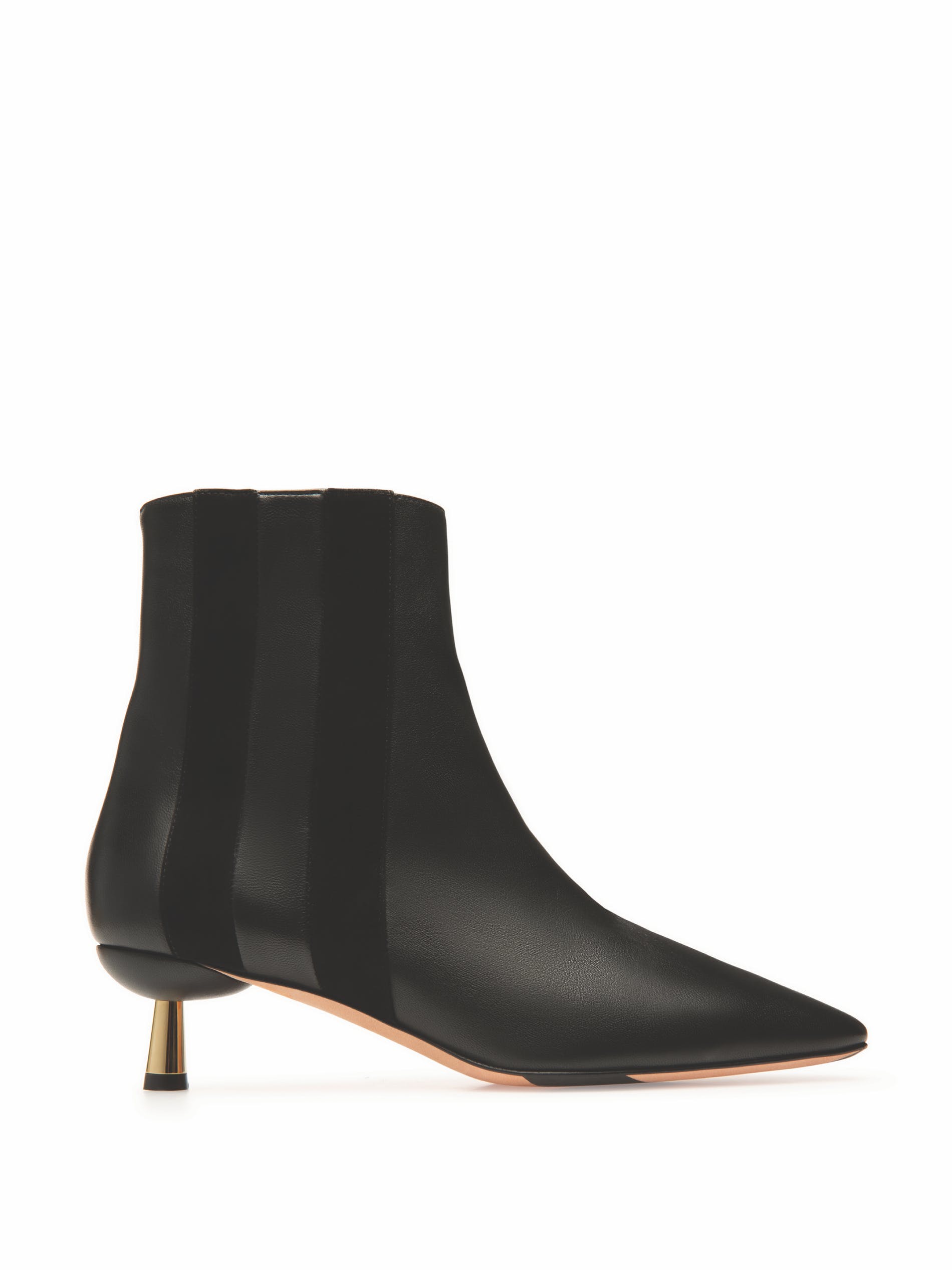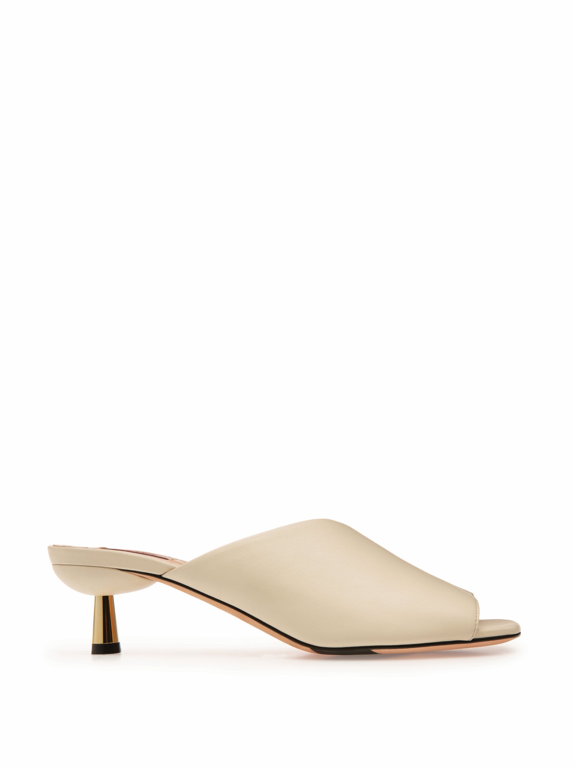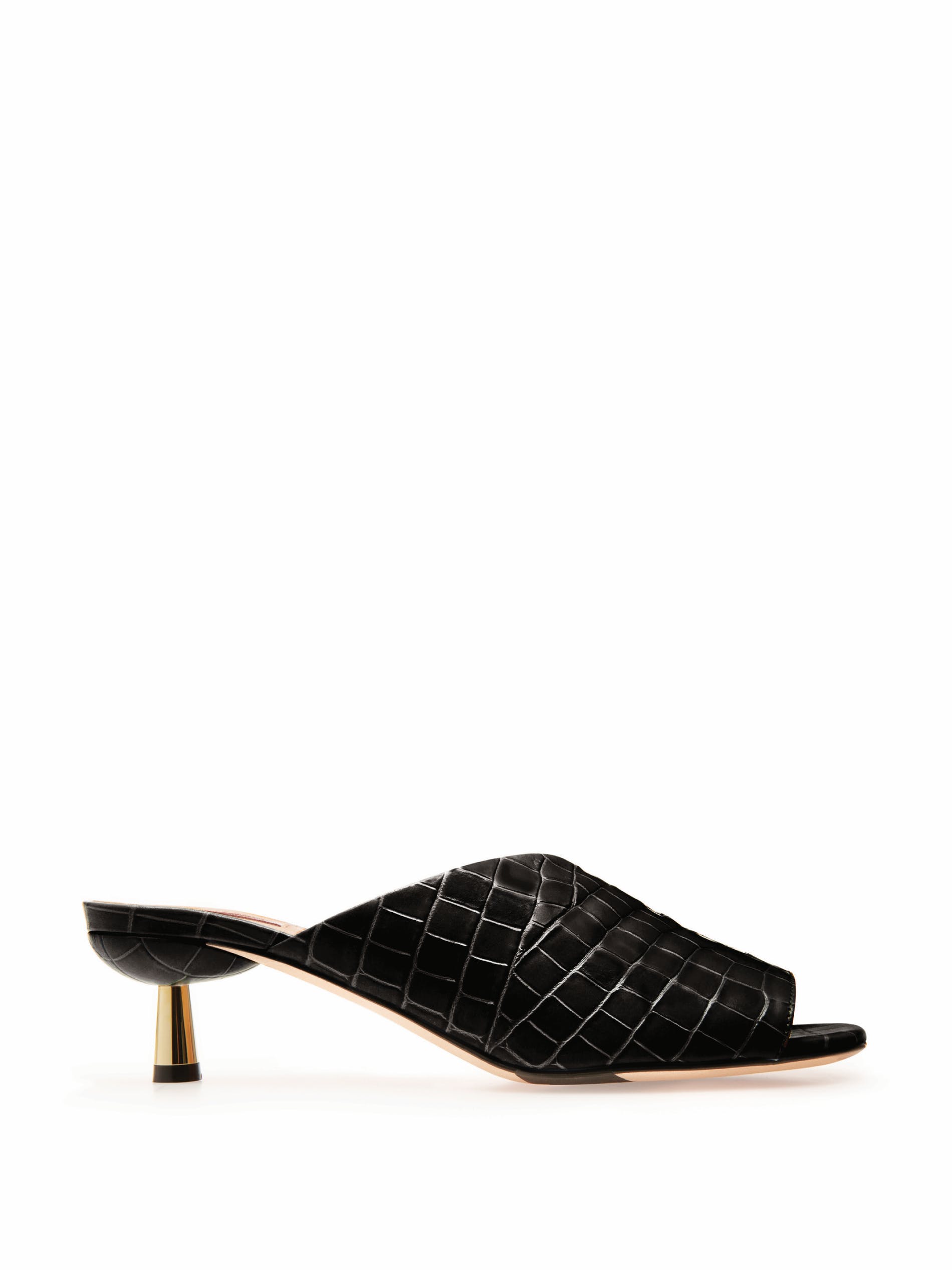 Boasting a structural chisel toe and a metallic golden kitten heel, directly inspired by a 1960’s style from the Bally archive, the Callie is available in mandarin orange, seashell blue and classic colours like black, bone and white.