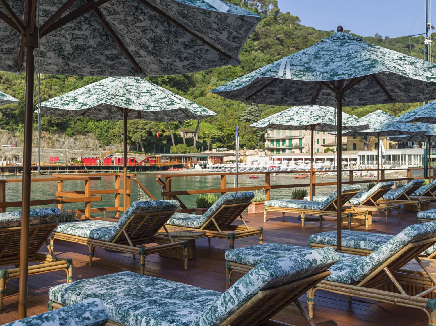 This year will see a Dior pop-up spa cabin grace the beach, offering innovations in mind and body relaxation, as the cabins and furniture of the waterfront beach club including a lounge bar will be transformed by Dior with the vibrant nature-green toile de Jouy print. A step away from Bagni Fiore, Langosteria Paraggi, with its pied-dans-l'eau restaurant, will welcome guests every day from lunch to dinner.