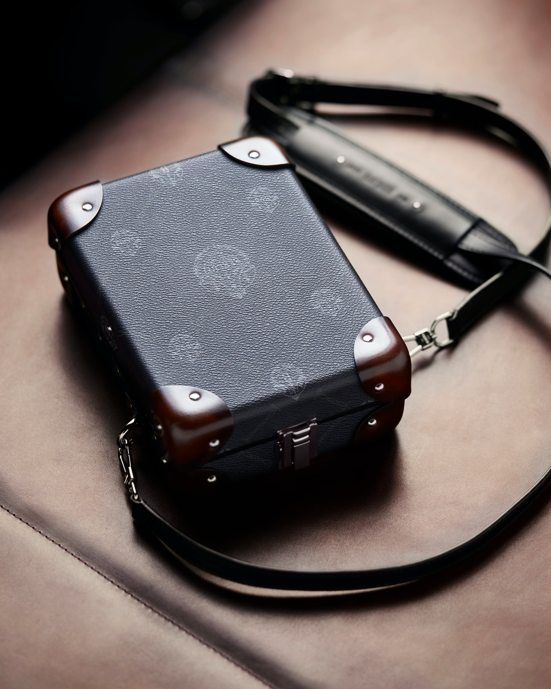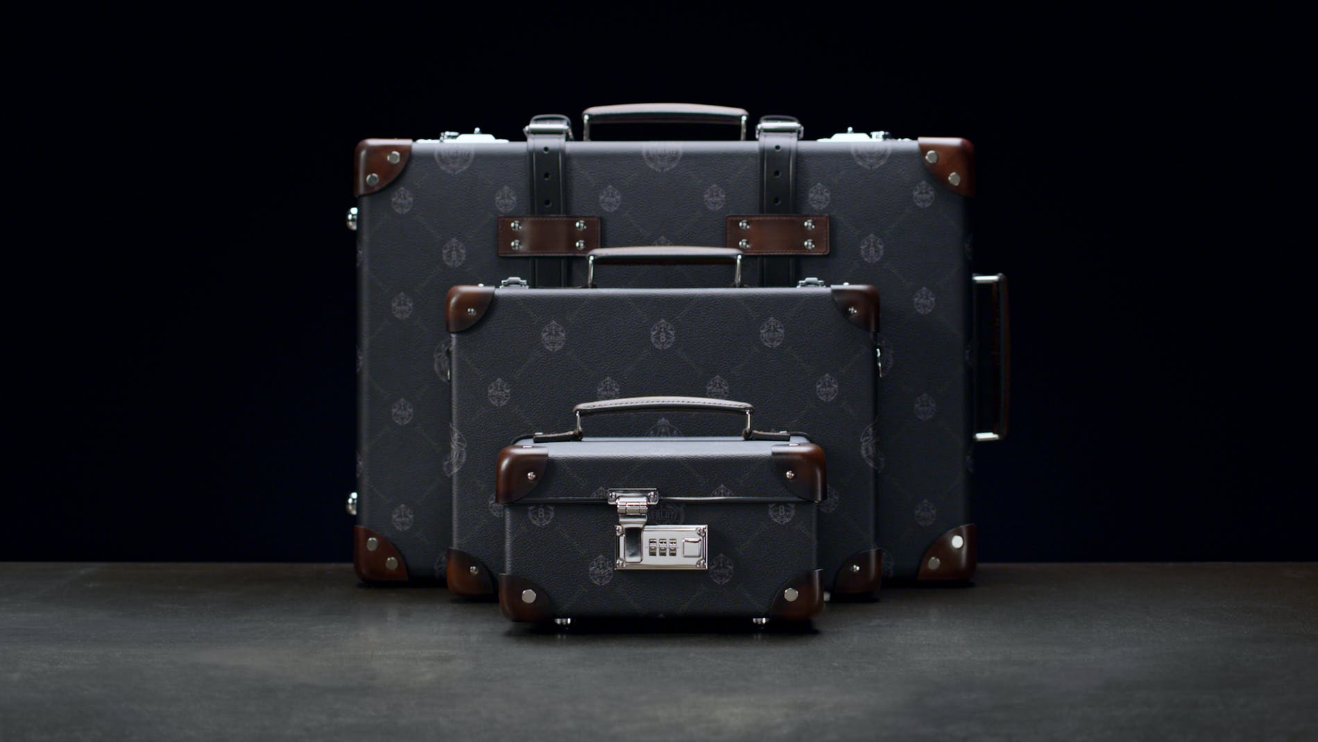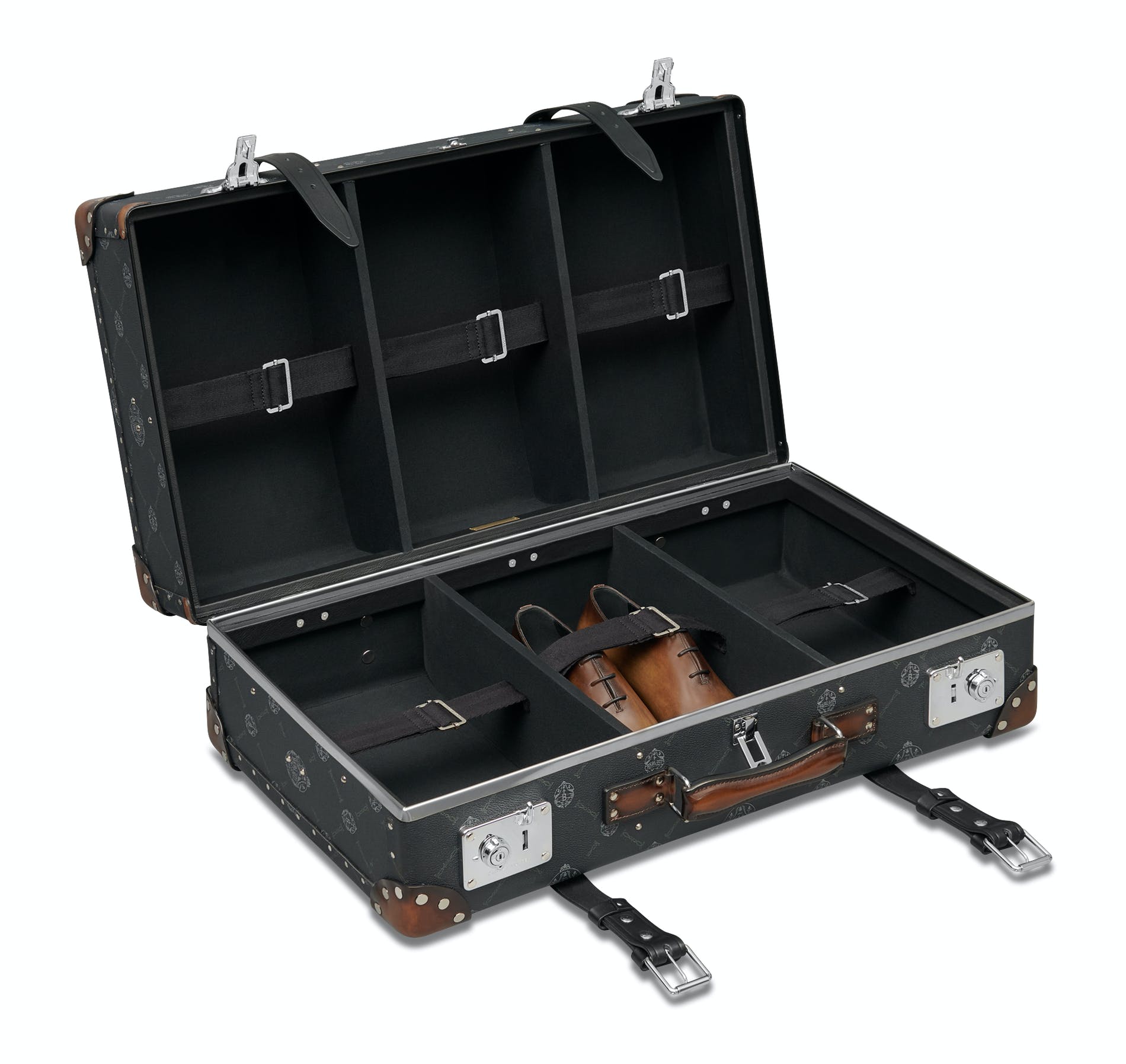 The Globe-Trotter Travel Capsule includes eight hard cases in different formats: 2 rolling suitcases, a shoe trunk holding up to six pairs of shoes, a shoe care kit case and a watch box, as well as day-to-day accessories such as a messenger bag, a backpack and a briefcase.