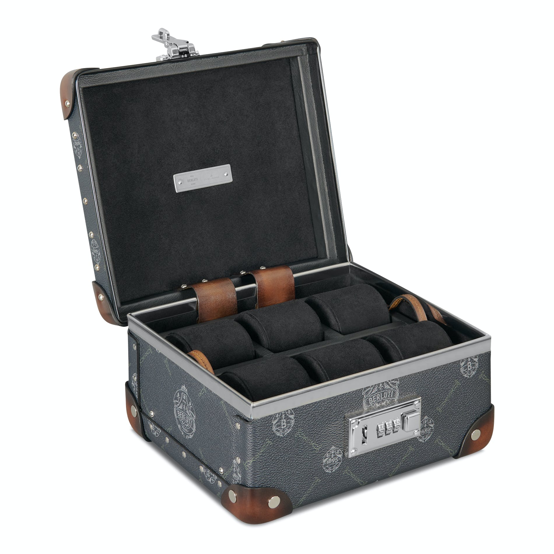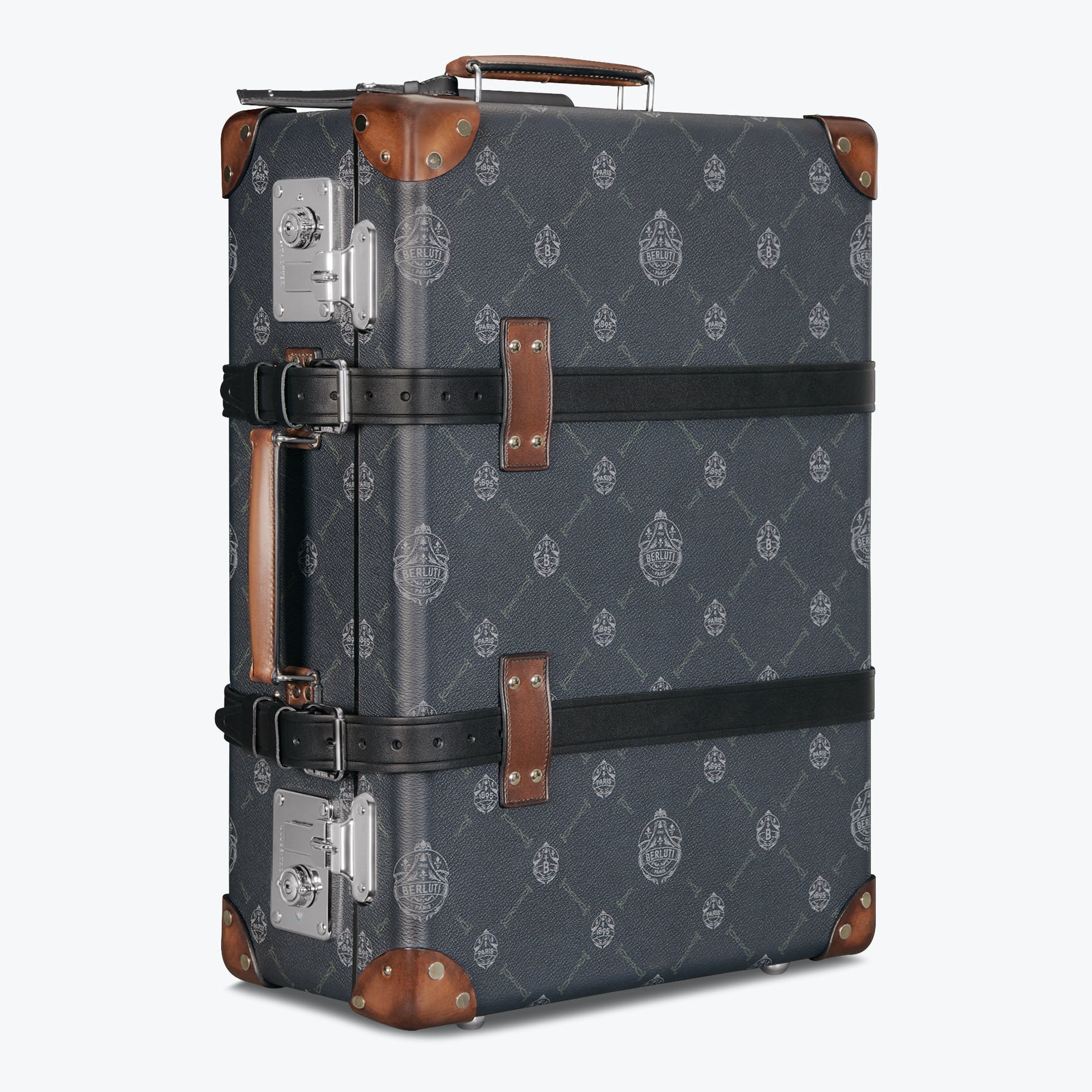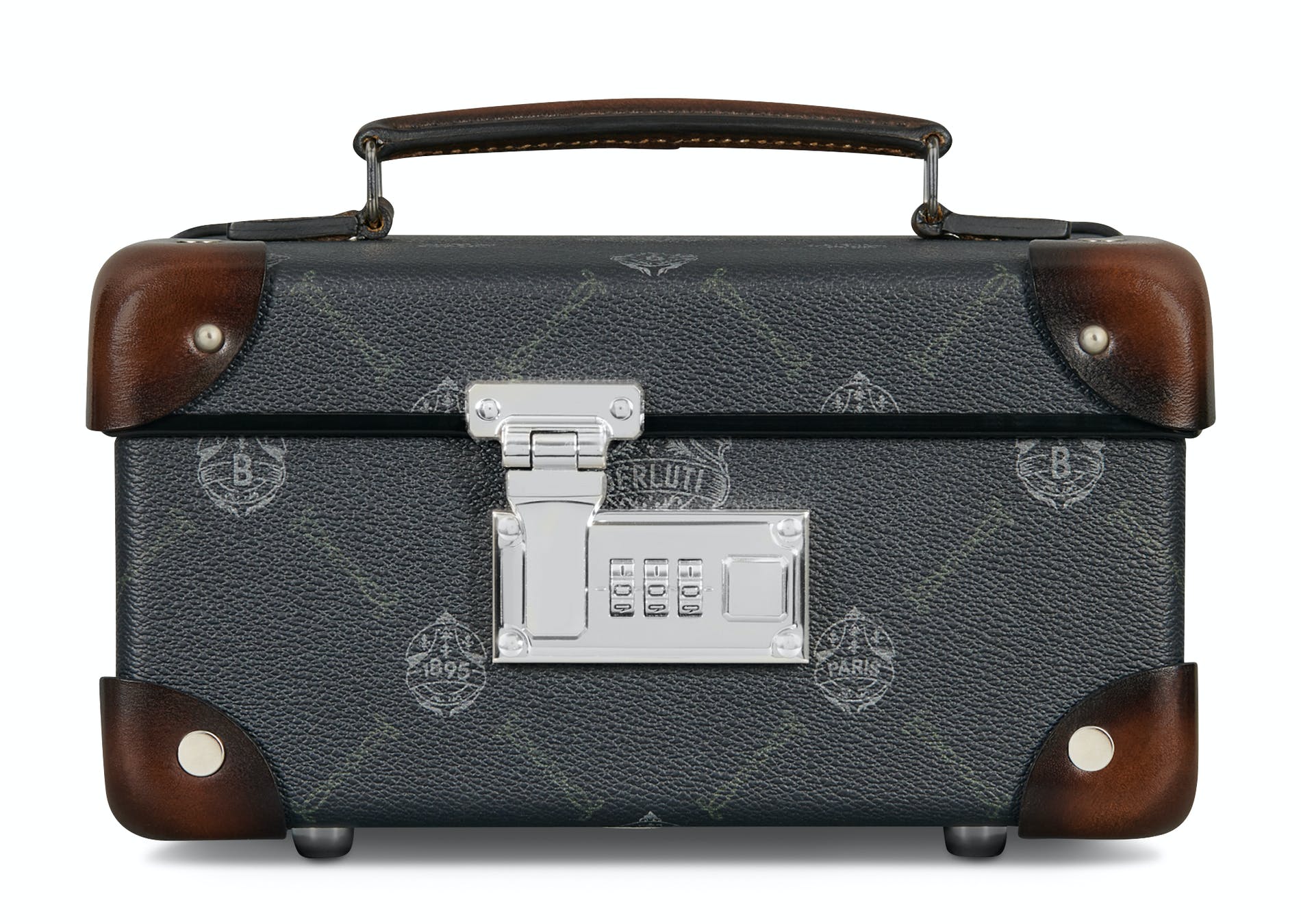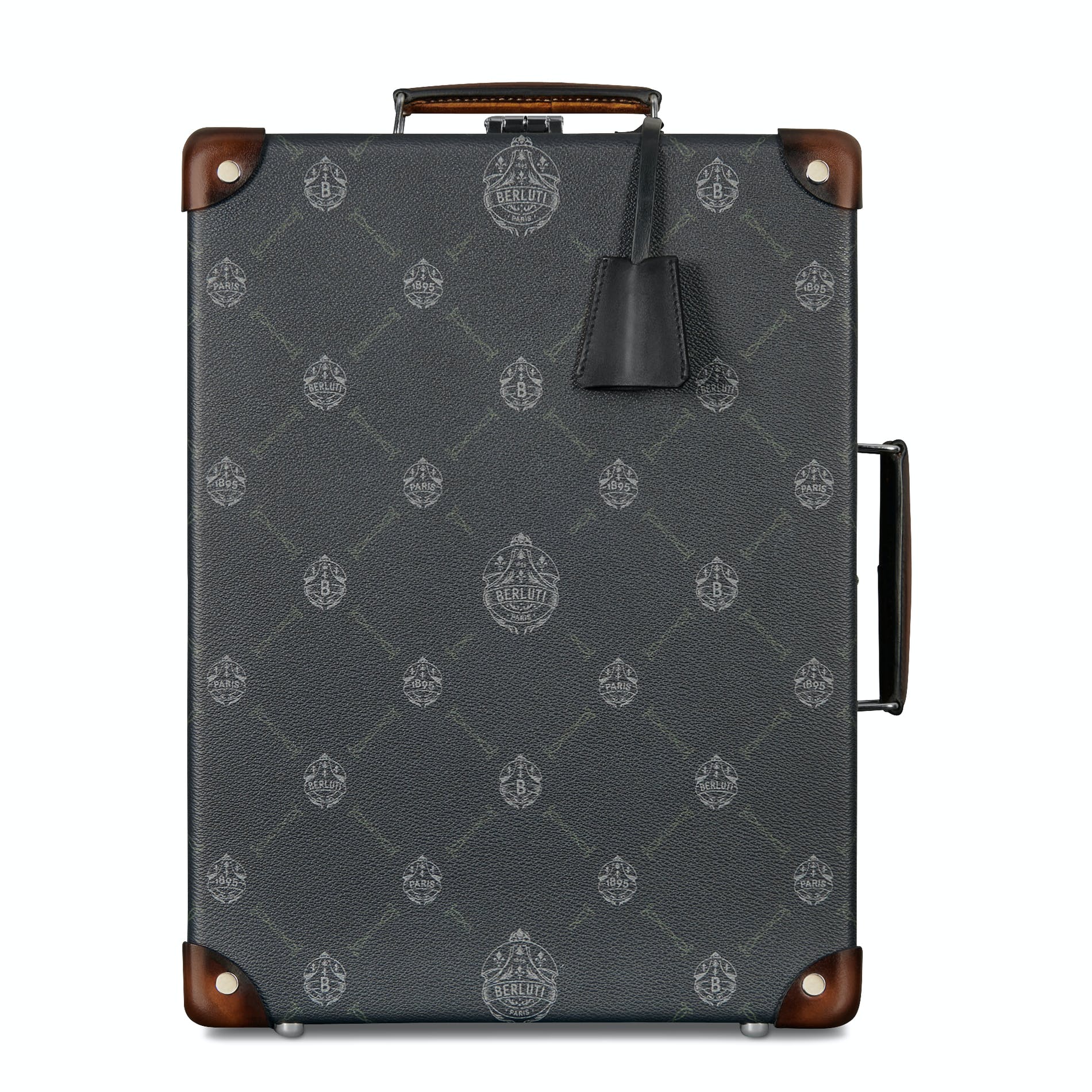 Each case is the result of combined expertise, starting with the solid yet lightweight base of Globe-Trotter’s luggage - obtained through a process in which 14 layers of Japanese paper are compressed to form an organically-textured shell, and then completed with Berluti’s brand new SIGNATURE Canvas and iconic details, including calf leather handles and corners, leather straps and nickel hardware engraved with the Maison’s logo, mostly assembled with the same set of tools that Globe-Trotter has been using since its foundation.