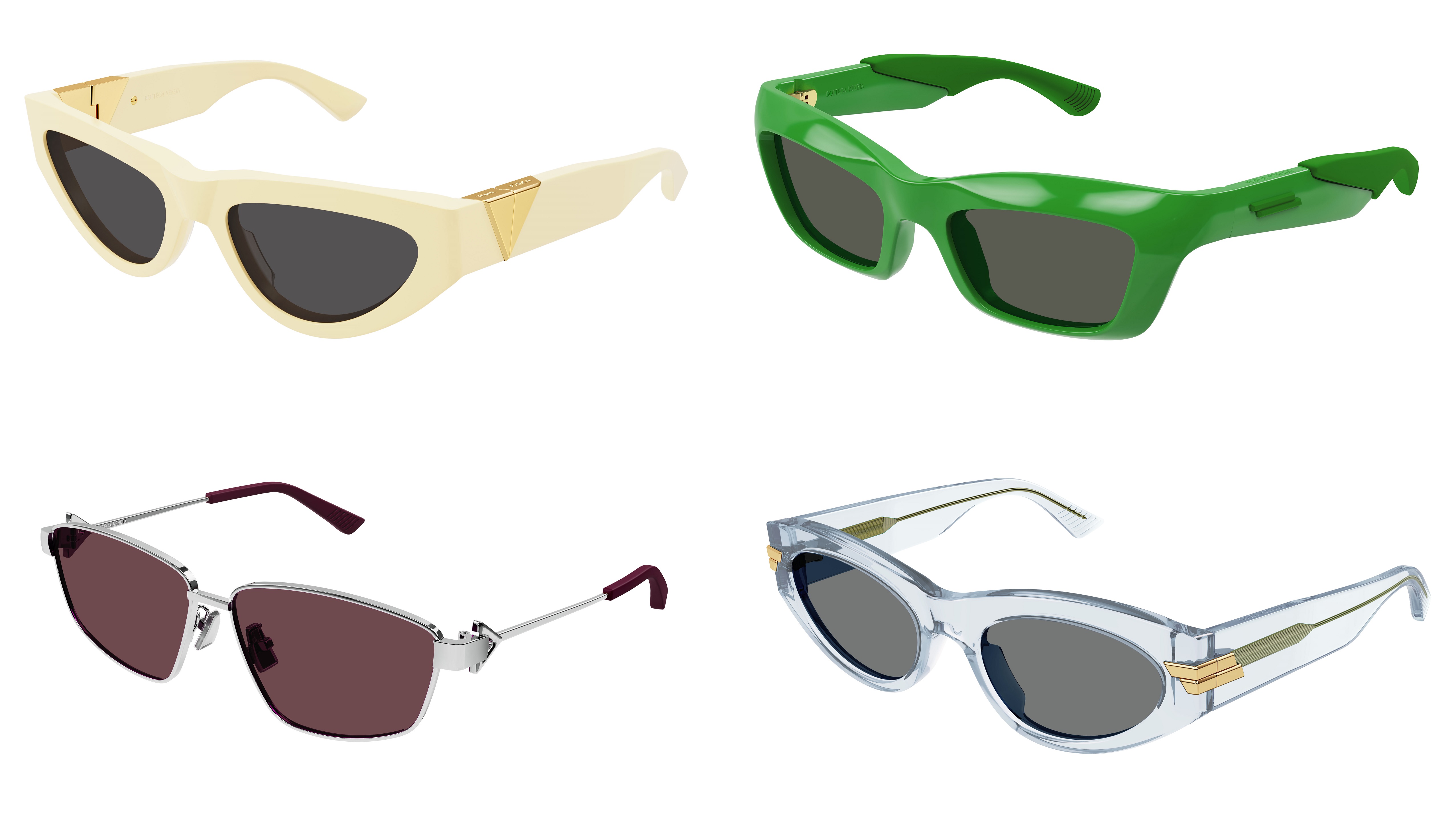 A series of sunglasses and optical frames from Bottega Veneta. Familiar shapes are reimagined with sharp contours and bold volumes featuring the iconic three-dimensional ribbon. A new triangular hinge nods to the House’s signature design codes, whilst rubber details adorn sporty styles and lightweight metals take on new silhouettes. A contemporary take on traditional staples, executed with fine craftsmanship.
