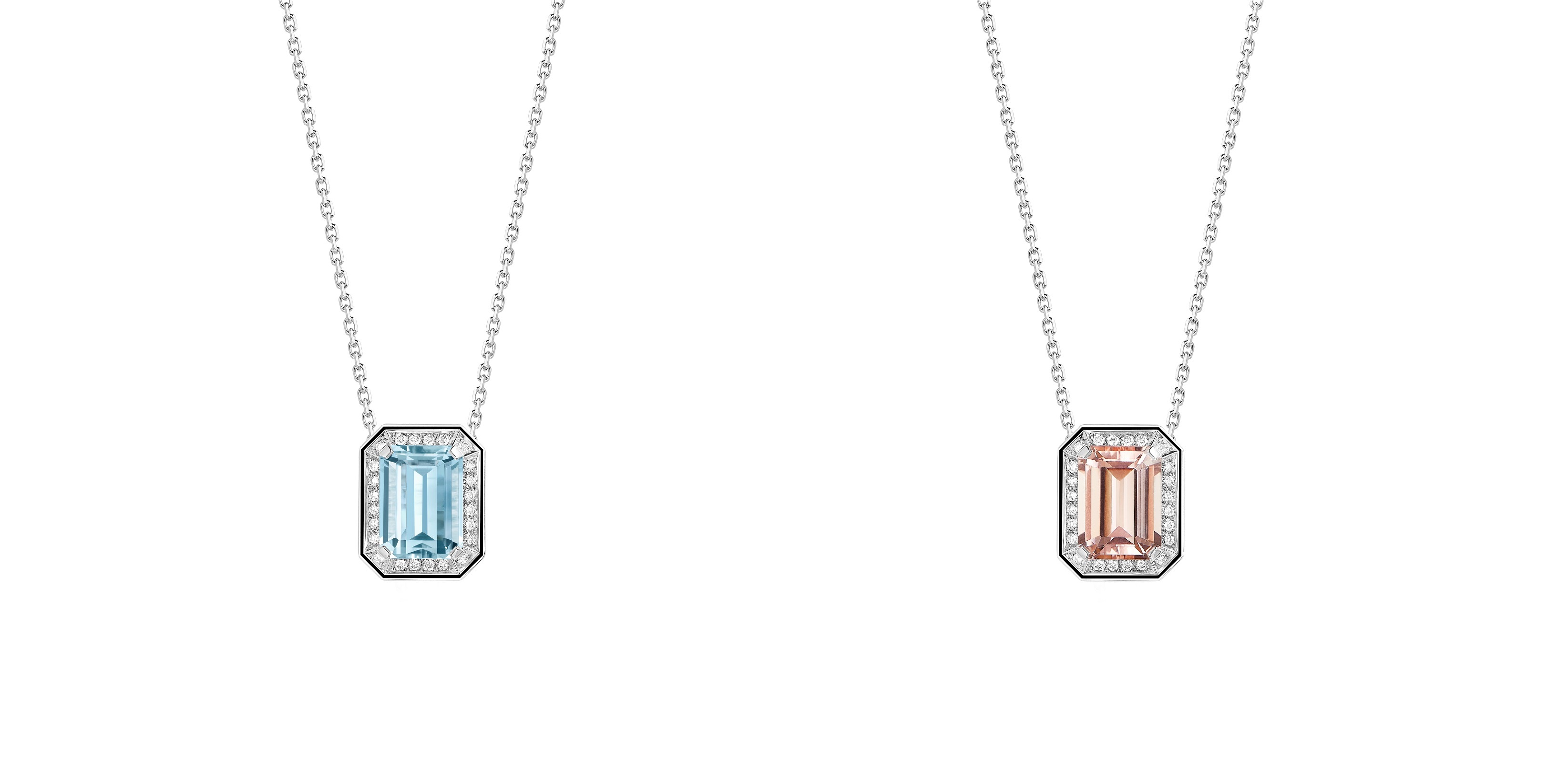 PENDANTS Express your style with the new color versions of Boucheron's signature code, the Vendôme Liseré motif. With an emerald-cut aquamarine or morganite and round diamonds, this pendant has character and will complement any look.