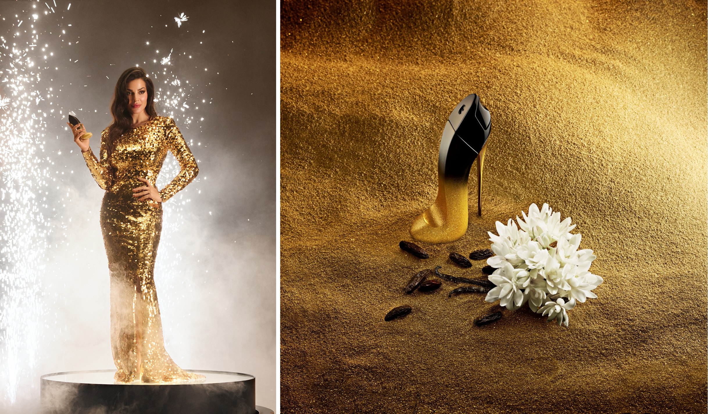 Fronting the new campaign with the fearless confidence and contrasting aspects of femininity that are so intrinsic to the Good Girl universe, Nadine was photographed in Beirut drenched in a gold sequin dress specially designed by Wes Gordon, creative director of Carolina Herrera New York. It is a campaign that was created by Lebanon-based production company, Plastik Studios to celebrate the magical mystery of the night and explore the multifaceted personality of the Good Girl woman, as represented by the famously high heel of the legendary stiletto-shaped bottle. Interpreted for Good Girl Midnight in an intense black lacquer as deep as the darkest of nights, the shoe’s toe is dipped in a luxurious cascade of illuminating gold dust, and housed in a gold box embossed with a geometric motif reminiscent of twinkling stars.