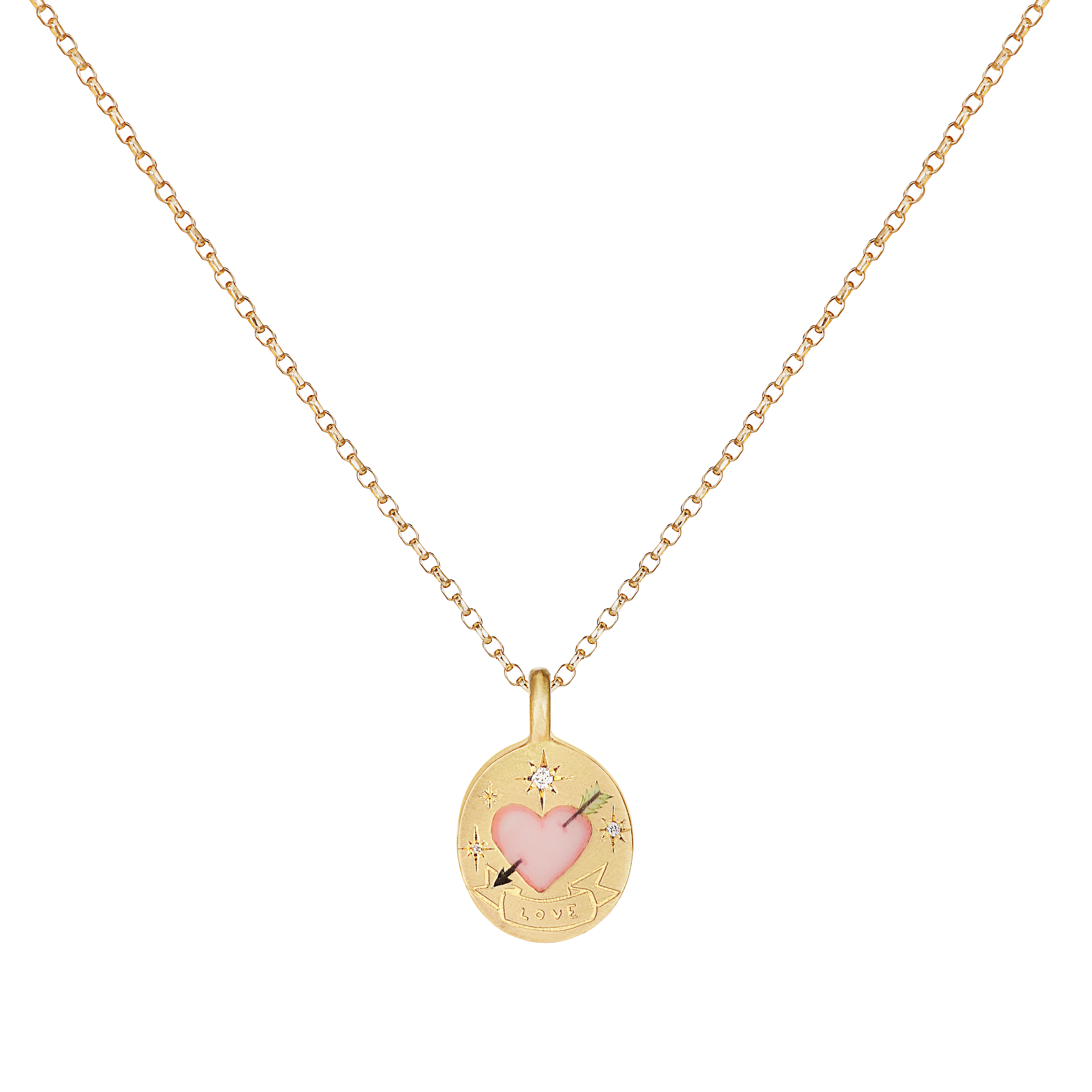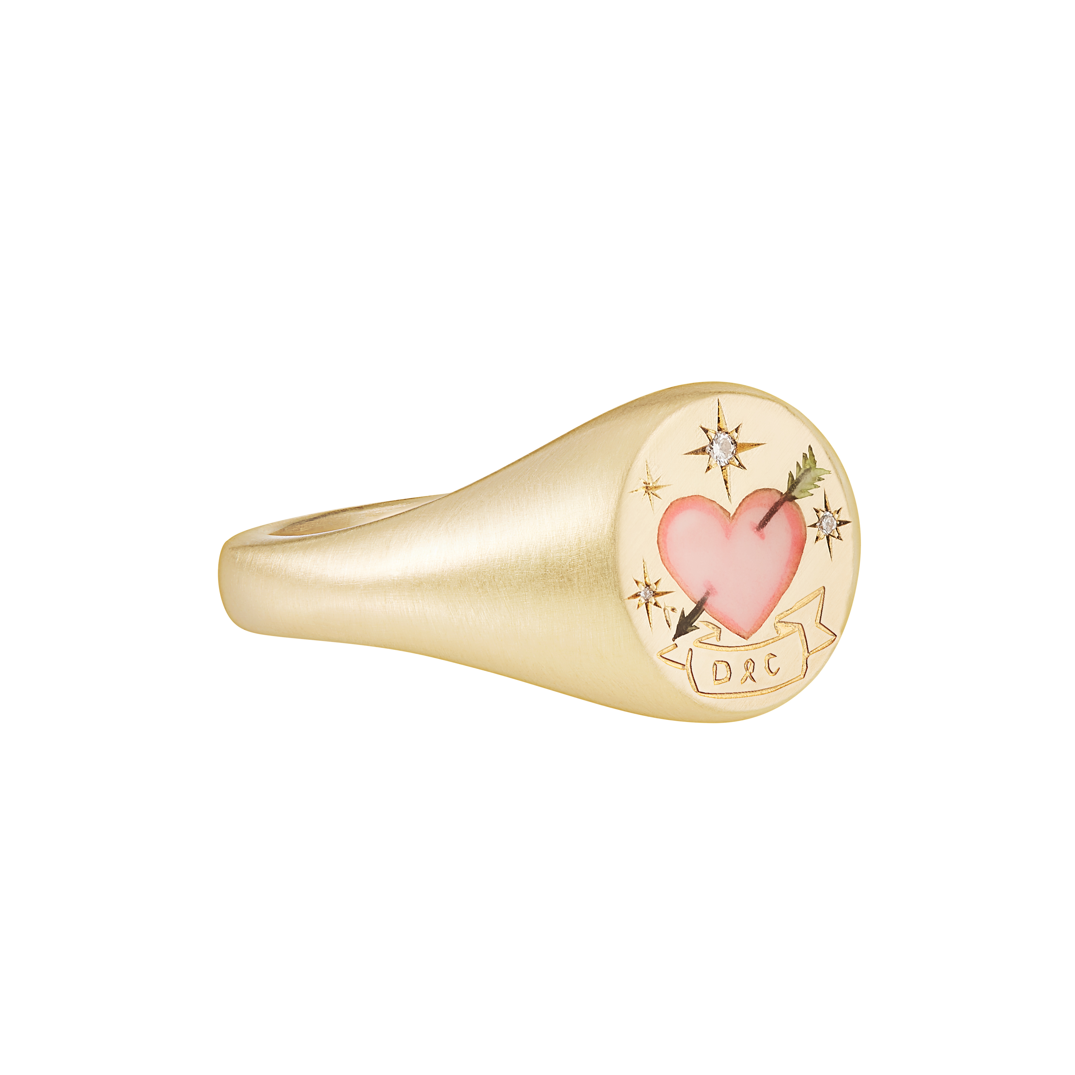Images (from left): Cece Jewellery 18ct Yellow Gold, Diamond & Enamel Heart Pendant and 18ct Yellow Gold, Diamond & Enamel Heart Signet Ring.