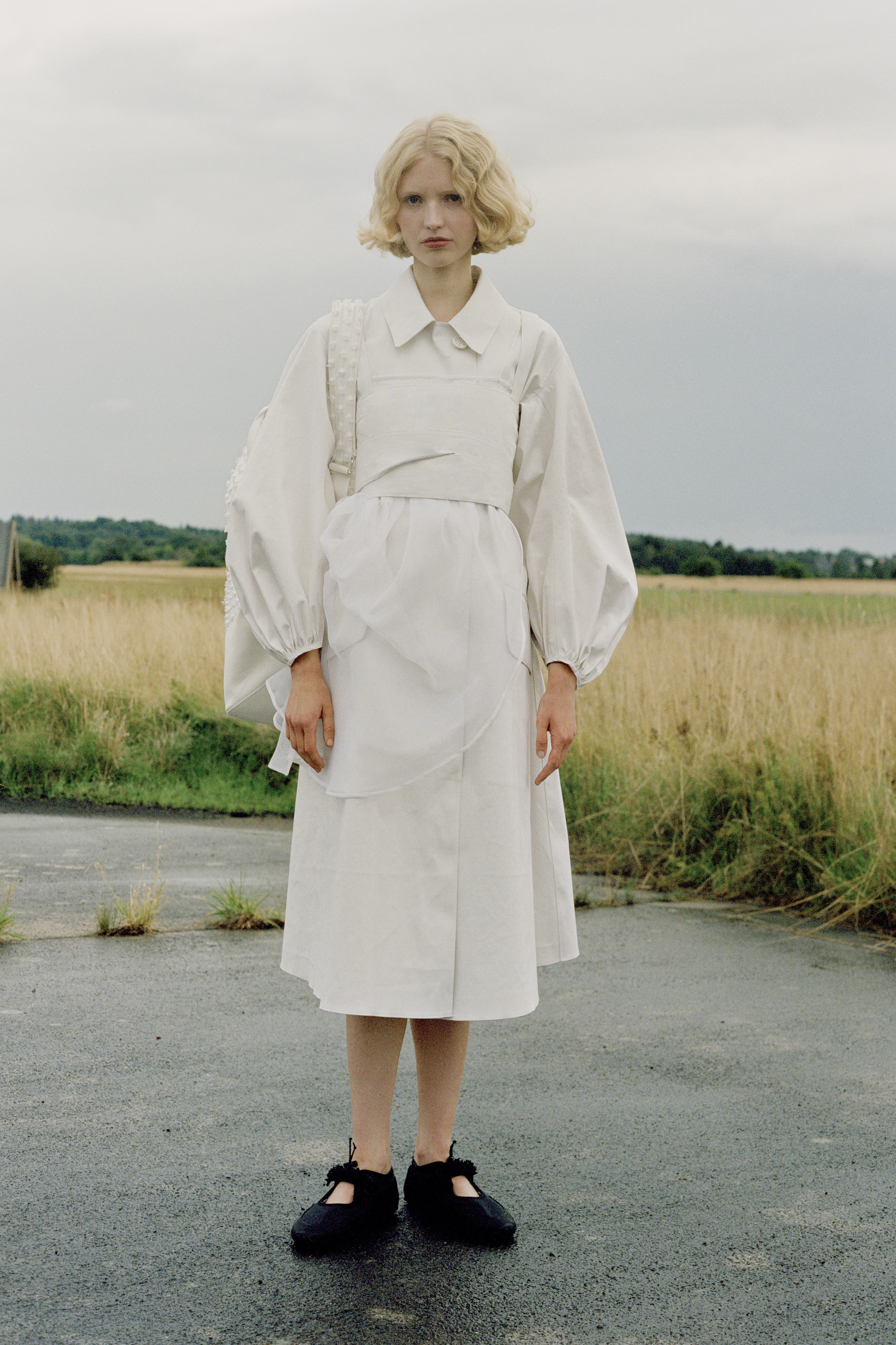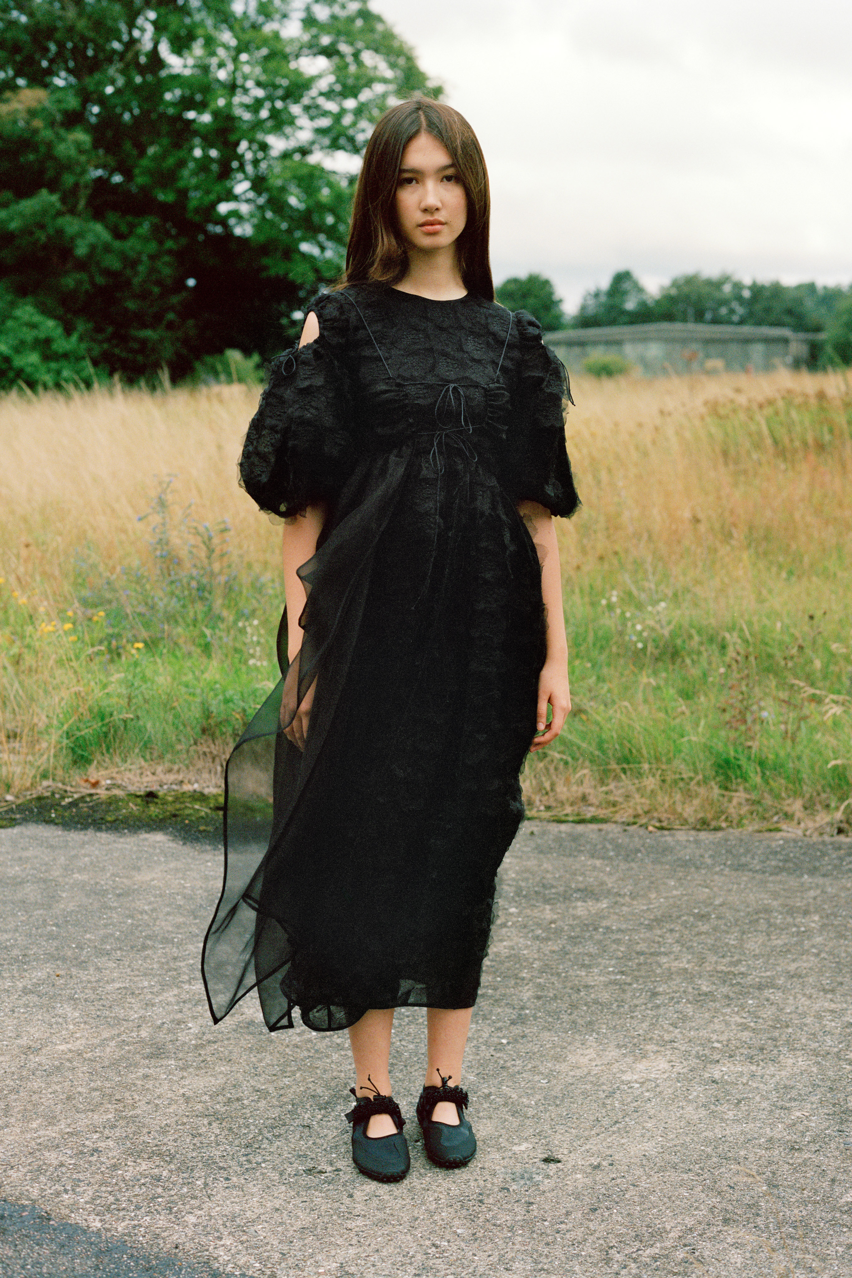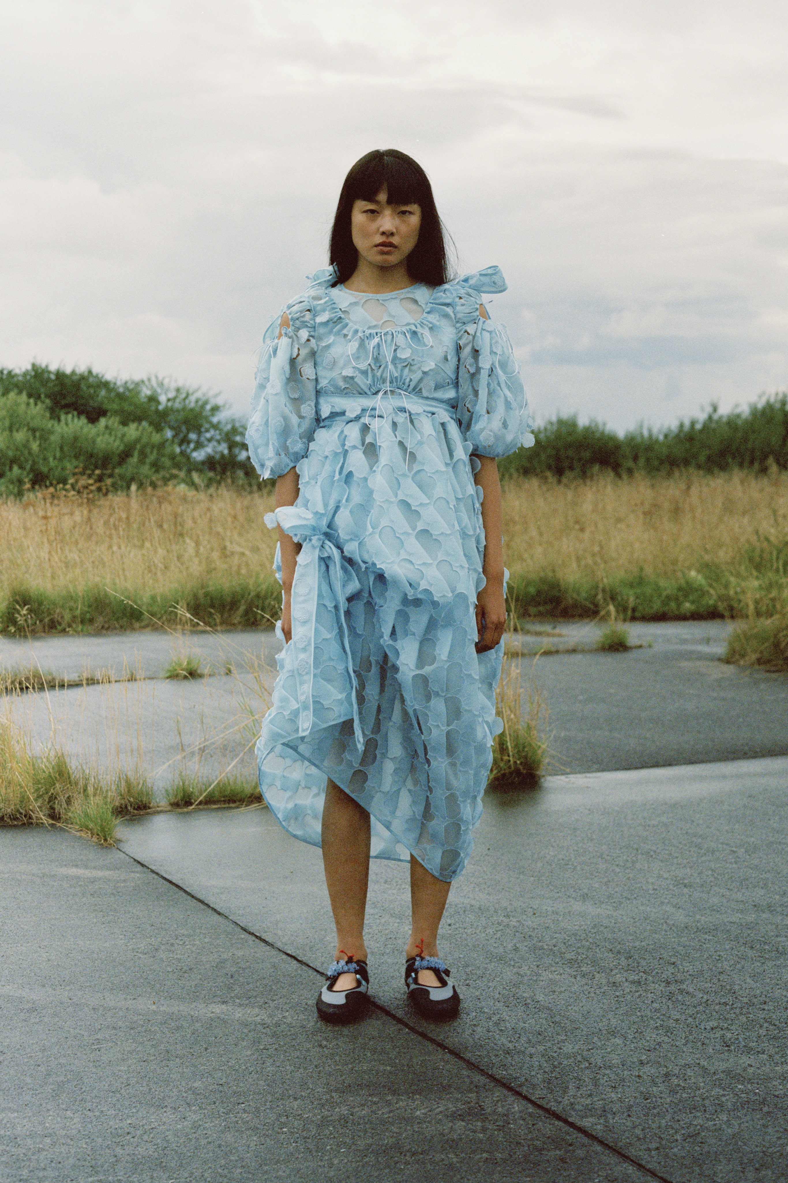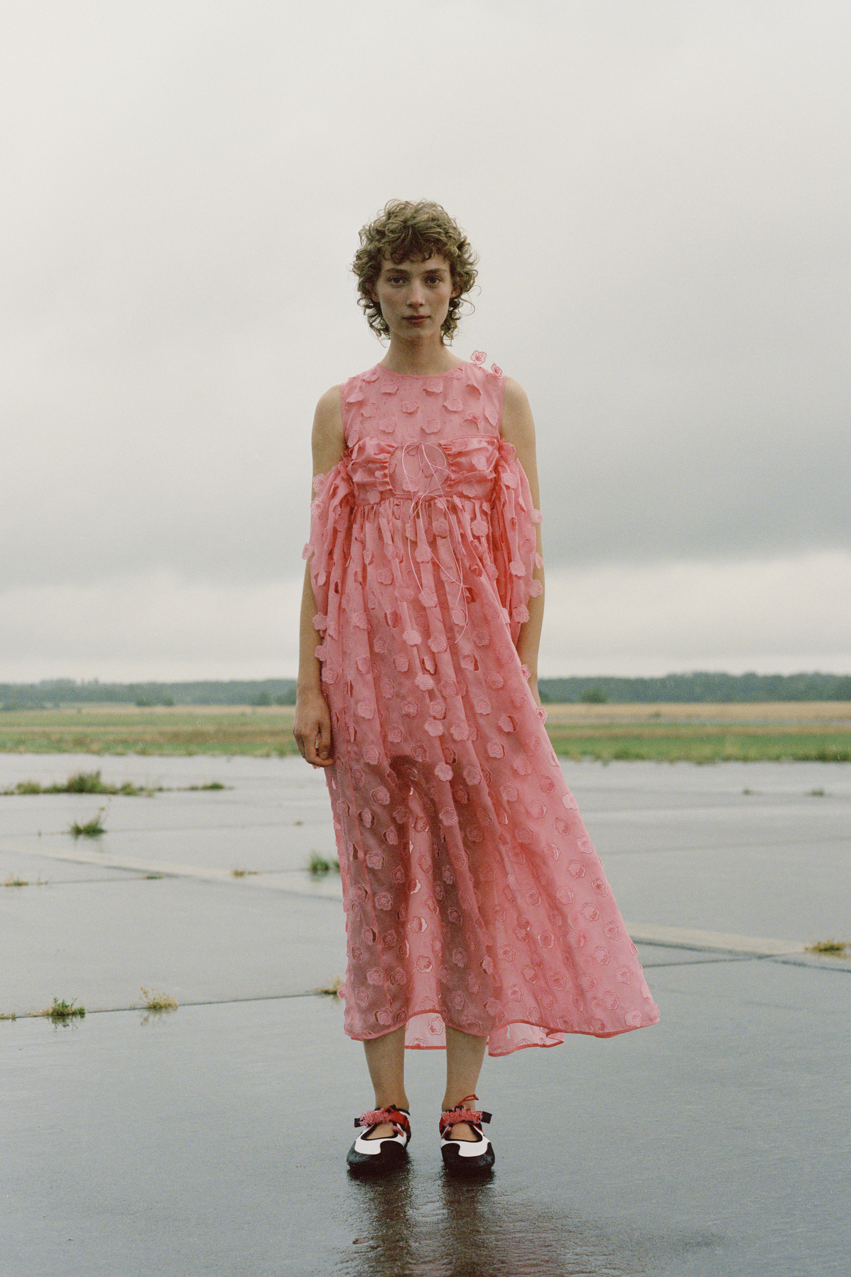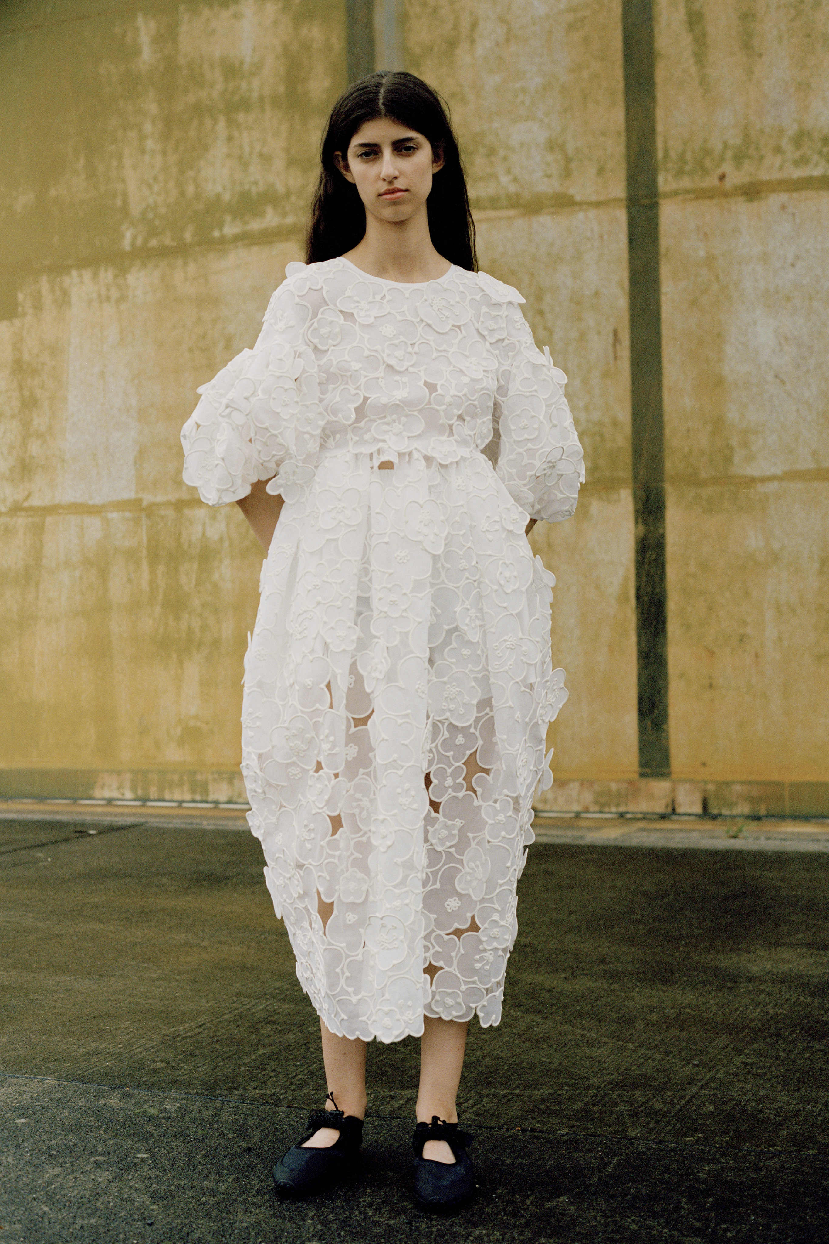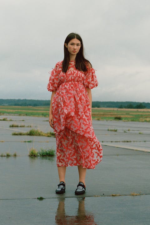 Cecilie Bahnsen´s Spring Summer 2022 collection is a celebration of the love for craftsmanship and the duality of femininity. The most practiced and technically refined collection to date, brought to life through Cecilie´s artistic collaboration -a sound installation composed by Okay Kaya and photo exhibition by Takashi Homma on view in Paris. The collection and artistic collaborations address the duality within us expressed through an exterior detachment and the gentleness in the sensuality of emotions, “To be both,” the ability to not “Be” only what we feel. The duality is present throughout the collection, film, and exhibition. The result is an emotional collection that celebrates Cecilie and the atelier´s love for the work, featuring new techniques like the utterly beautiful camellia floral cutout-flowers fluttering on fabric, as if the petals were falling gently to the ground from a full bouquet.