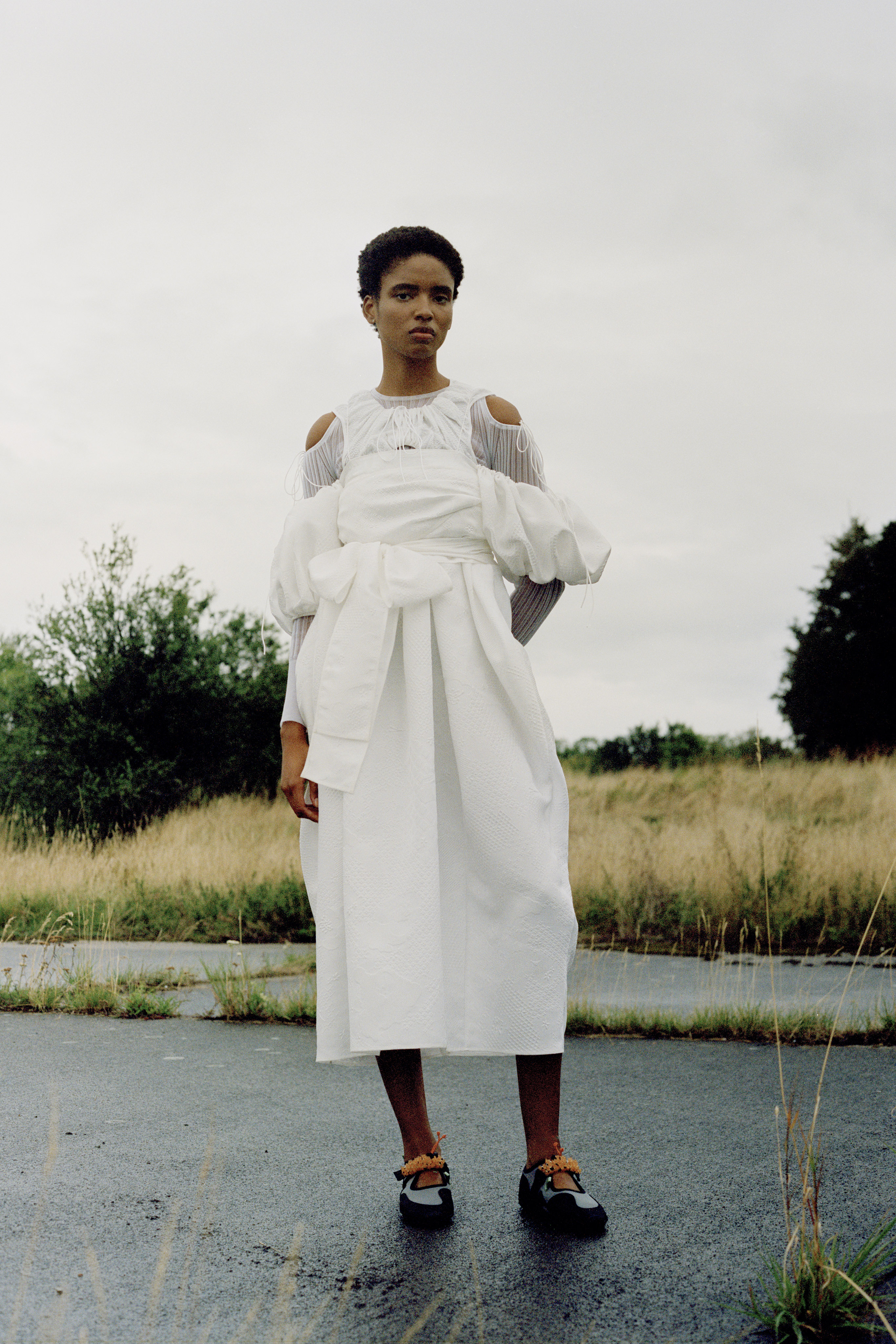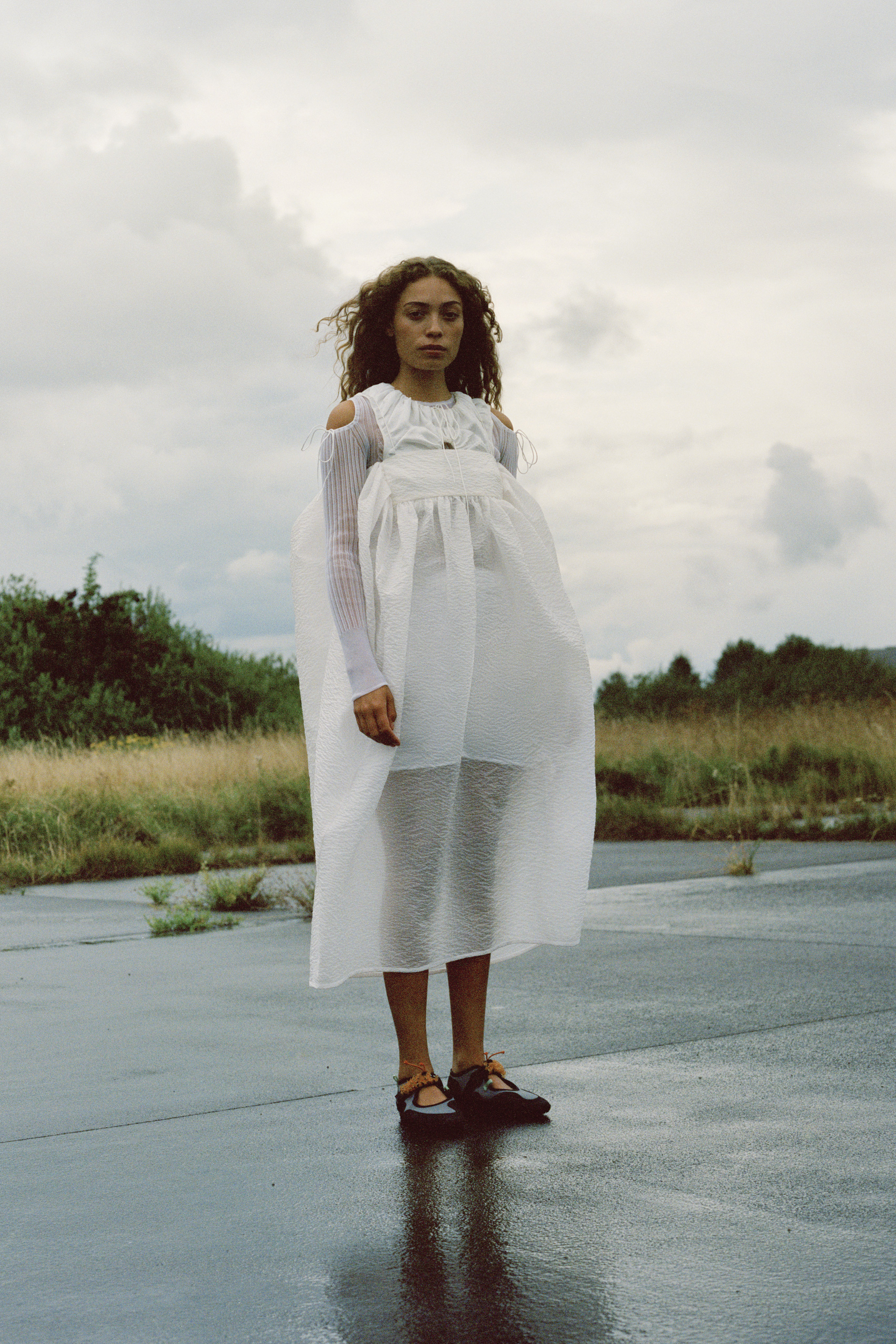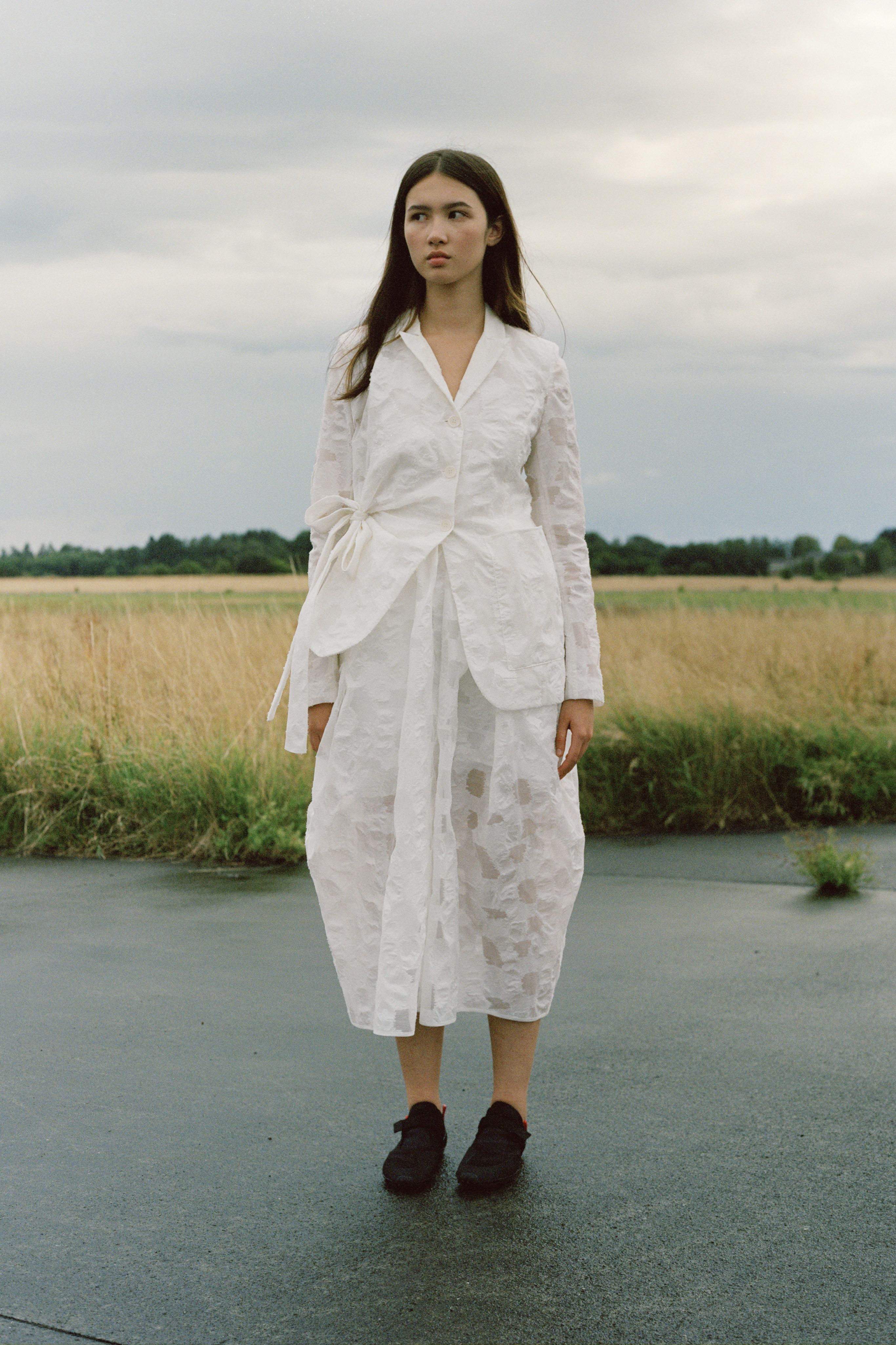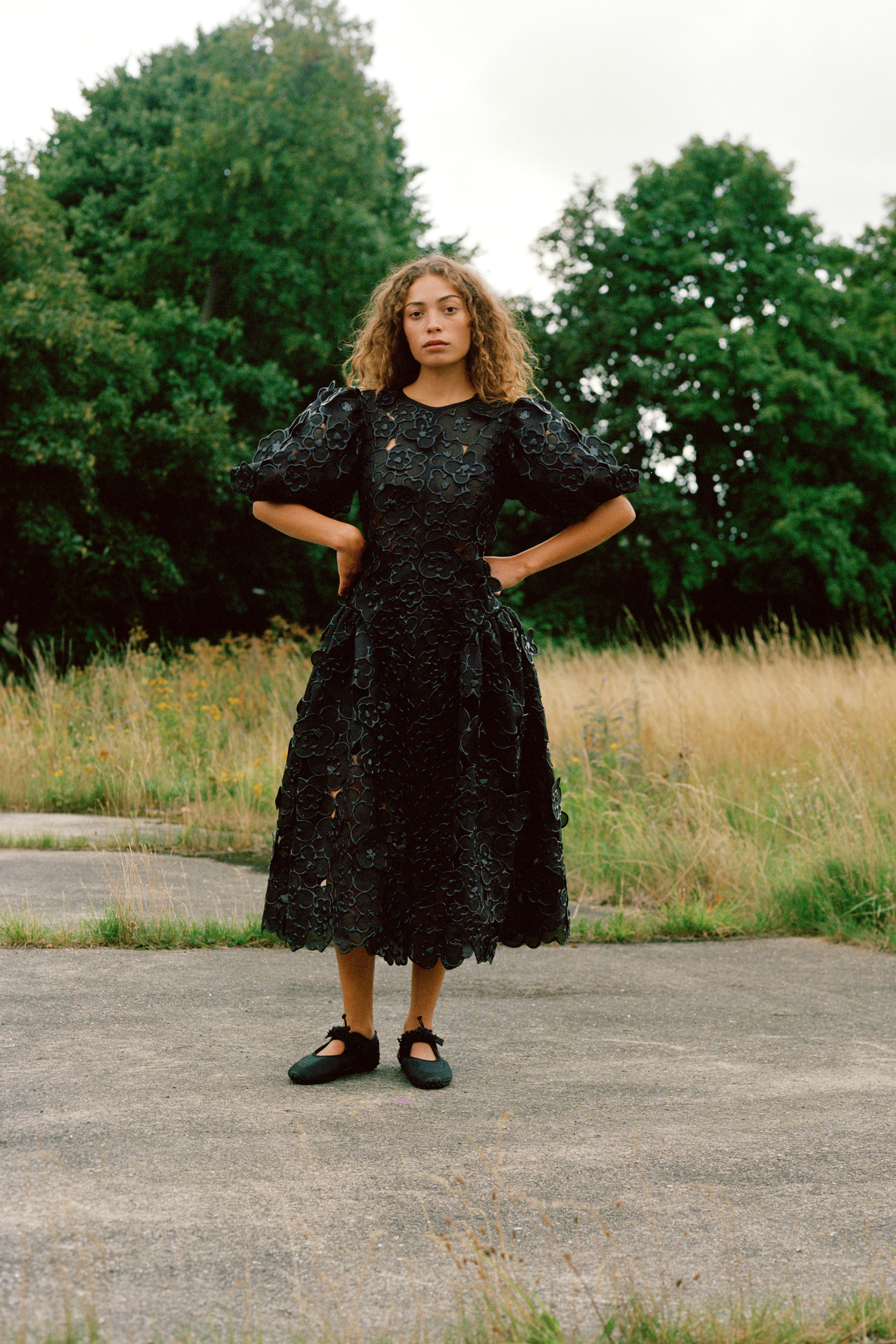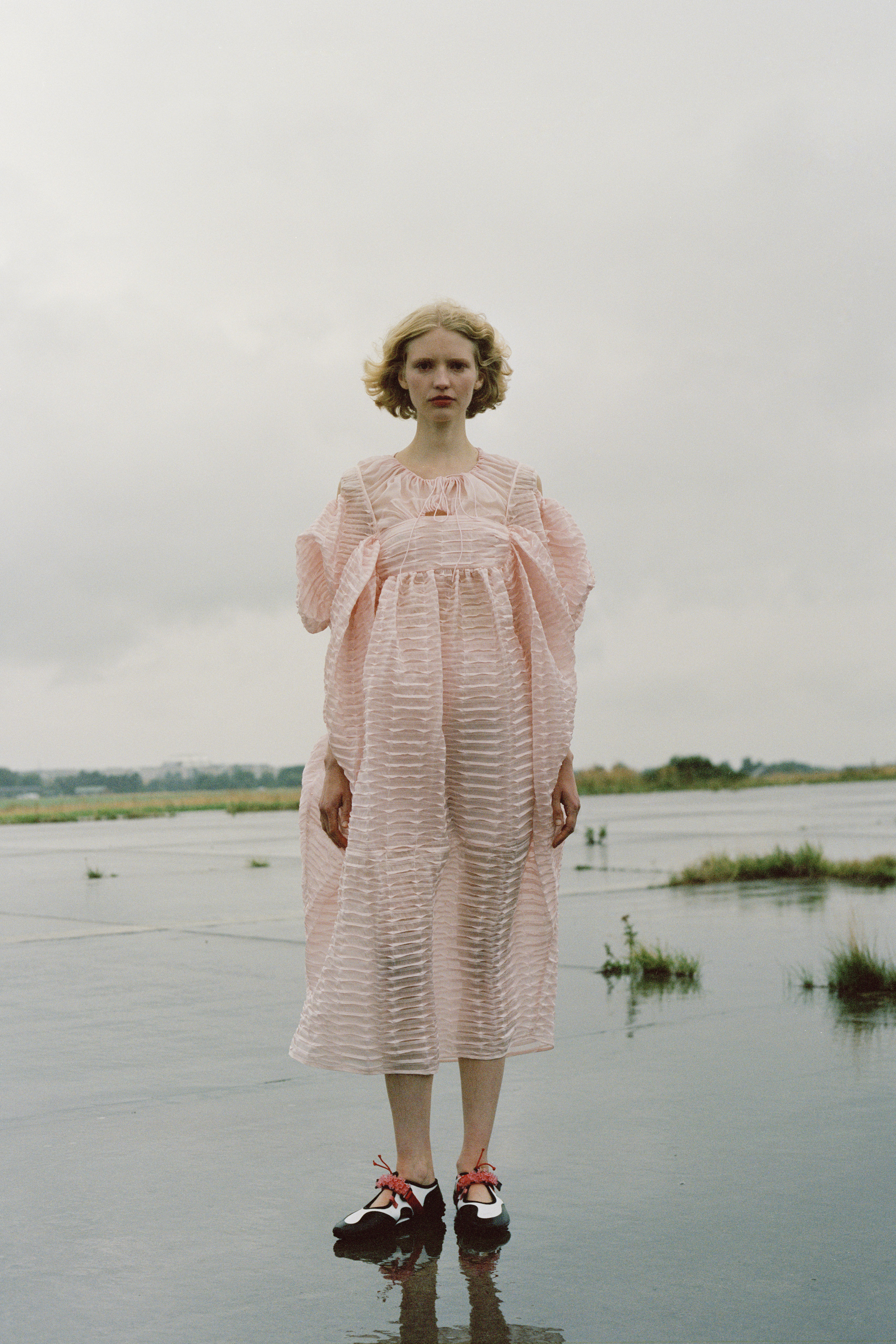 Cecilie Bahnsen´s Spring Summer 2022 collection is a celebration of the love for craftsmanship and the duality of femininity. The most practiced and technically refined collection to date, brought to life through Cecilie´s artistic collaboration -a sound installation composed by Okay Kaya and photo exhibition by Takashi Homma on view in Paris. The collection and artistic collaborations address the duality within us expressed through an exterior detachment and the gentleness in the sensuality of emotions, “To be both,” the ability to not “Be” only what we feel. The duality is present throughout the collection, film, and exhibition. The result is an emotional collection that celebrates Cecilie and the atelier´s love for the work, featuring new techniques like the utterly beautiful camellia floral cutout-flowers fluttering on fabric, as if the petals were falling gently to the ground from a full bouquet.