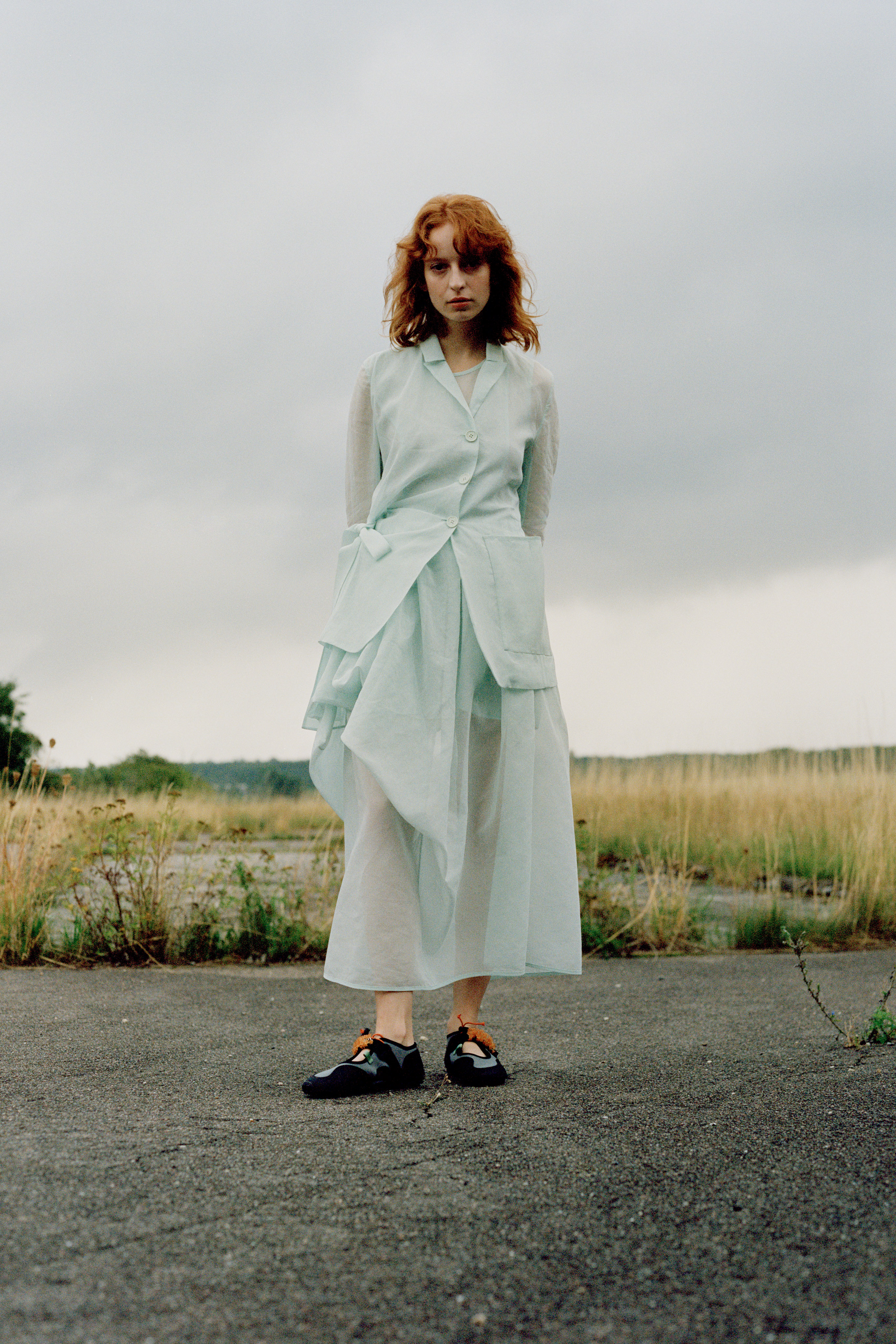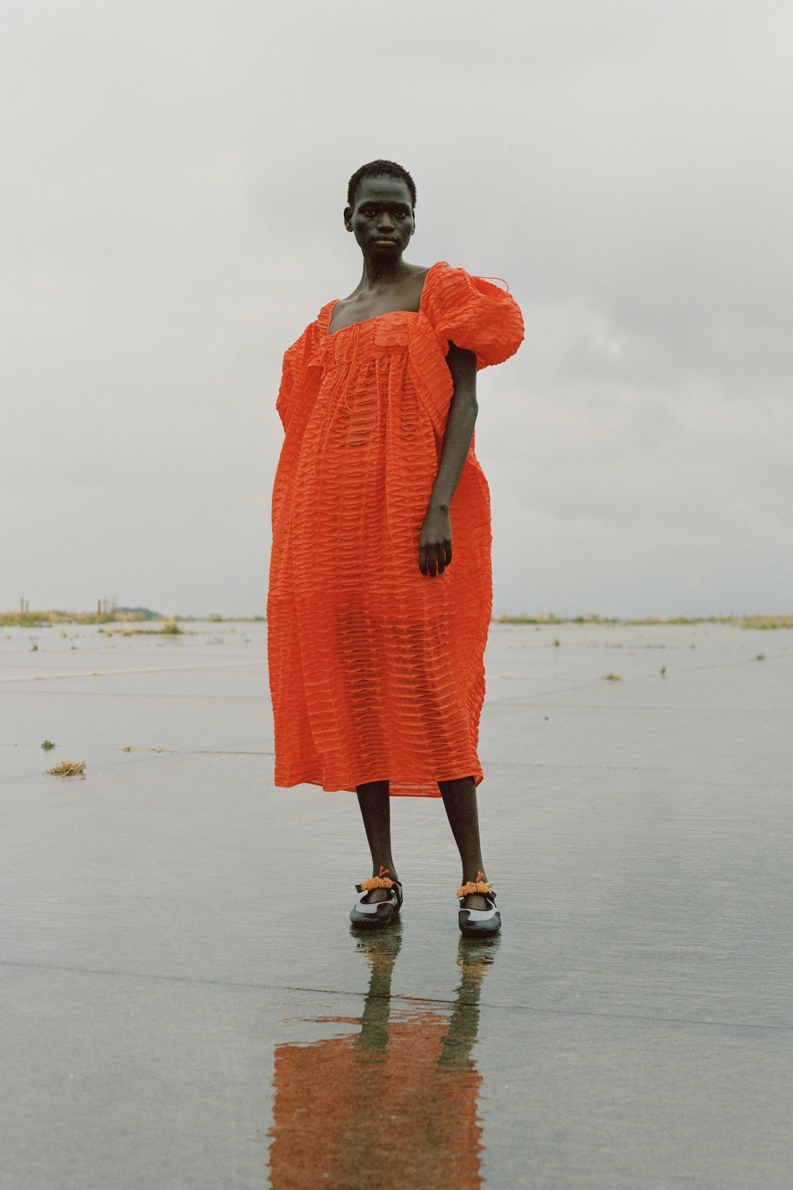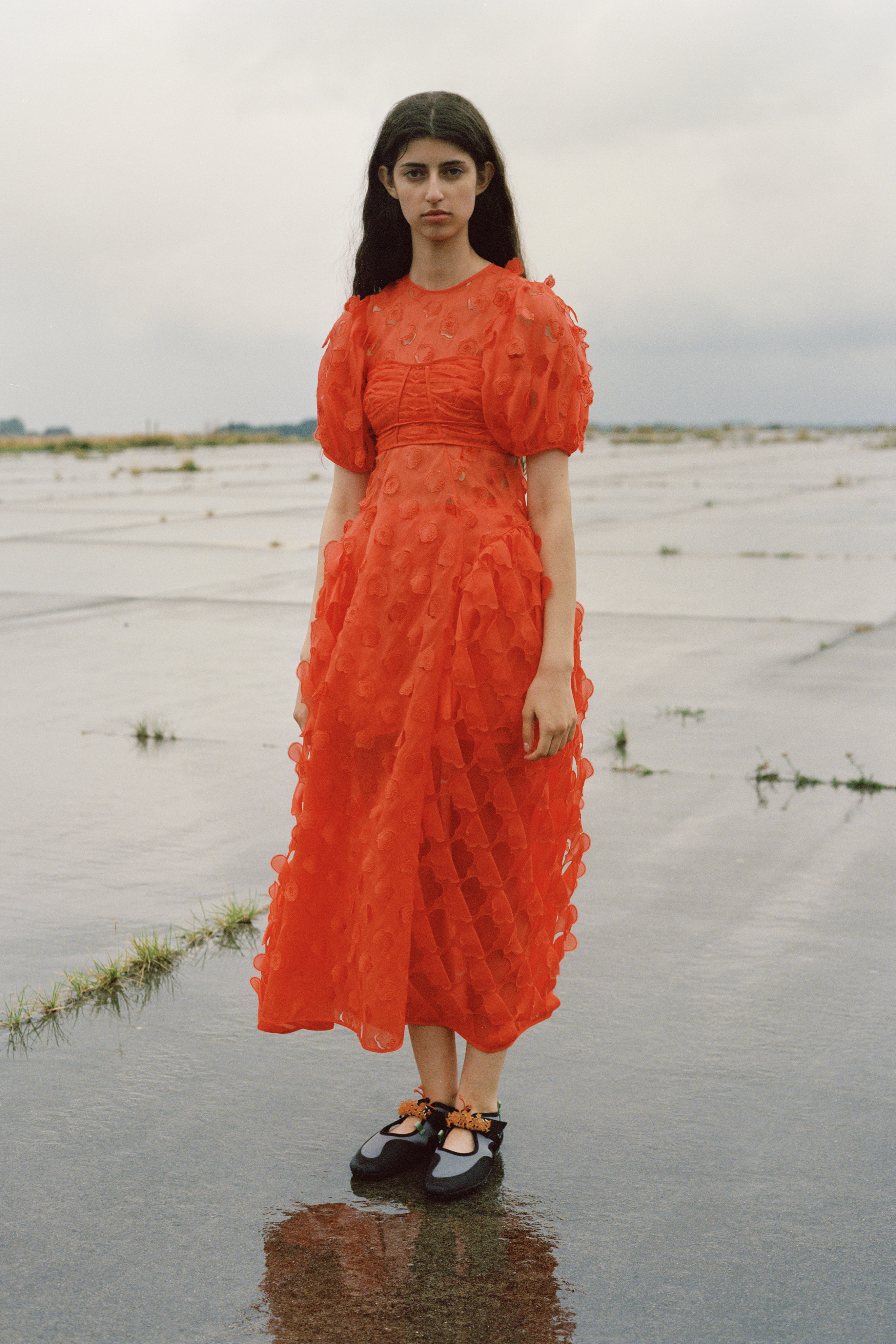 Cecilie has had bright red on her moodboard, playing with its power and romanticism but waiting until she developed the “Perfect” shade and complimenting touch, it became a part of the collection organically, expanding the brands colour vocabulary. “I really think there is a strength and attitude to colour, it really holds the dress.” A colour palette embracing “Where we are”- relishing in a time of chaos that allows for new identities and ways of working to flow.