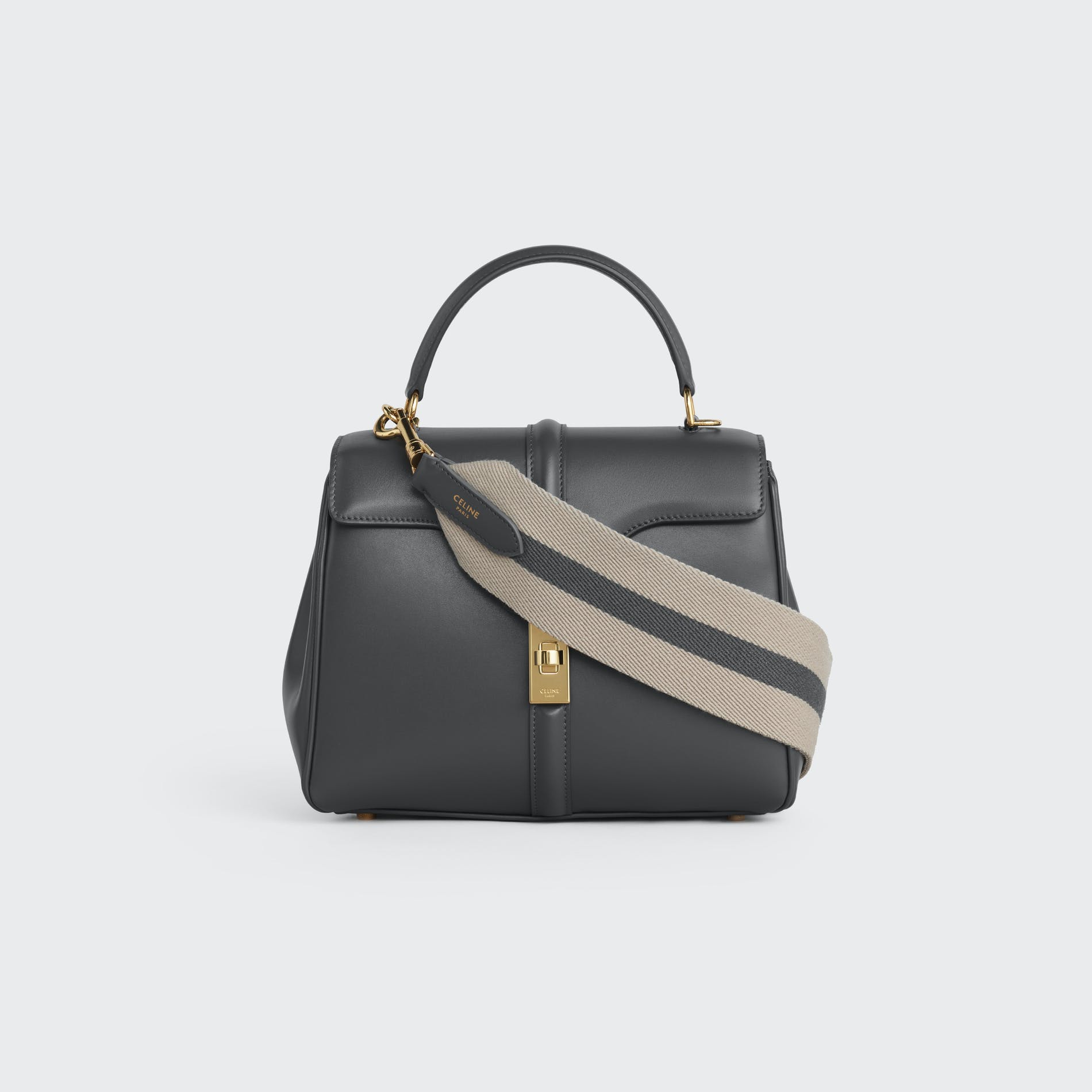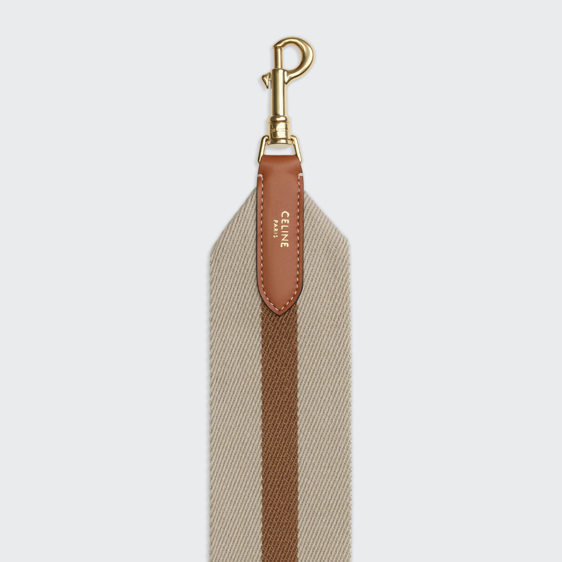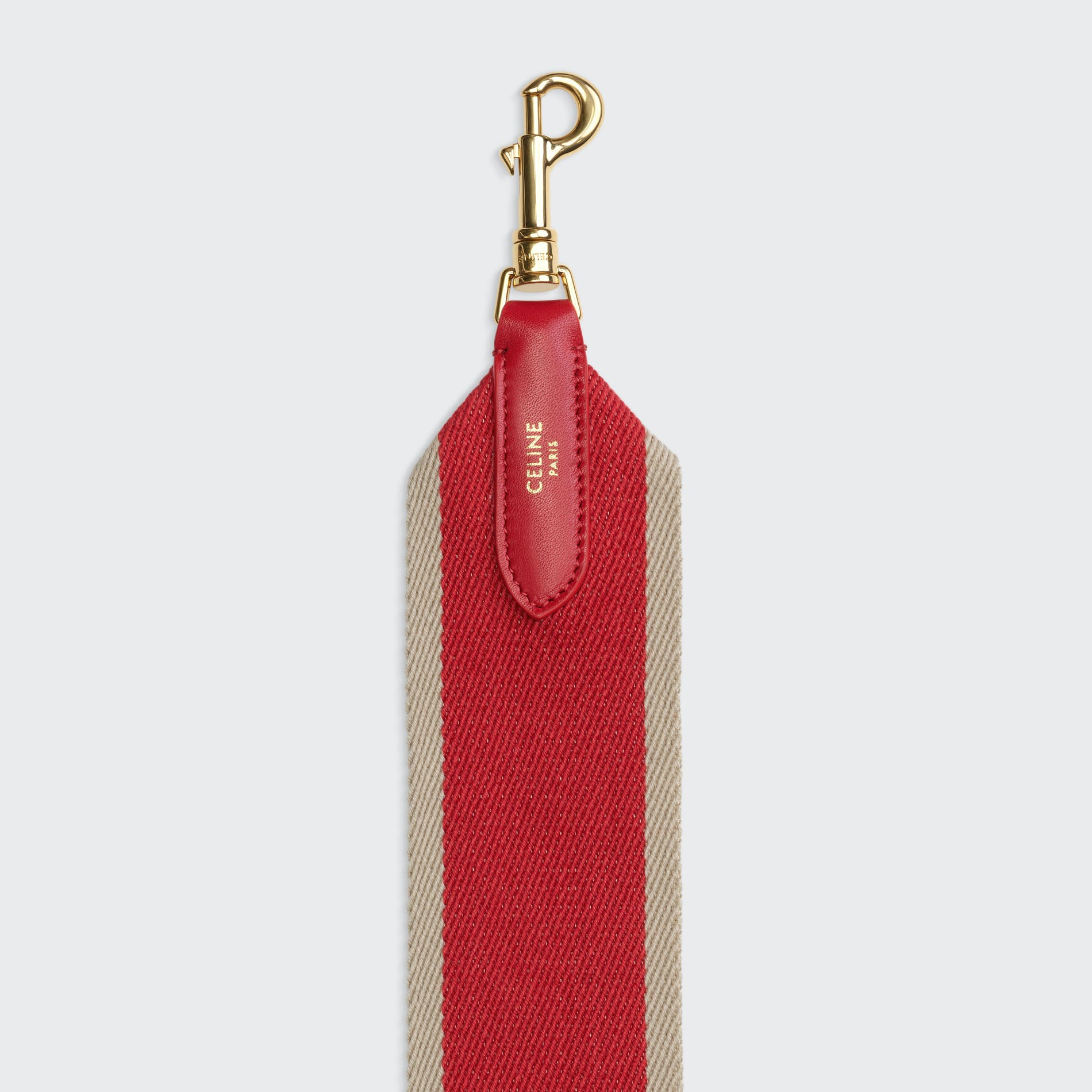 For Spring 21, Celine introduces the Celine strap, a removable wool strap with a smooth leather trim and two "Celine" engraved hooks. The Celine strap is available in two sizes ( short 45cm drop, long 52 cm drop) and in a variety of colors and combinations for the Celine 16 leather goods family: small, medium, large and bucket. The Celine strap is versatile and can be worn on your shoulder or across your body.