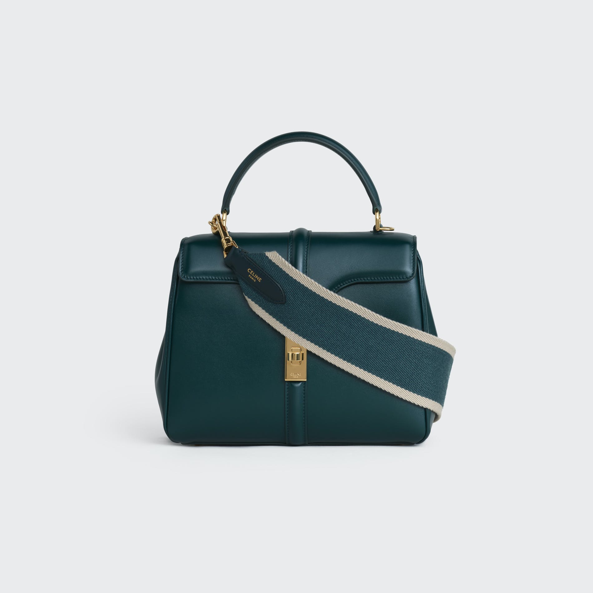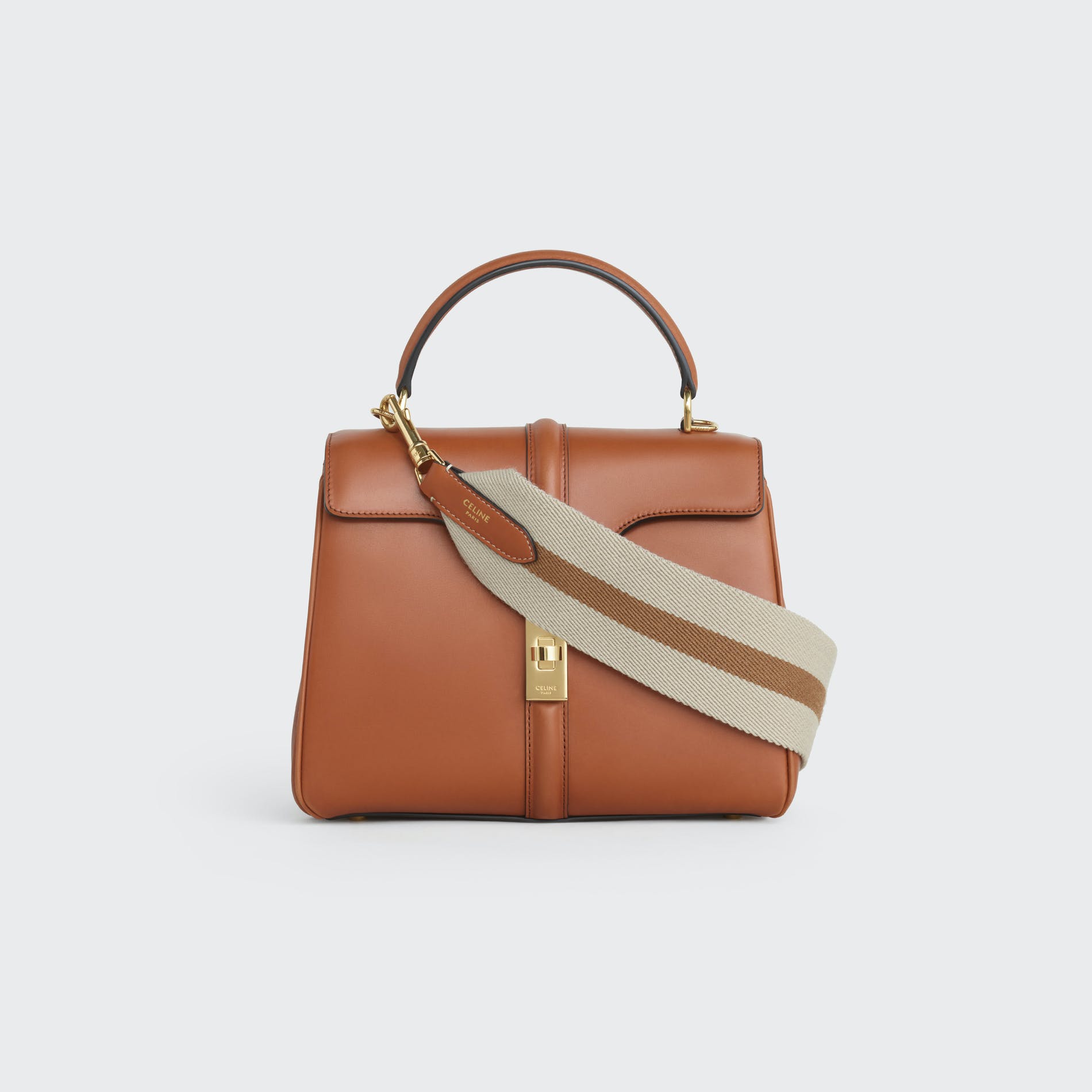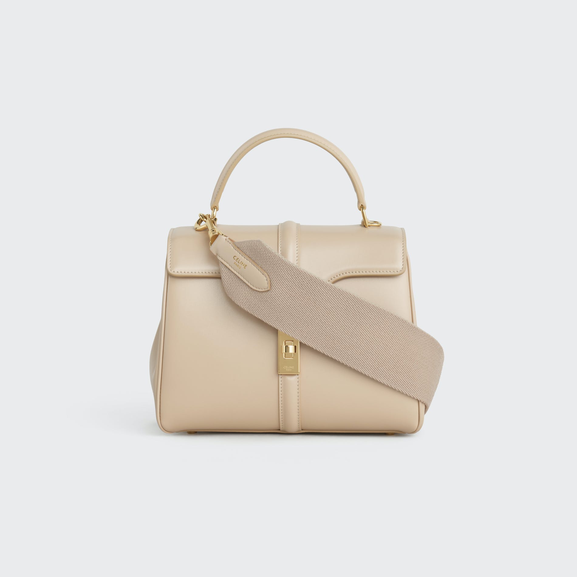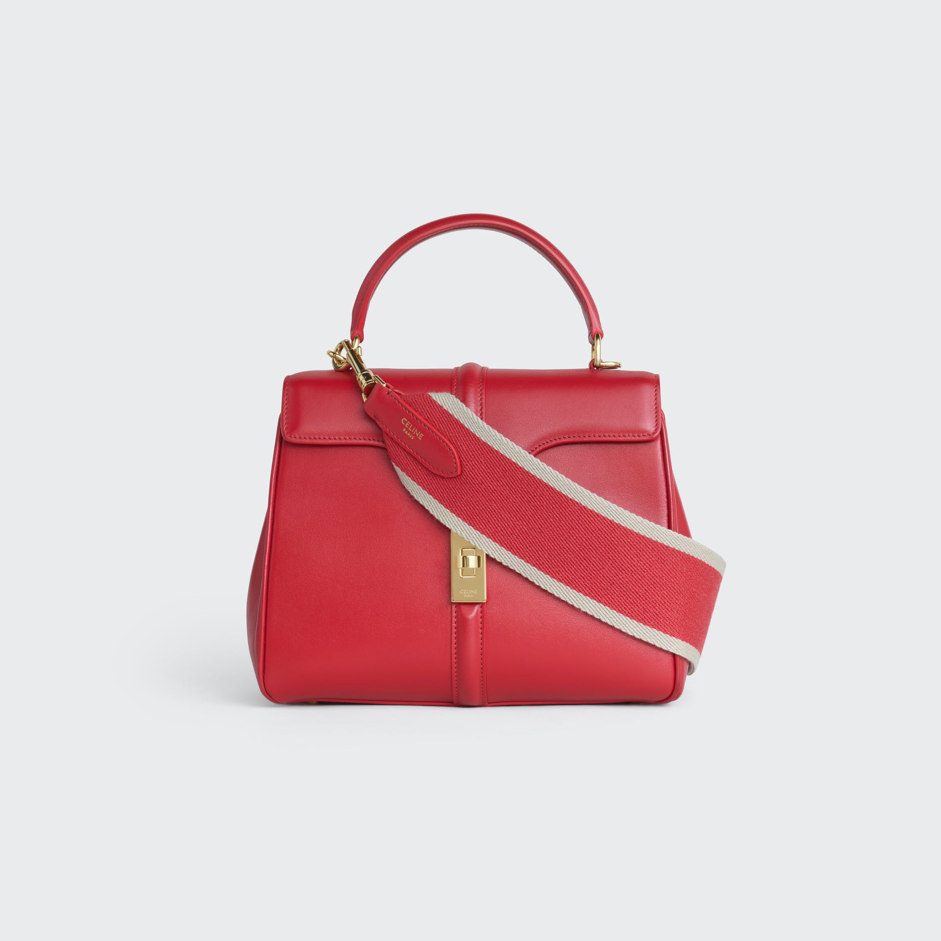 For Spring 21, Celine introduces the Celine strap, a removable wool strap with a smooth leather trim and two "Celine" engraved hooks. The Celine strap is available in two sizes ( short 45cm drop, long 52 cm drop) and in a variety of colors and combinations for the Celine 16 leather goods family: small, medium, large and bucket. The Celine strap is versatile and can be worn on your shoulder or across your body.