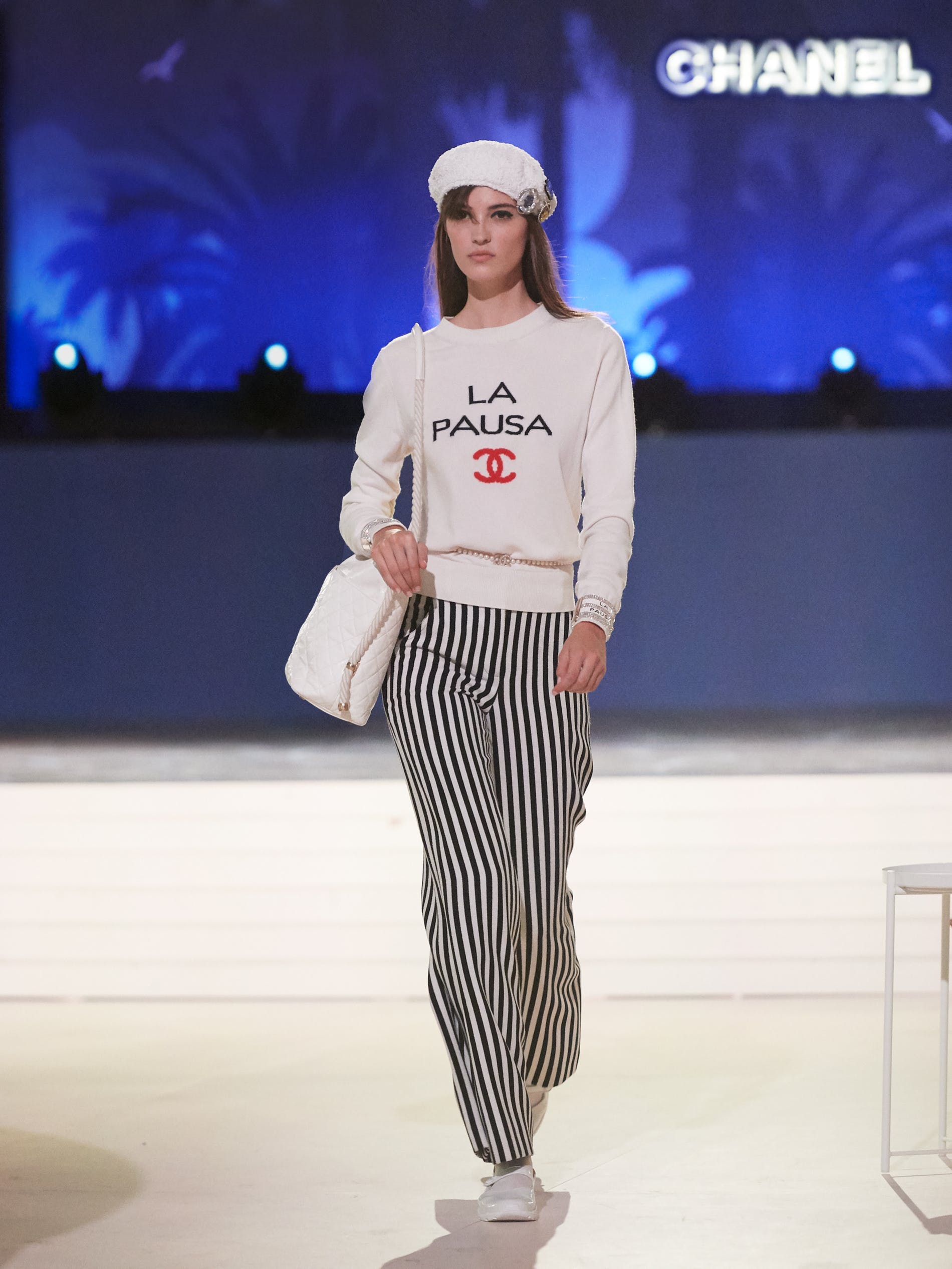 Debuted in Paris in May, the show featured a massive ocean liner that was installed in the Grand Palais as a backdrop to Chanel's Creative Director Karl Lagerfeld’s nautical-inspired creations.
