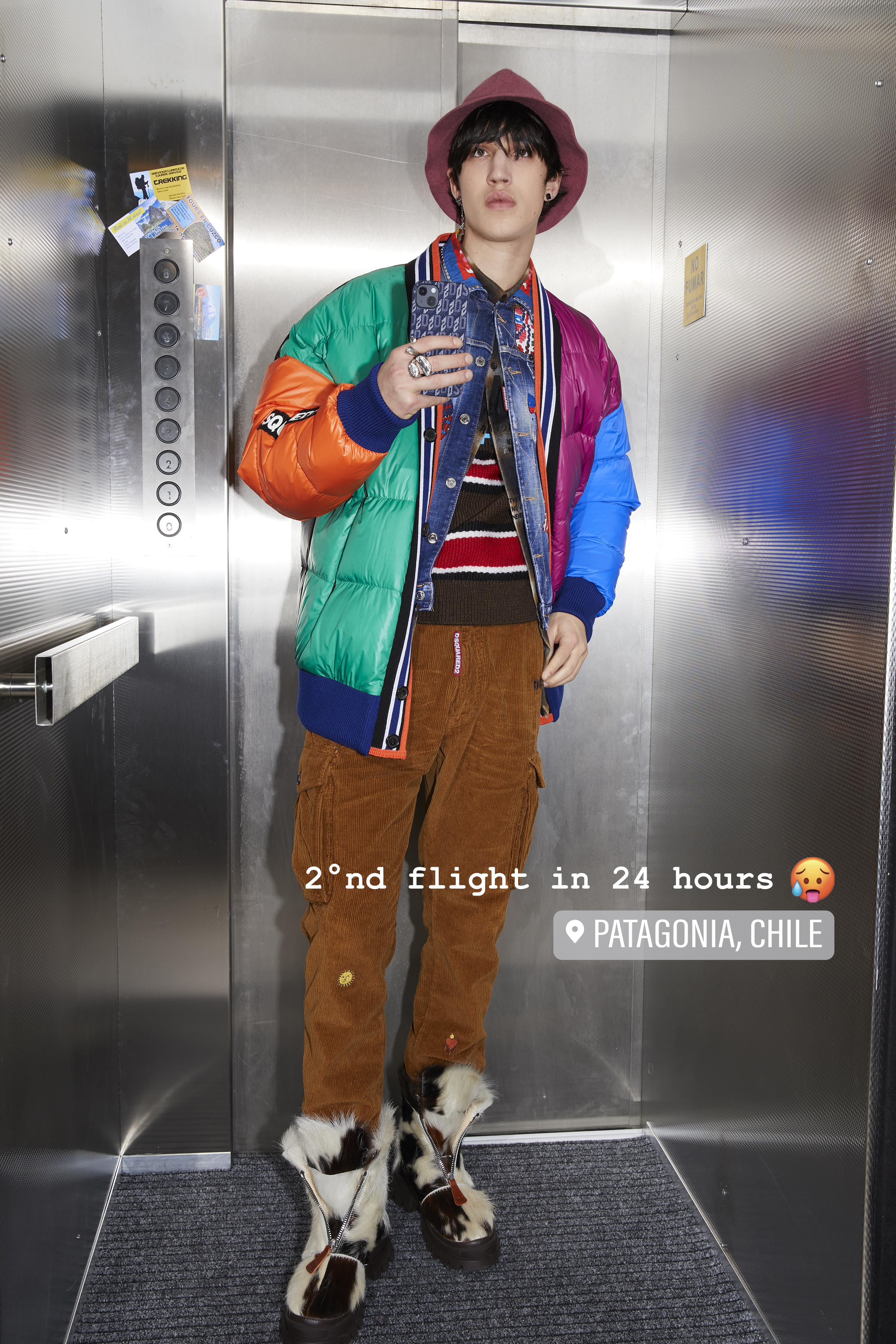 Headed for the road, Dsquared2’s worldwide wanderer is destined for the places she’s already travelled in her mind. The Pre-Fall 22 collection is the wardrobe for the journey, mixed with the pieces she found on the way. Her suitcase is a dress-up box, and her looks are inspired by the possibilities of the places she will discover. One day she’s outdoors under the falling leaves of nature she’s never seen, another meeting new friends on a rooftop towering amongst a foreign city’s skyscrapers.