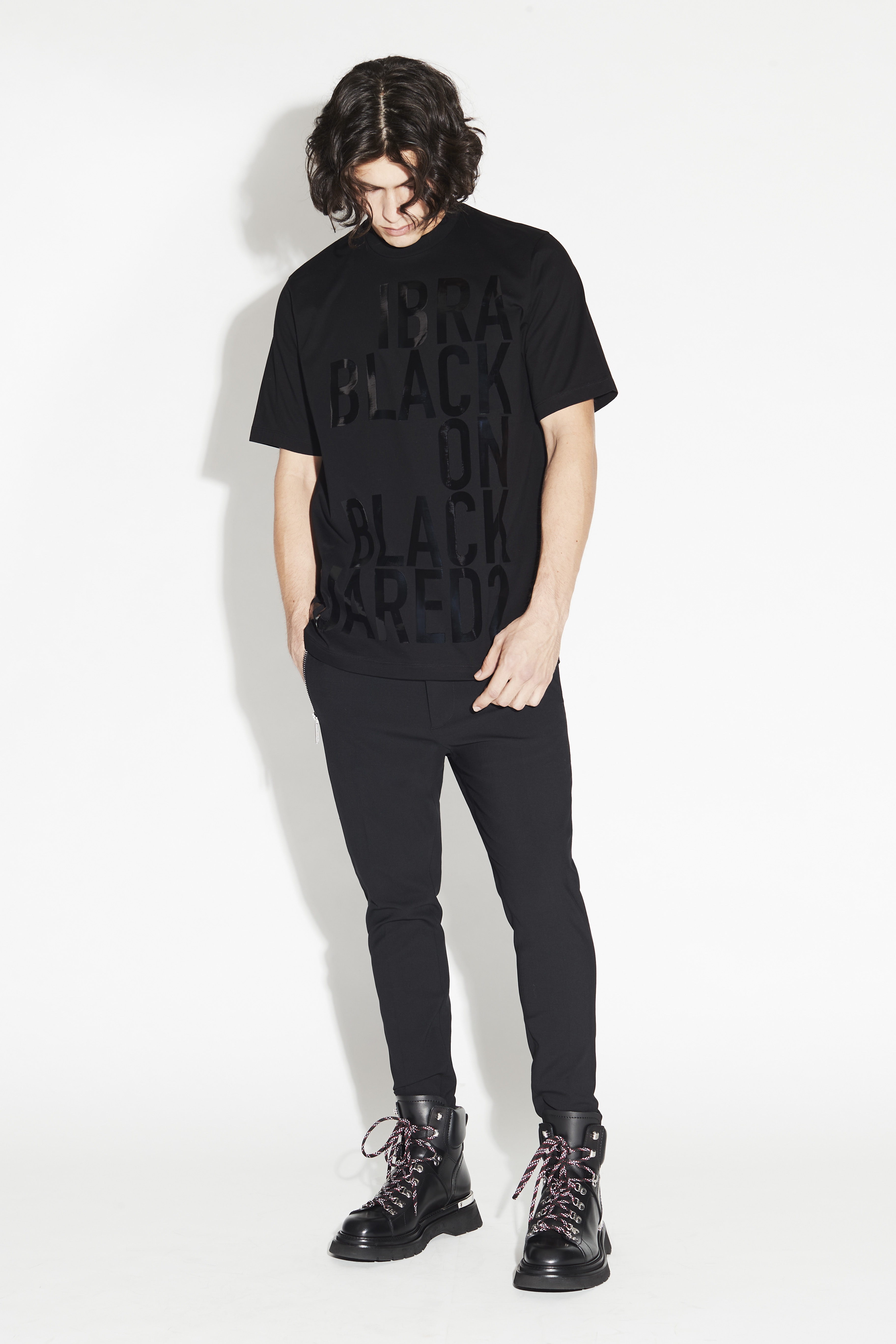 Embodying its name, the lineup is entirely in black, from eveningwear, to day pieces, sportswear and denim and accessories. Tone-on-tone black motifs define the pieces: printed logos featuring Dsquared2 and the A.C. Milan striker’s nickname Ibra, Zlatan Ibrahimović’s initials embroidered in a cursive style, and denim labels and tapes featuring Dsquared2, Ibra and the collection’s name. Specially designed hangtags for the pieces are printed in block letters.