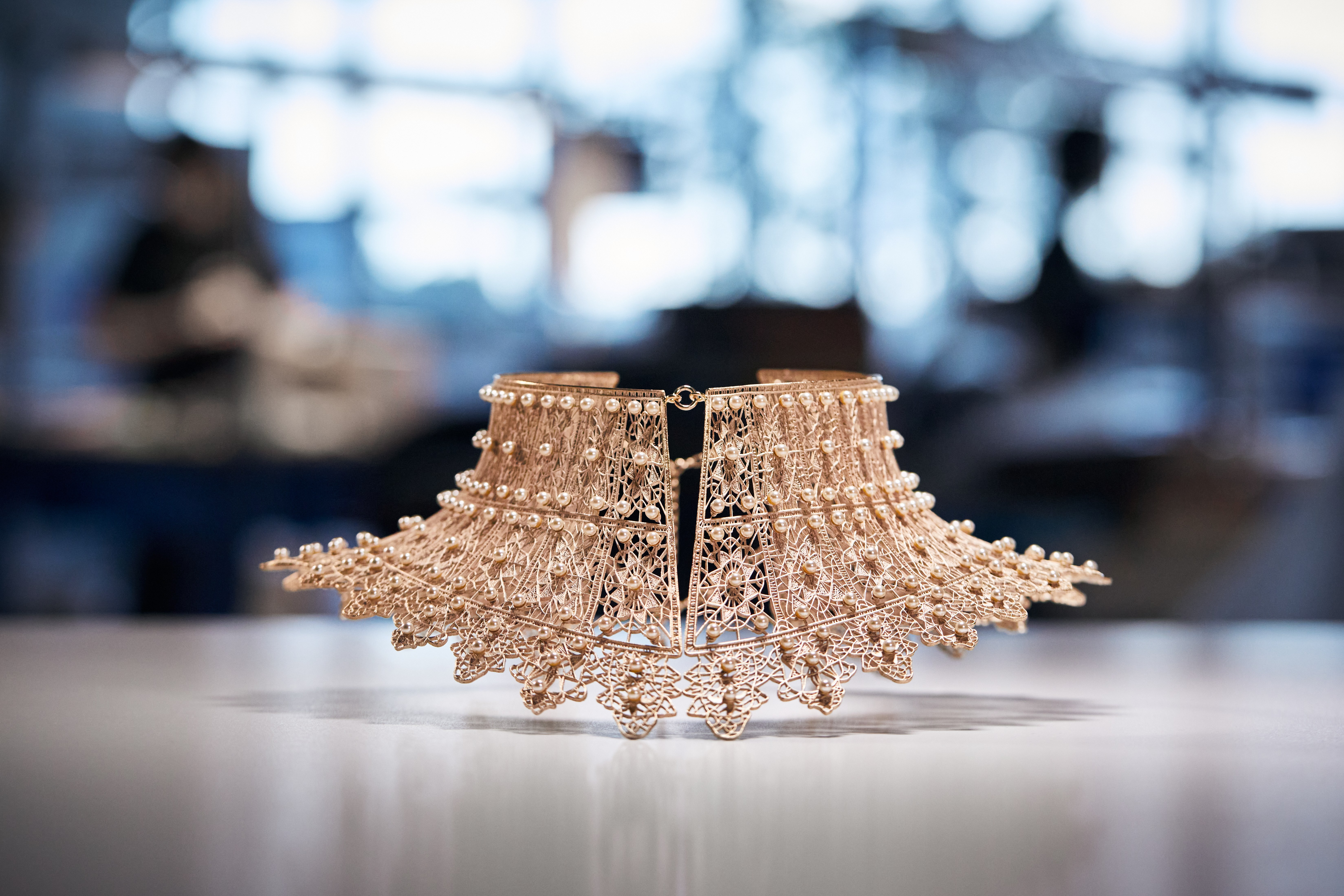 Irresistibly poetic, the D-Renaissance jewelry of the Dior autumn-winter 2022-2023 ready-to-wear collection, deploy a virtuoso savoir-faire inspired by haute joaillerie. These bewitchingly finely crafted creations combine the lightness of lace with the delicacy of resin beads and rhinestones, hand-applied by artisans, one by one, with the utmost precision. Objects of desire, these are exemplary reflections of the House’s excellence.
