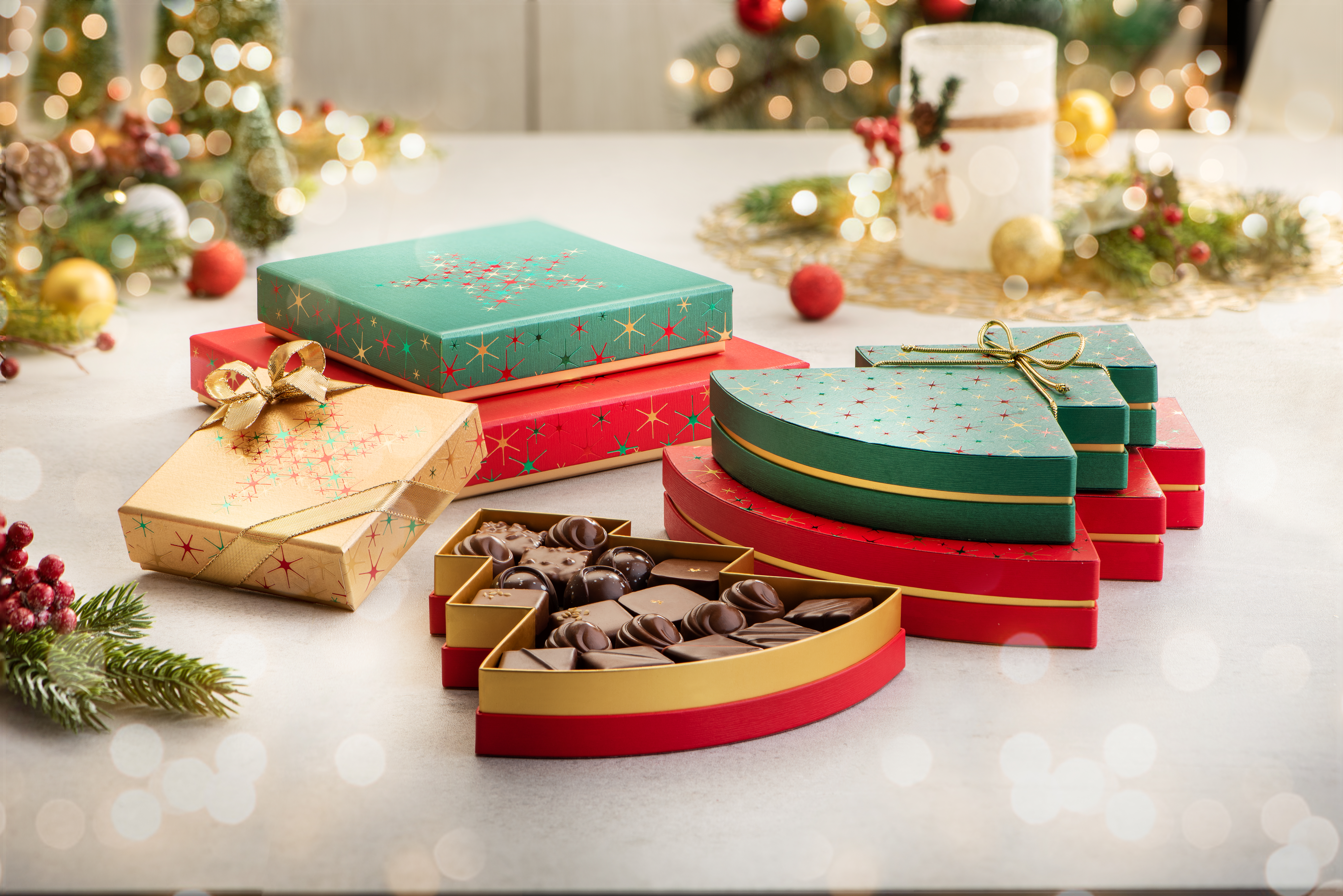 A beautiful addition to Christmas celebrations, the Estelle gift range comes in the season’s favourite colour trio, forest green, brilliant red, and dazzling gold. A sparkling range, the square and tree boxes feature multi-coloured shimmering stars for a remarkable aesthetic.