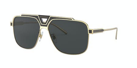The classic pilot shape with the iconic 45° cut has been combined with avant-garde details and features. The satin black enamel detail on the frontal frame contrasts with the glossy and polished gold colored profile. The style is enriched with the Dolce&Gabbana signature on the frontal frame and temples. Several colours available: gold with black satin enamel and black lenses, gunmetal grey with black satin enamel and mirror gun lenses, and bronze with brown lenses and satin black enamel.