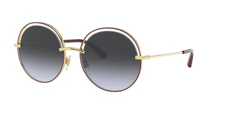 Round metal style enriched with an agreeable balance between filled and empty spaces on the frontal frame. The thin profile is refined by enamel details and the DG monogram on both the temple tips and the hinges. Several colours available: black lenses, smoke grey gradient and mirrored lenses, and pink gradient lenses.