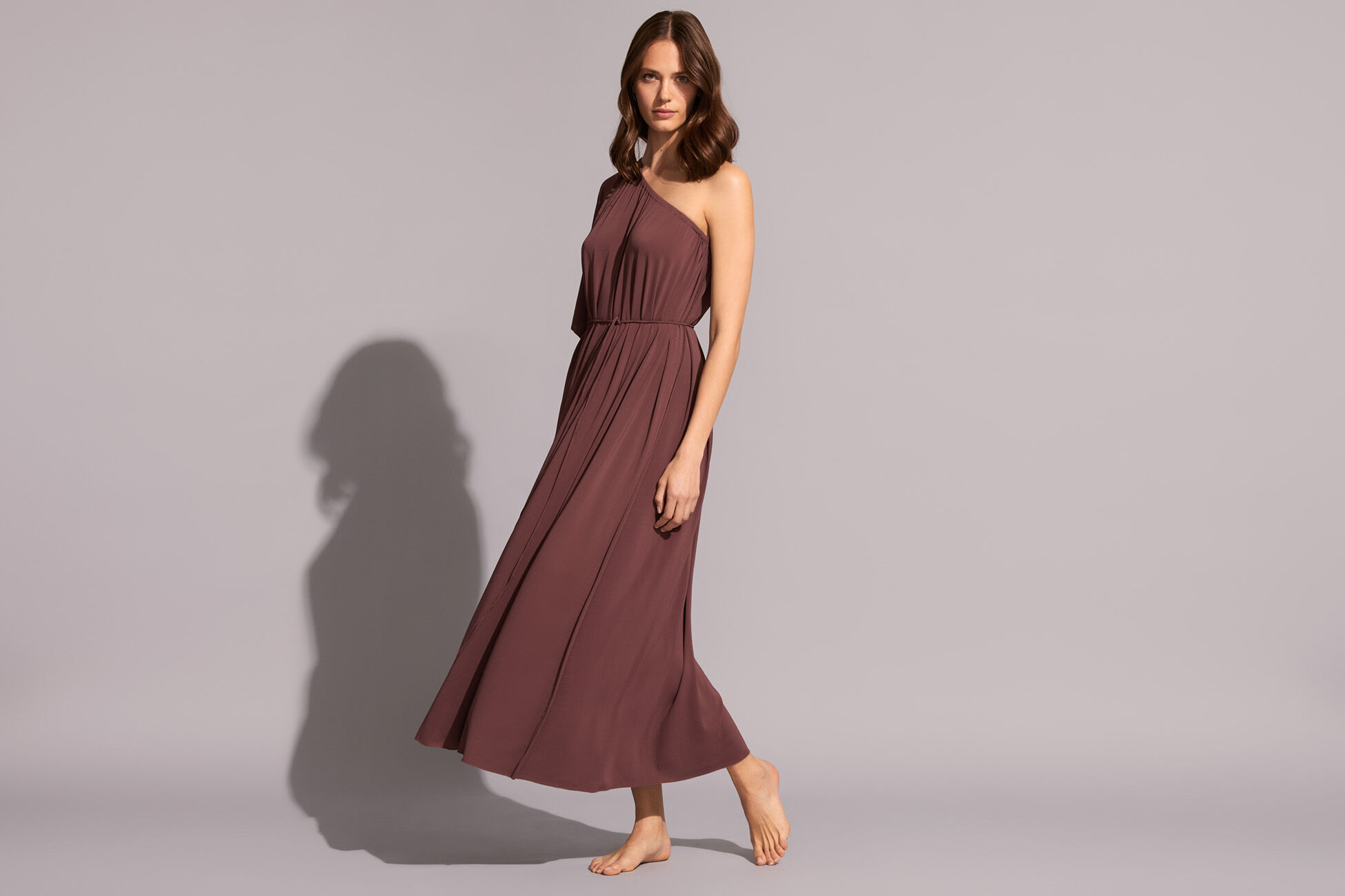 This season, the Géorgie asymmetrical dress enriches our iconic jersey line. Its feminine shape and comfortable material make it an ideal piece for both day and night.