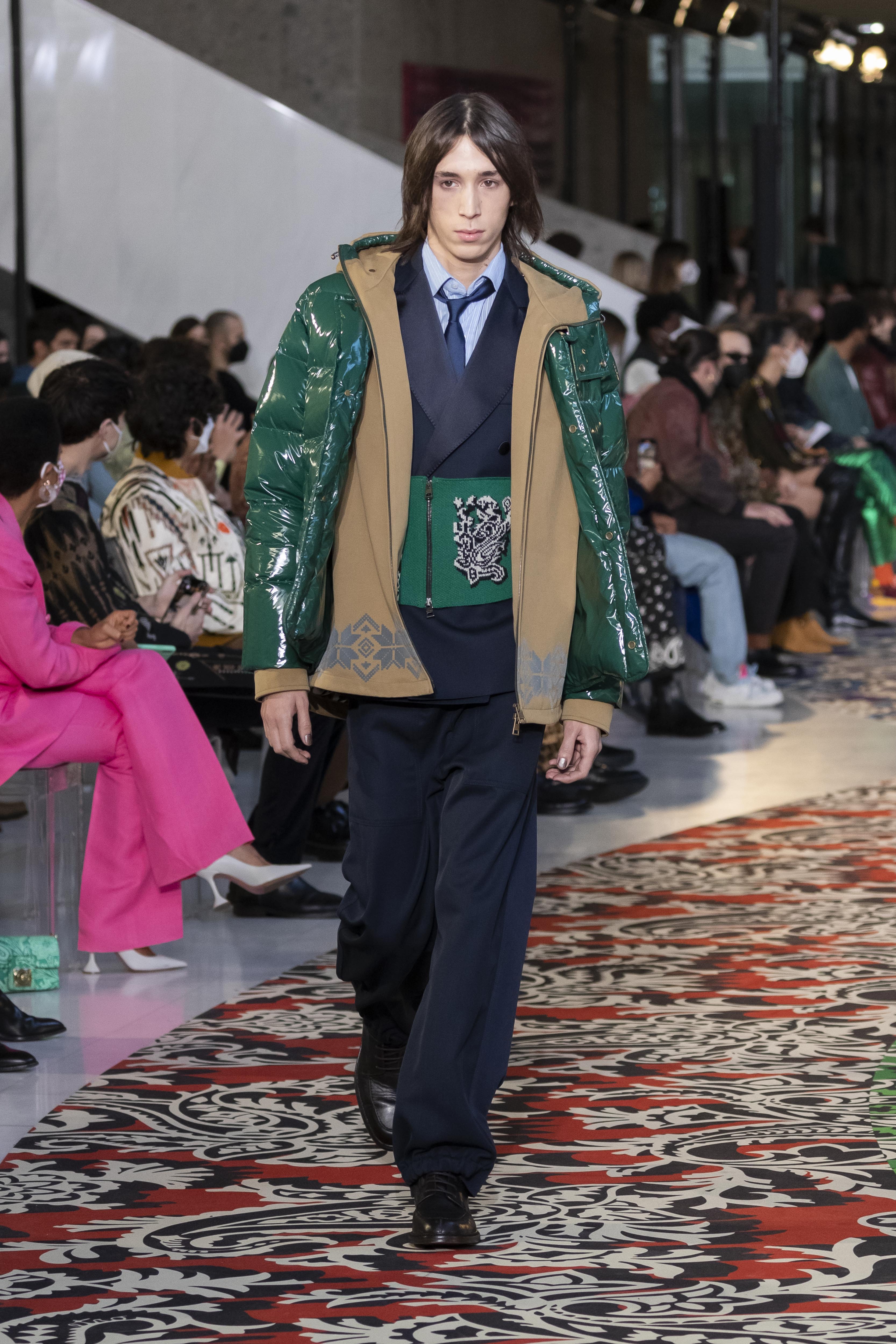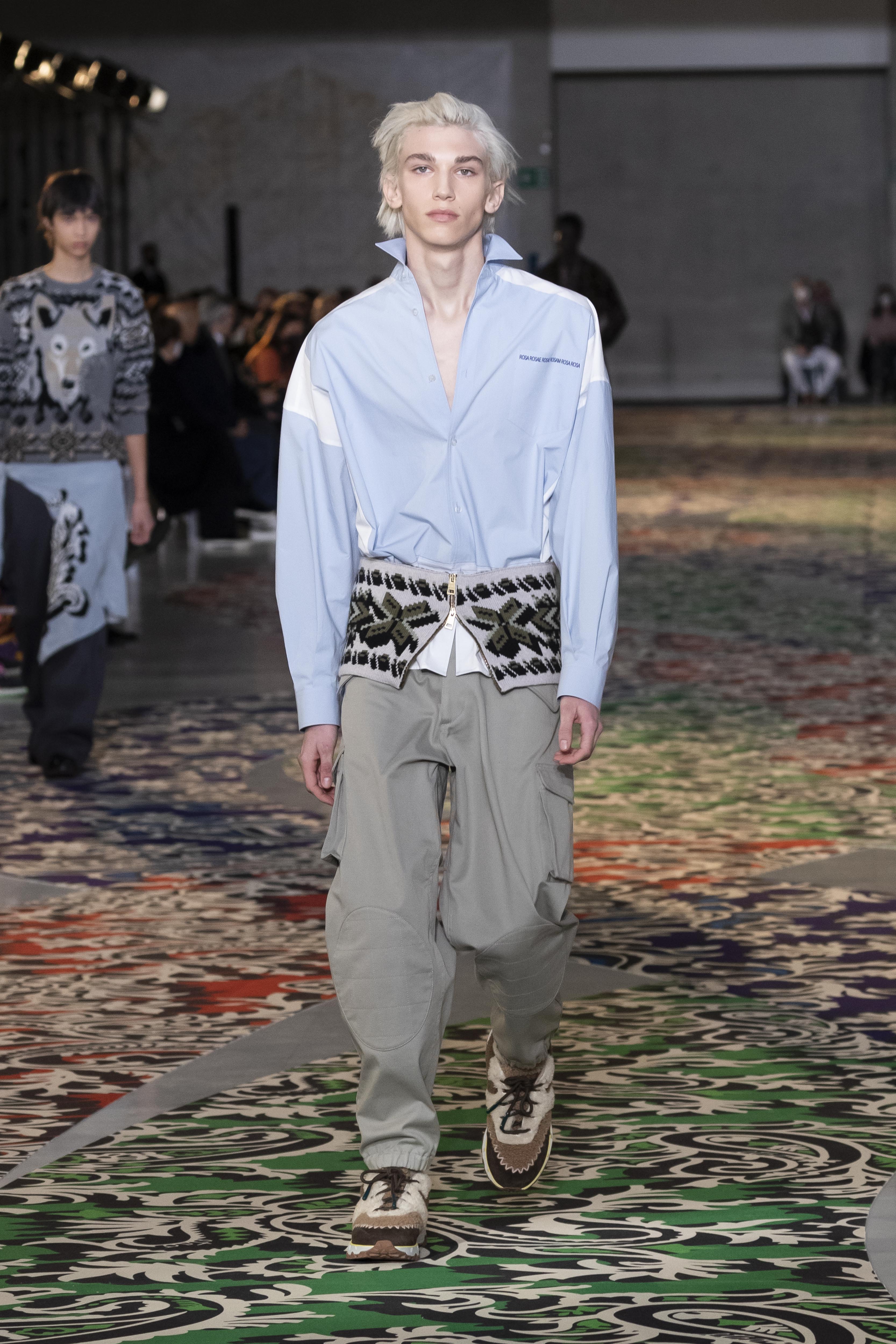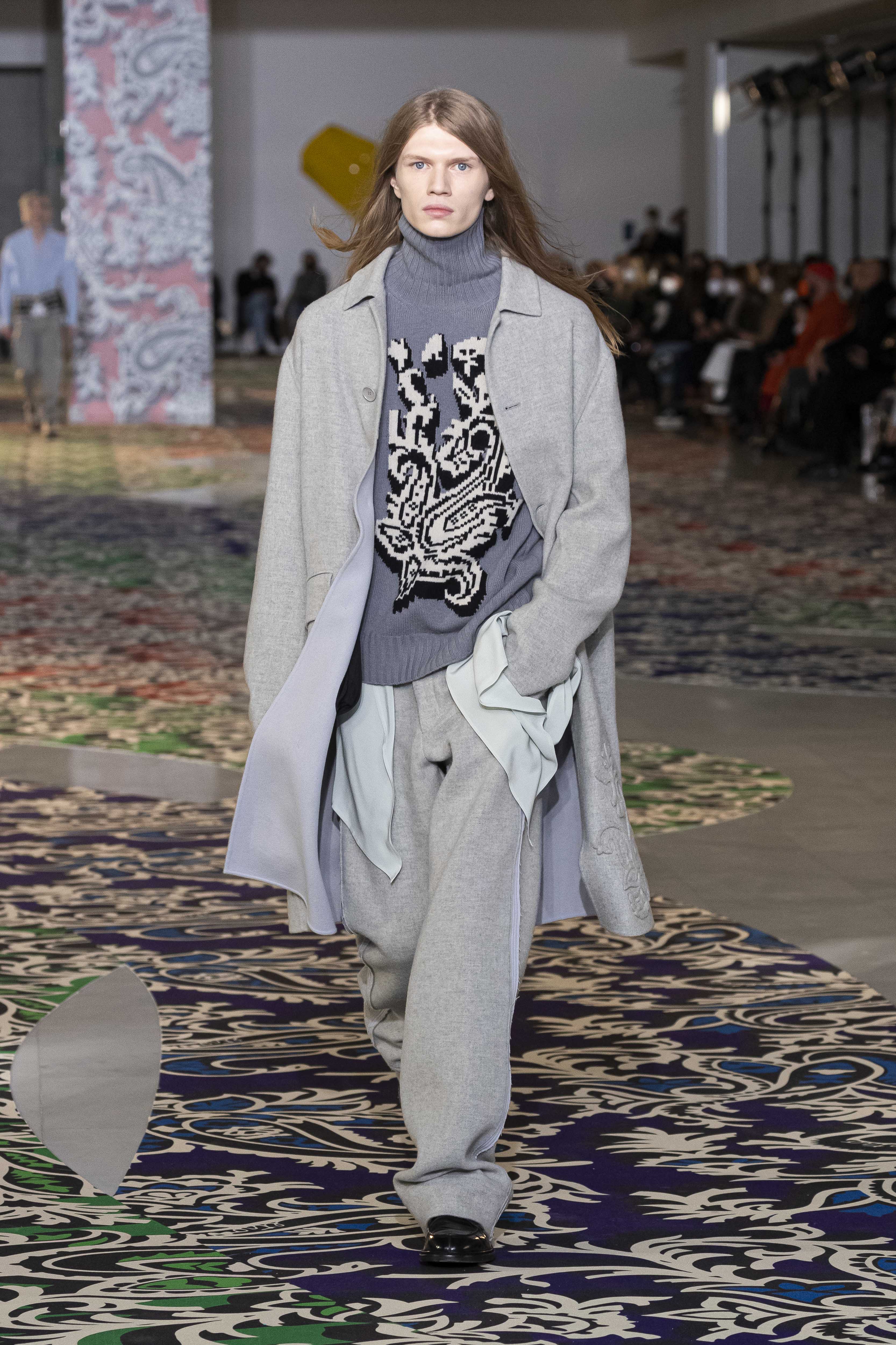 A new mental order can be felt, as crisp as the January light. The journey, whether it is knowledge or adventure, requires a map and a map requires clarity, which is not about being schematic but about being lucid. The collection is clear in the overlapping and accumulation of different signs: North stars and anchors, winter sea and mountains, wolves and roses. An amalgam that, like a small library, is united by a thin thread: the will and vision of its author, Kean Etro. In this new feeling, even paisley finds a geometric dimension, while the exercise of dressing well regains importance.