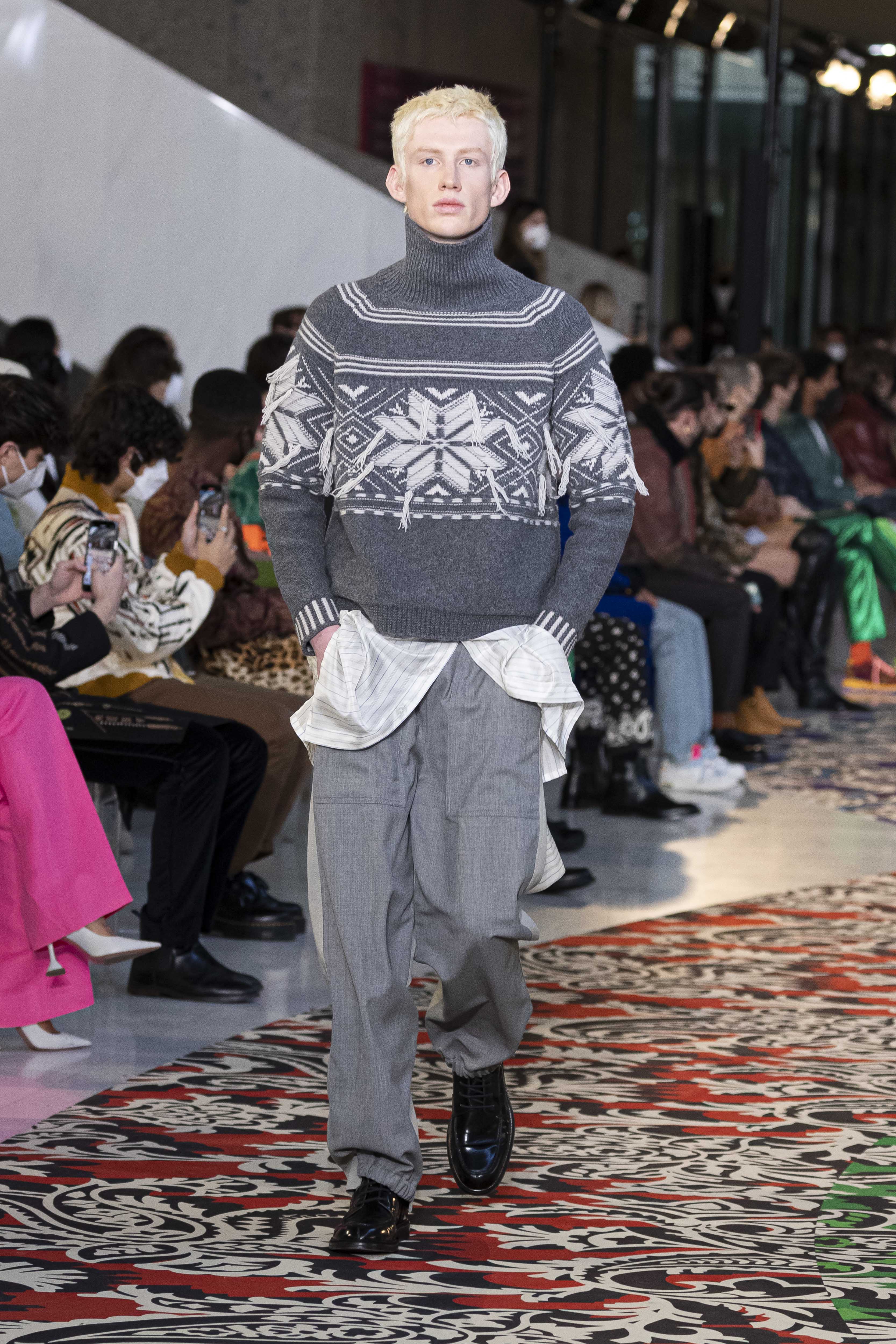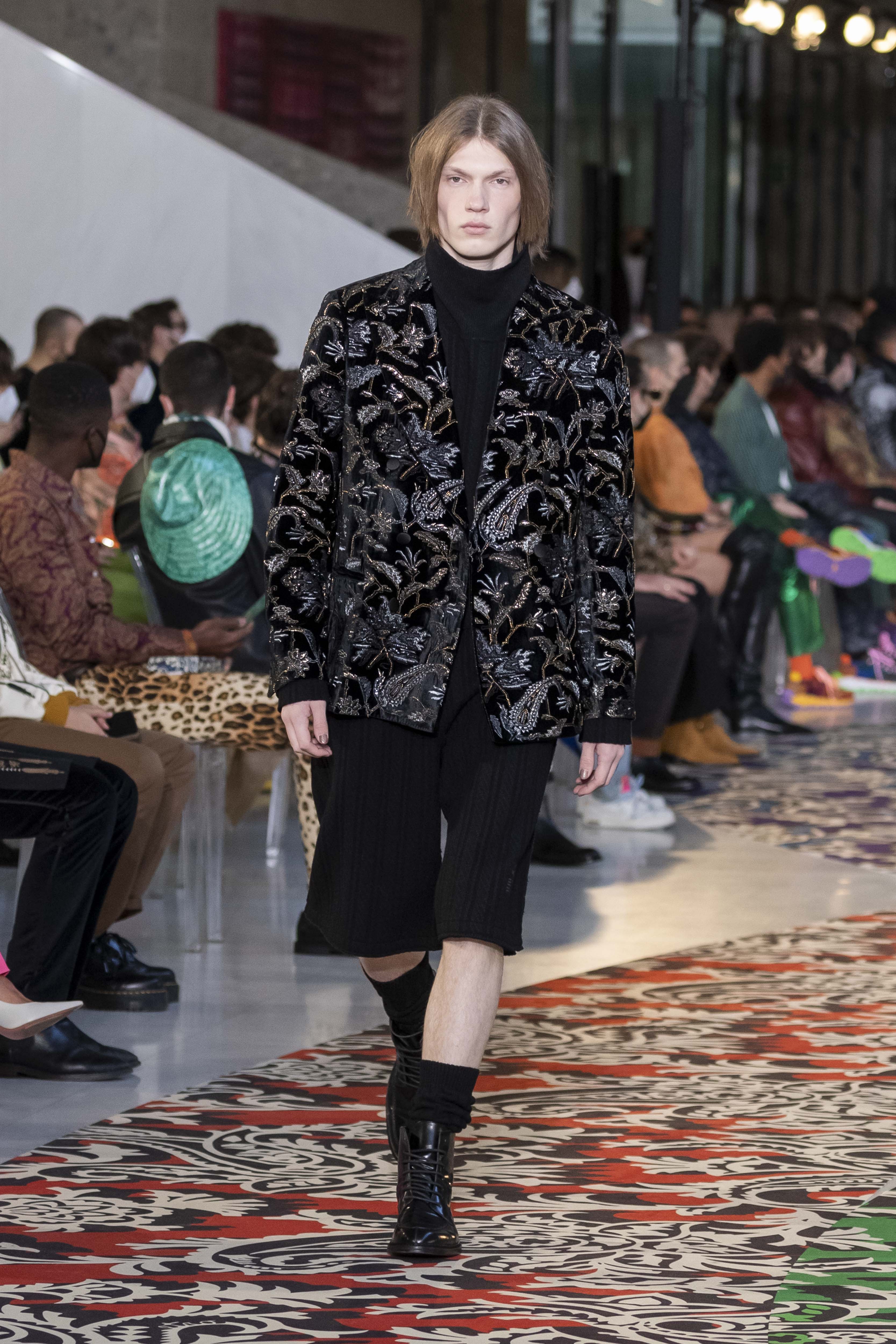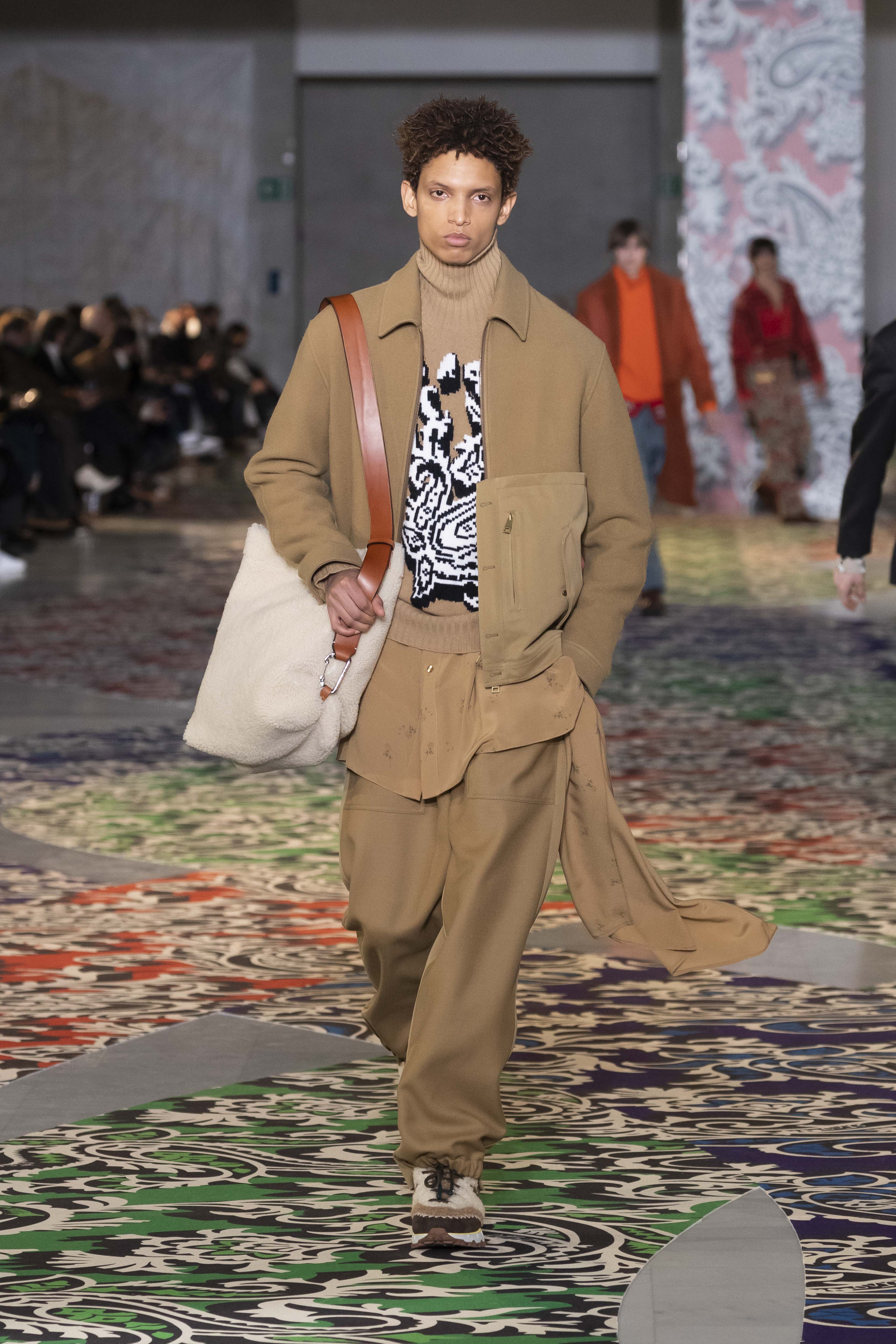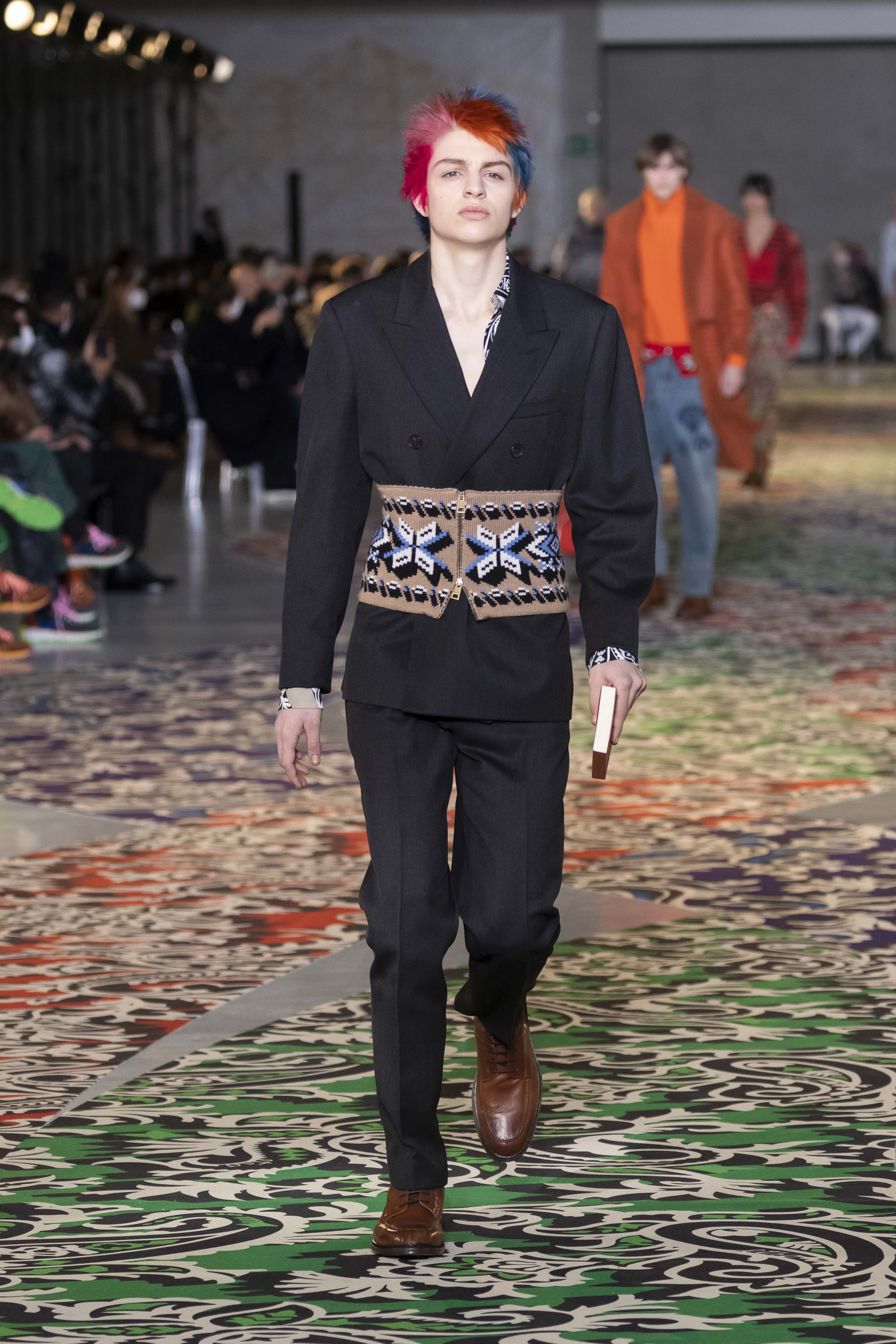 A new mental order can be felt, as crisp as the January light. The journey, whether it is knowledge or adventure, requires a map and a map requires clarity, which is not about being schematic but about being lucid. The collection is clear in the overlapping and accumulation of different signs: North stars and anchors, winter sea and mountains, wolves and roses. An amalgam that, like a small library, is united by a thin thread: the will and vision of its author, Kean Etro. In this new feeling, even paisley finds a geometric dimension, while the exercise of dressing well regains importance.