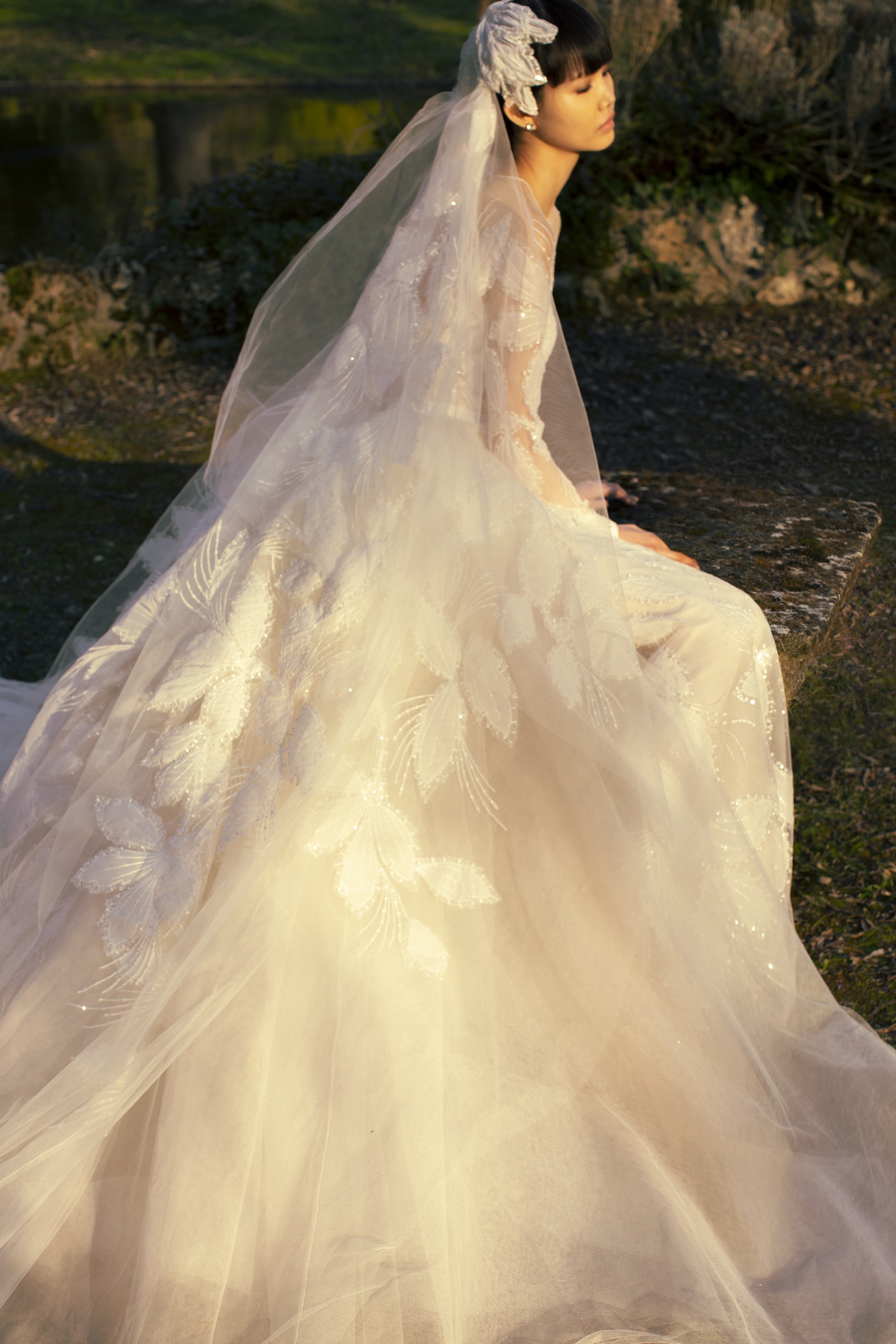 She is the heart of the masterpiece, heavenly as she breathes light and pulse into her surroundings, yet ever so earthly in her gentle grace and ethereal appeal. ELIE SAAB BRIDAL SPRING 2023 embodies such fleeting moments of transcendence, drawing from the ideals of nature, the enchantment of the past and the musings of Pre-Raphaelites to intentionally revive a fierce romanticism and tender femininity.