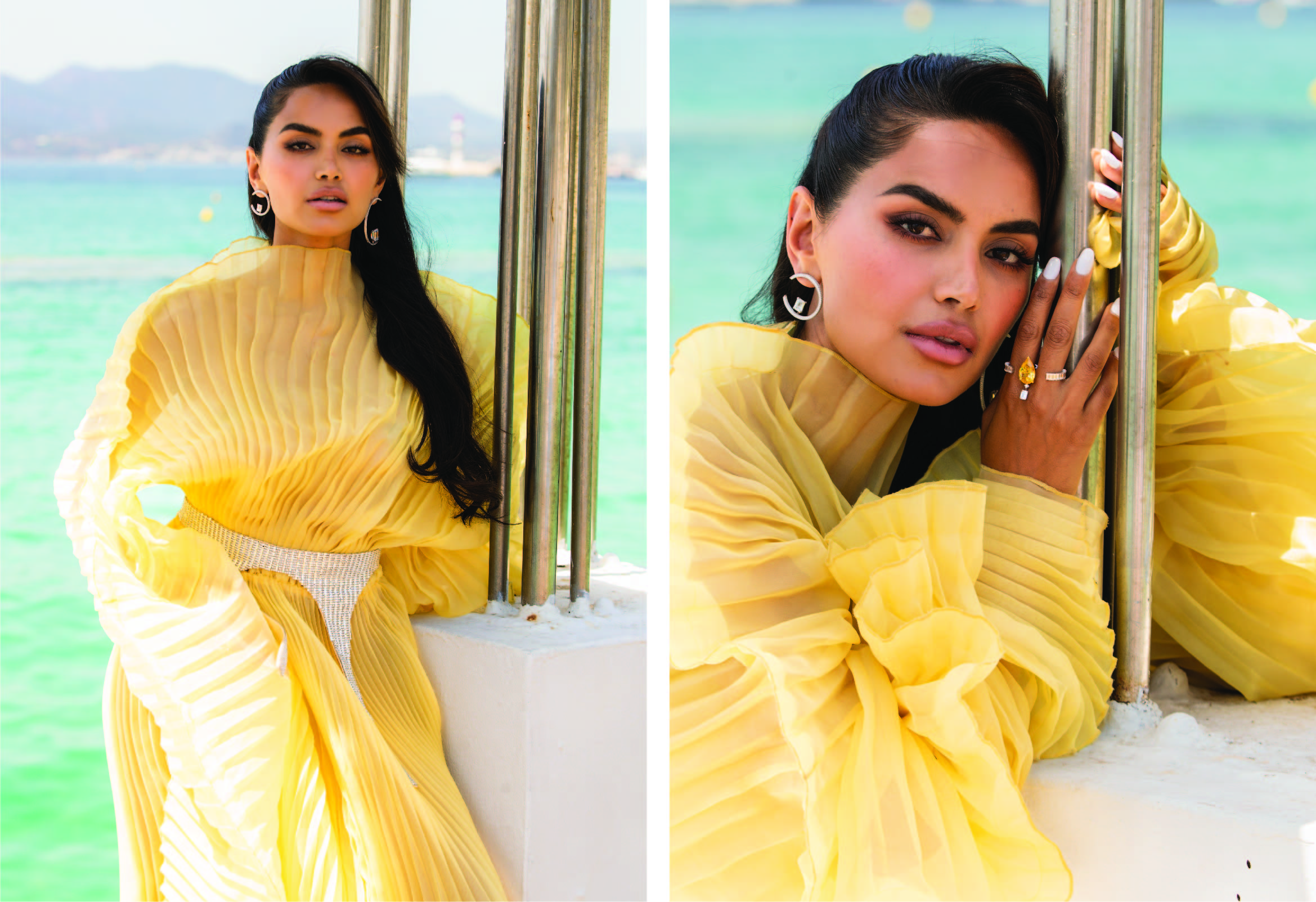 DK: Taking my Cannes experience this year to a whole different level where I got to not only walk 3 Red Carpets but shoot a Cover aswell. It was a couture dream come true! I had the best time with the beautiful backdrop of the French Riviera and channeling that energy into the timeless looks we shot for the cover.