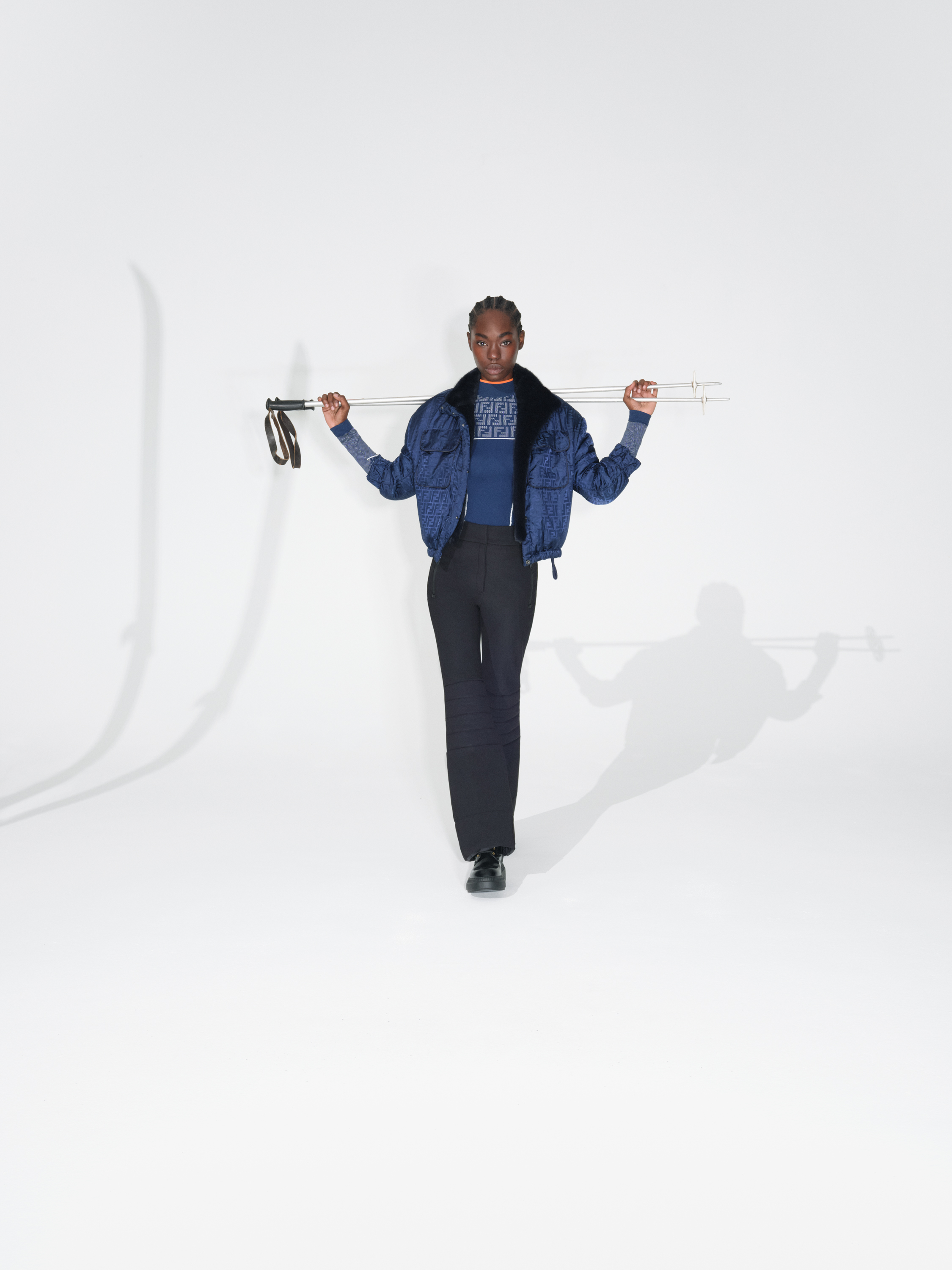 Signature codes seen on the runway become standout details on skiwear garments and accessories, bringing the FENDI flair to the mountains.