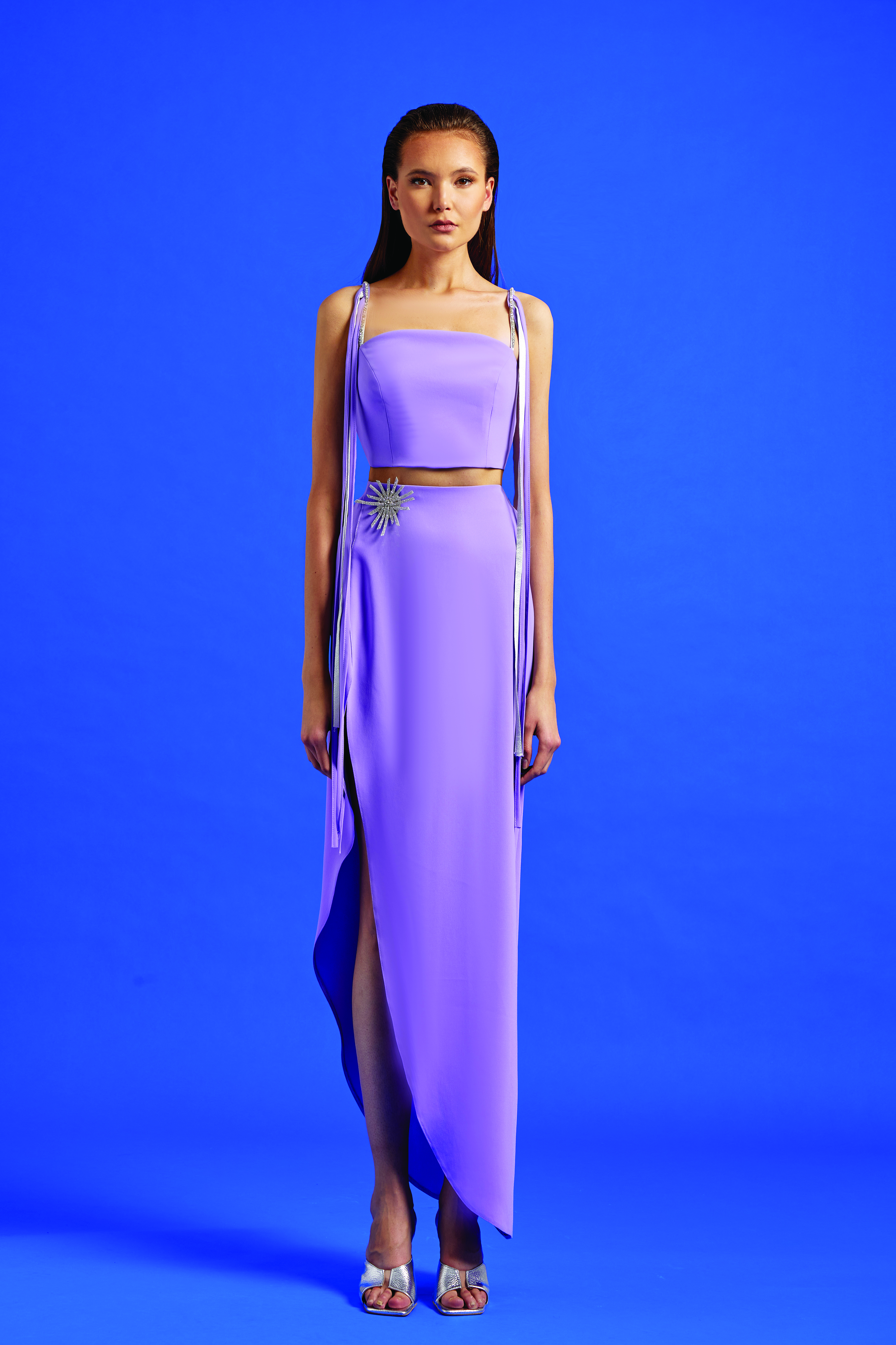The idea behind this collection is to showcase the beauty of the fabrics by adding complex plying techniques using artisanal know-how. A minimalistic approach that is expressed in the complex cuts, the finest raw materials and handmade artisanal jewelry. Each piece is cut, sewn and produced by Fadwa Baalbaki expert couturiers in the Fadwa Baalbaki atelier in Beirut, Lebanon.