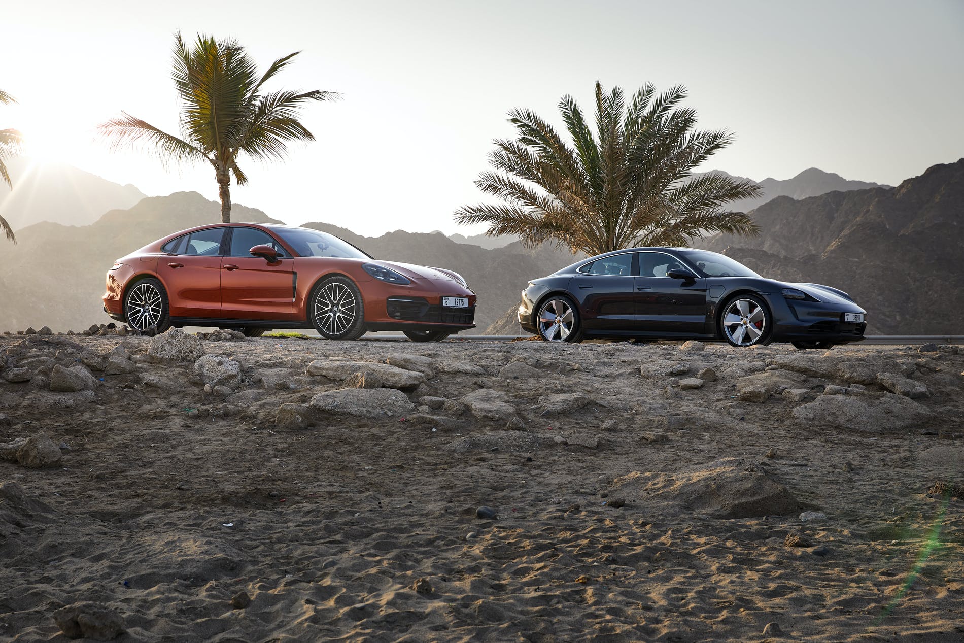 L’Officiel Arabia recently had the opportunity to sample both Porsche models via a 300km road rip that would take us from the urban environs of Dubai to the opulent Address Beach Resort in Fujairah and back, enabling us to get a good feel for the duo of the luxurious four-door Porsche models. We chose the Taycan 4S for the outward leg, as we were intrigued by the fully electrified newcomer that has been greeted by rave reviews since its launch.