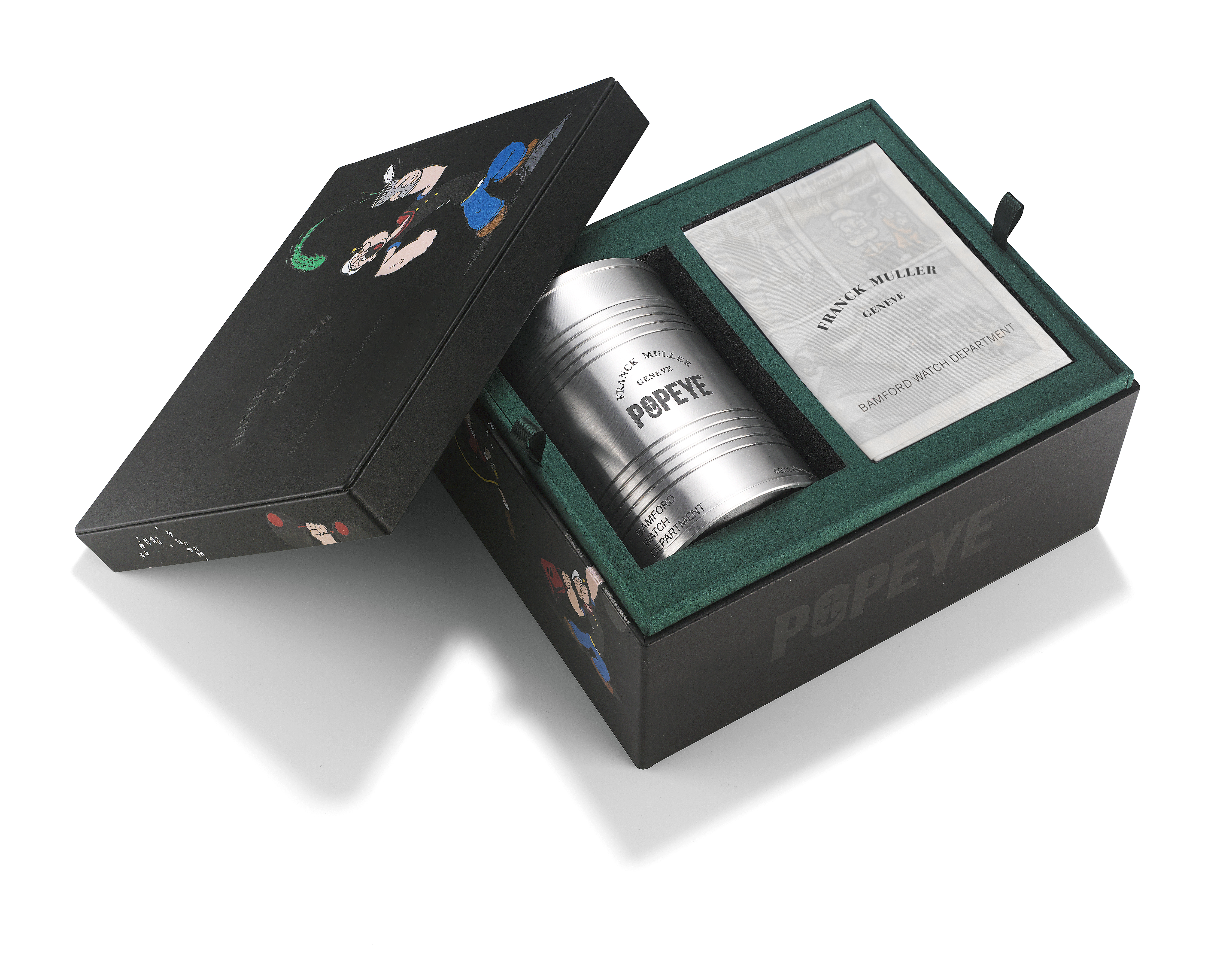 The styling and attention to detail is evident throughout this piece and tells a true collaboration story between Bamford Watch Department and Franck Muller. Included in the unique packaging is an original comic strip which tells the tale of Popeye’s travels to London and Geneva, exclusively created to celebrate the collaboration by cartoonist, Randy Millholland.