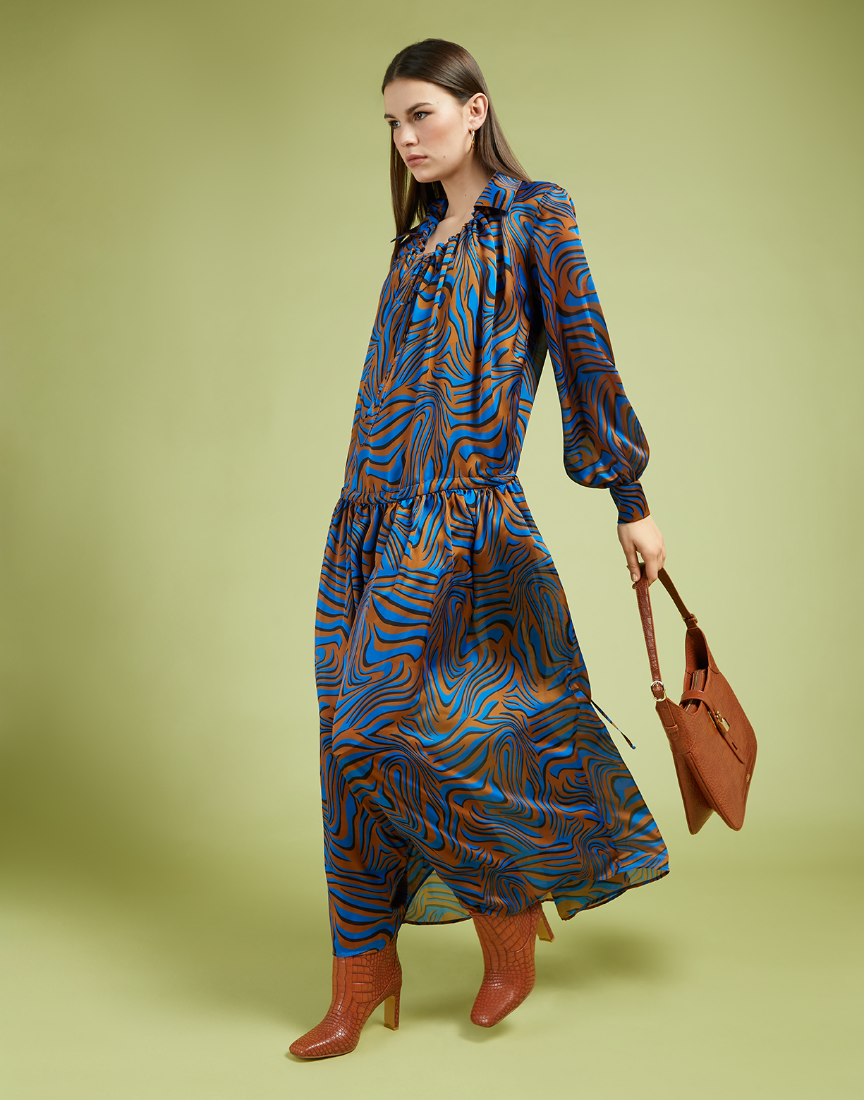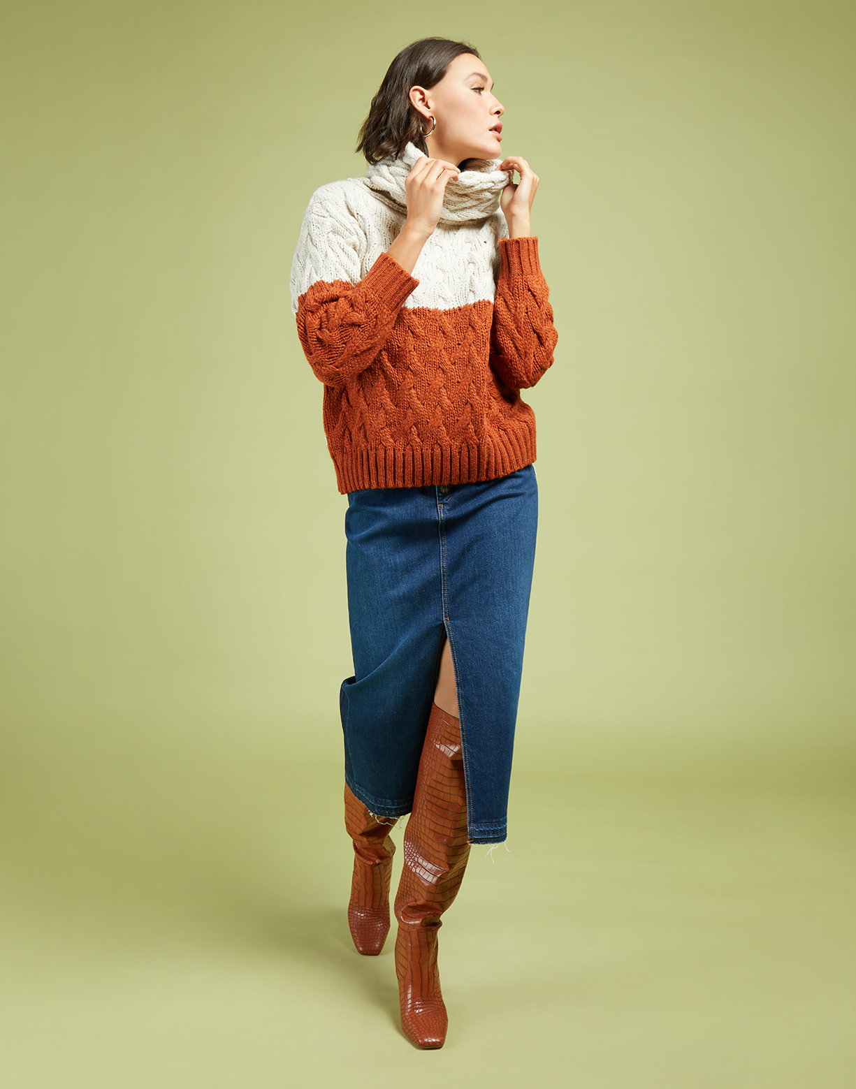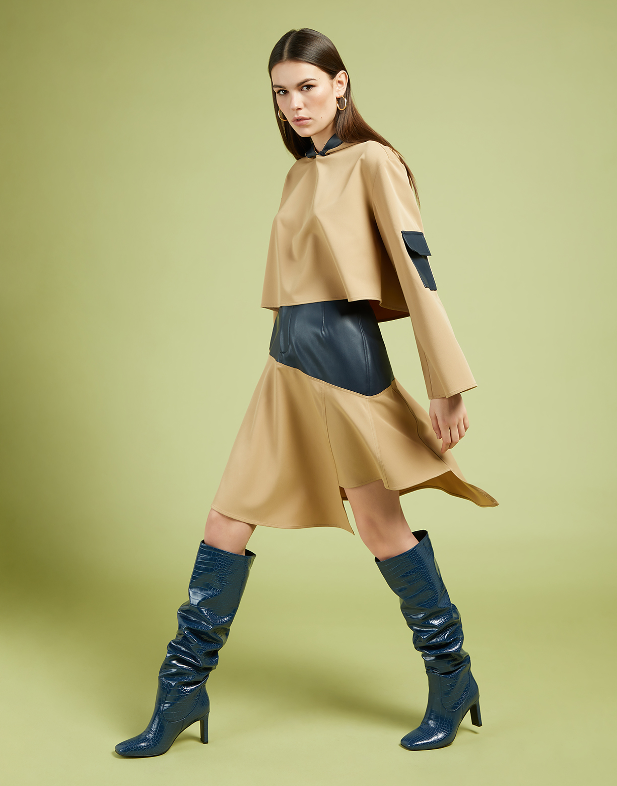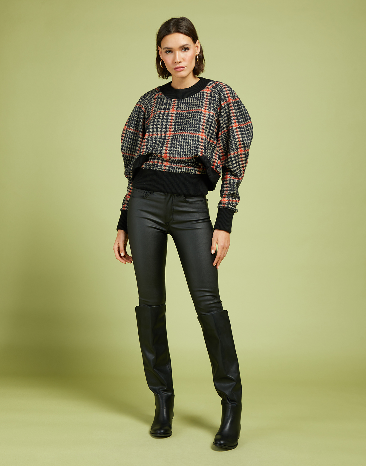 The collection sees an interesting mix of exuberant and feminine pieces aligned with the image of a modern woman who desires to be elegant and can adapt to any occasion. A focus on fabric lives through the brand’s previous and current collections, demonstrated through maximum attention to detail and visible stand out pieces like eco-leather, cool wool, smooth and striped velvets, check wool and jacquard, soft chenille, poplin and silk acetate for shirts and under-jackets, including a wide range of denim and knitwear.