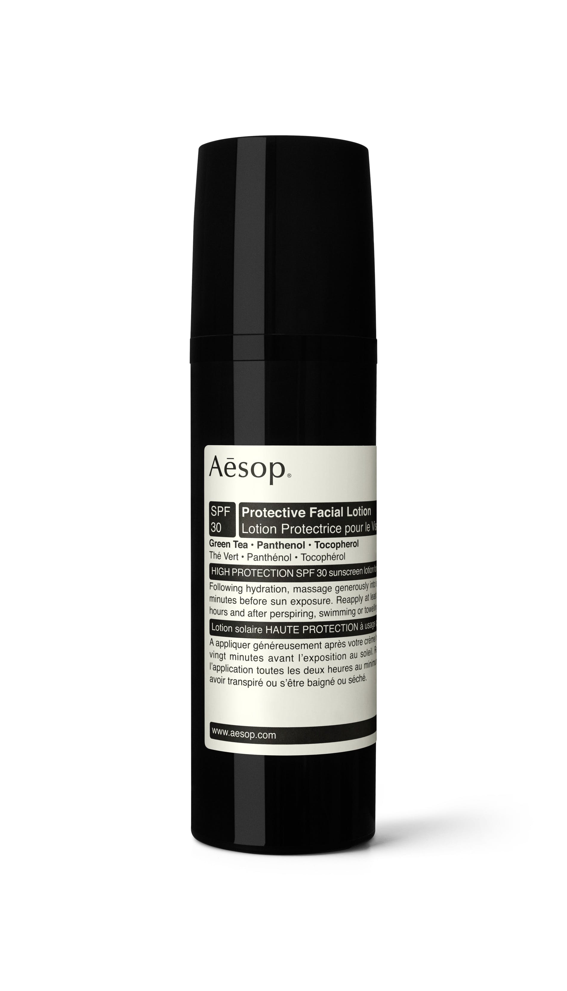 Aesop’s Protective Facial Lotion SPF 30 is a hydrating moisturizer with anti-oxidants, offering broad spectrum protection against UVA and UVB rays. The hydrator contains Green Tea and Tocopherol (Vitamin E) to deliver potent anti-oxidant benefit, working to minimize the effects of daily damage caused by pollutants and sun exposure.