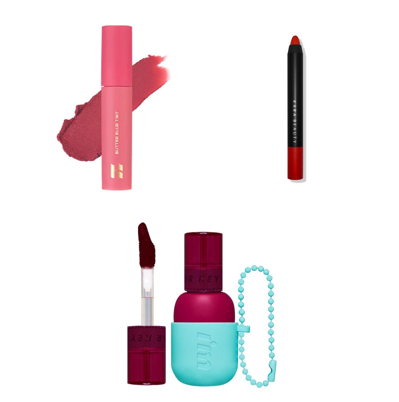 Image (Clockwise): Holika Holika Lip Tint Lychee, KaraBeauty Lip Liner, I'Mmeme Lip Tint