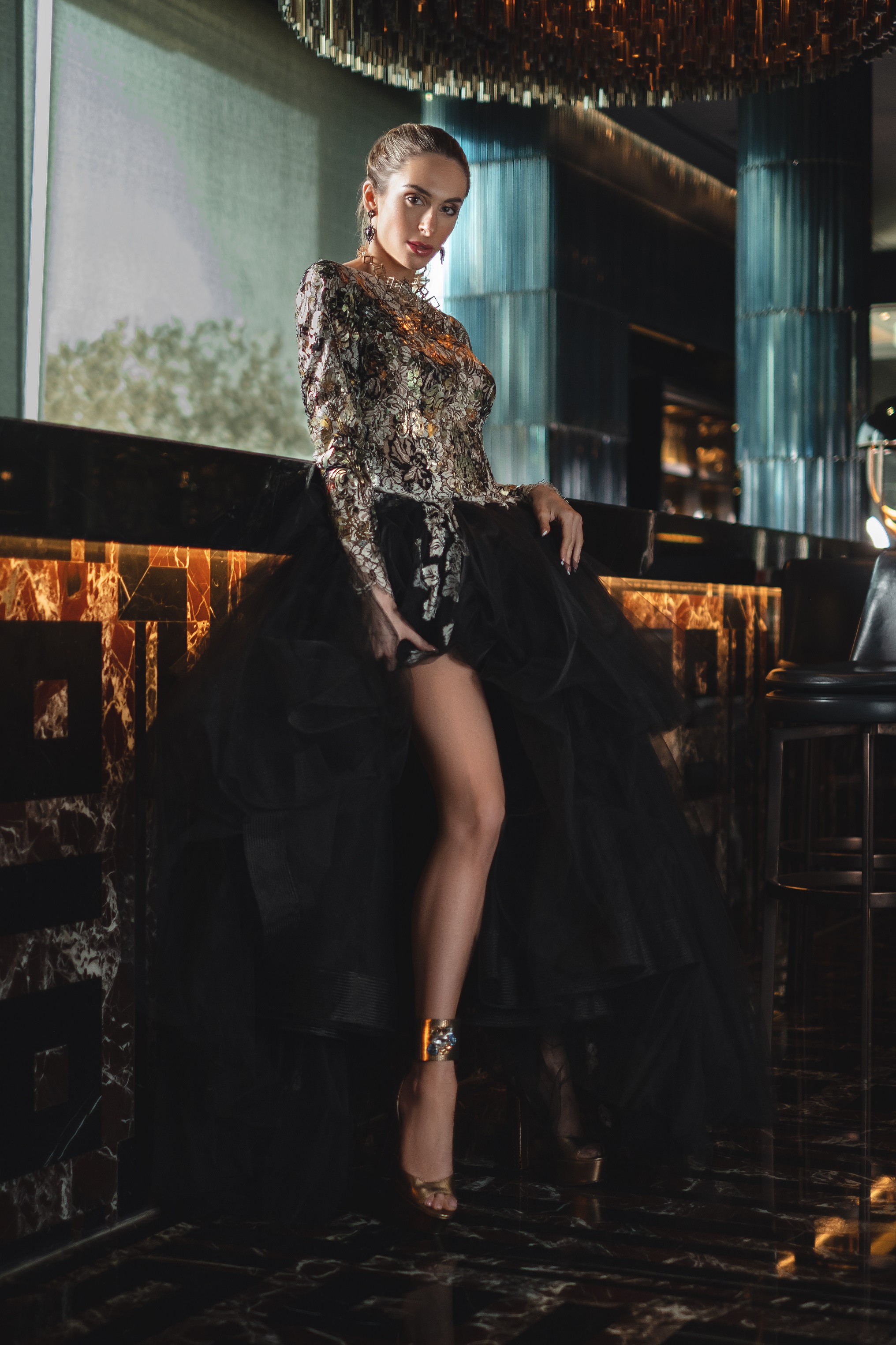 Yes, it was such an amazing moment surrounded by talented people and high fashion creations. The location was also amazing. We shooted inside Noir Bar, located in the Kempinski Hotel Dubai. This Cocktail Lounge and Bar are sophisticated in a decadent ambience. This place is perfect with a unique decoration stylish concoctions & creative blends utilising fresh local ingredients.