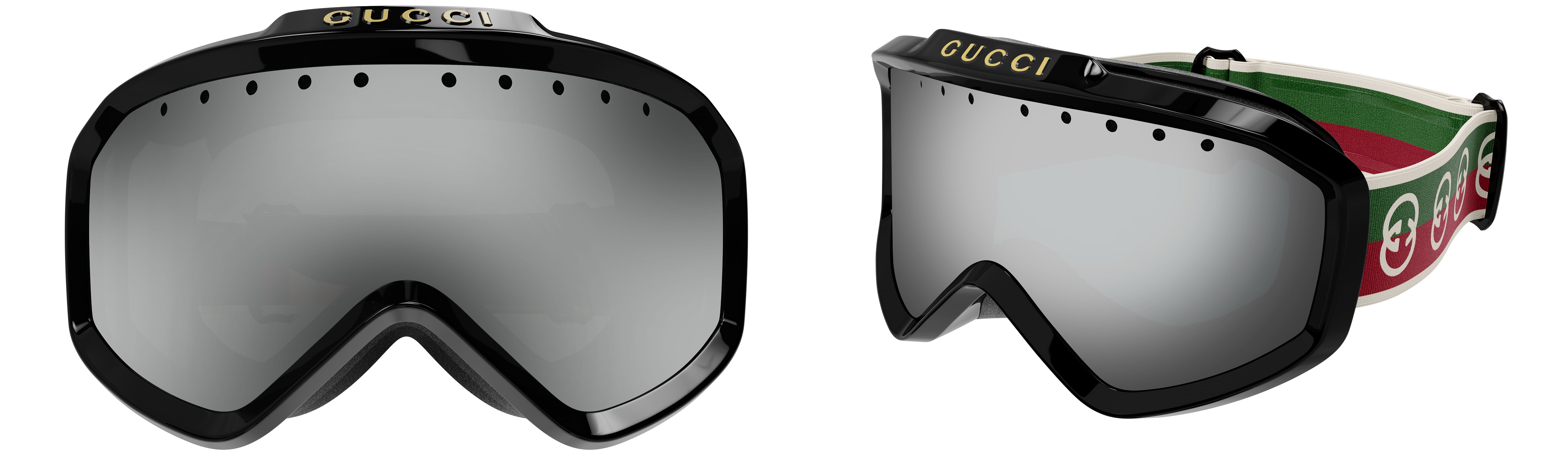 With a fresh, unconventional combination of archival codes and signature details, the selection of styles reinterprets the House’s timeless aesthetic. A gender-neutral ski mask is characterized by the Gucci lettering logo on the front, while an adjustable strap with a Web-inspired motif features the Interlocking G. Additional square and pilot sunglasses are reconfigured and detailed with detachable branded lanyards, bringing the distinctive codes of the House from the city to the mountain.