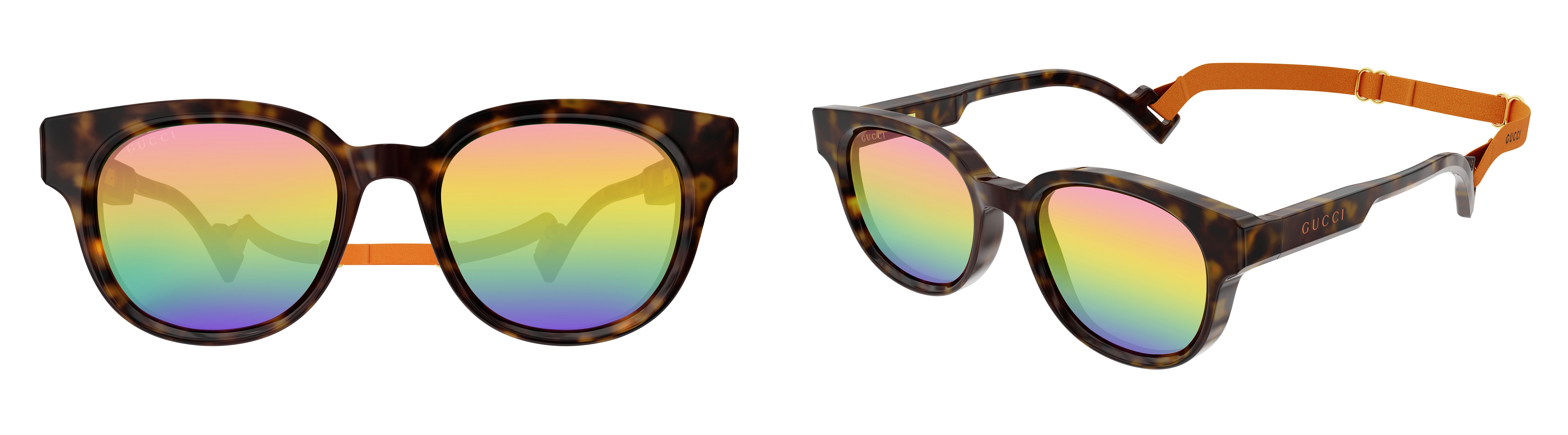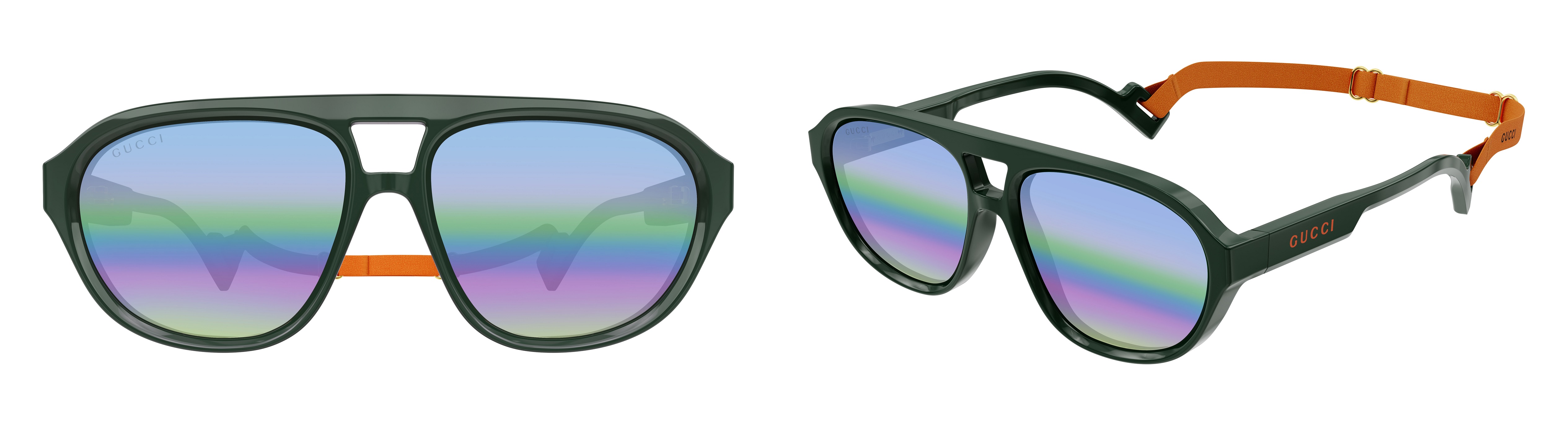 Caravan sunglass style enhanced with the Gucci lettering logo and cut-out temples for inserting branded lanyards.