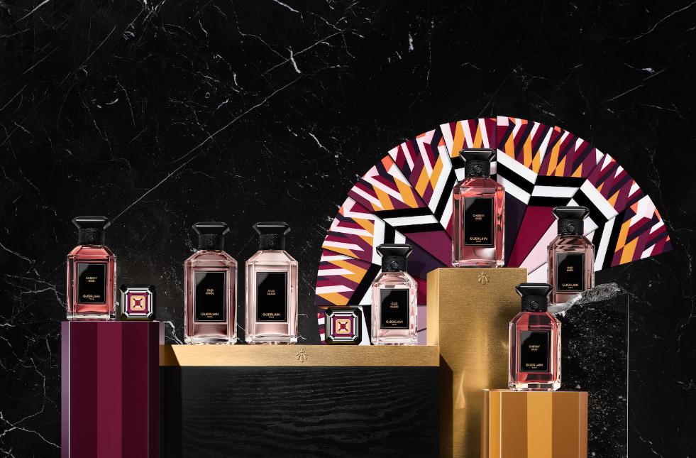 “In this creation between the sacred and the mischievous, I wanted to play on the contrast between the rarity, mystery, and darkness of oud wood, and the smiling irreverence of cherry.” – Delphine Jelk, Guerlain Perfumer