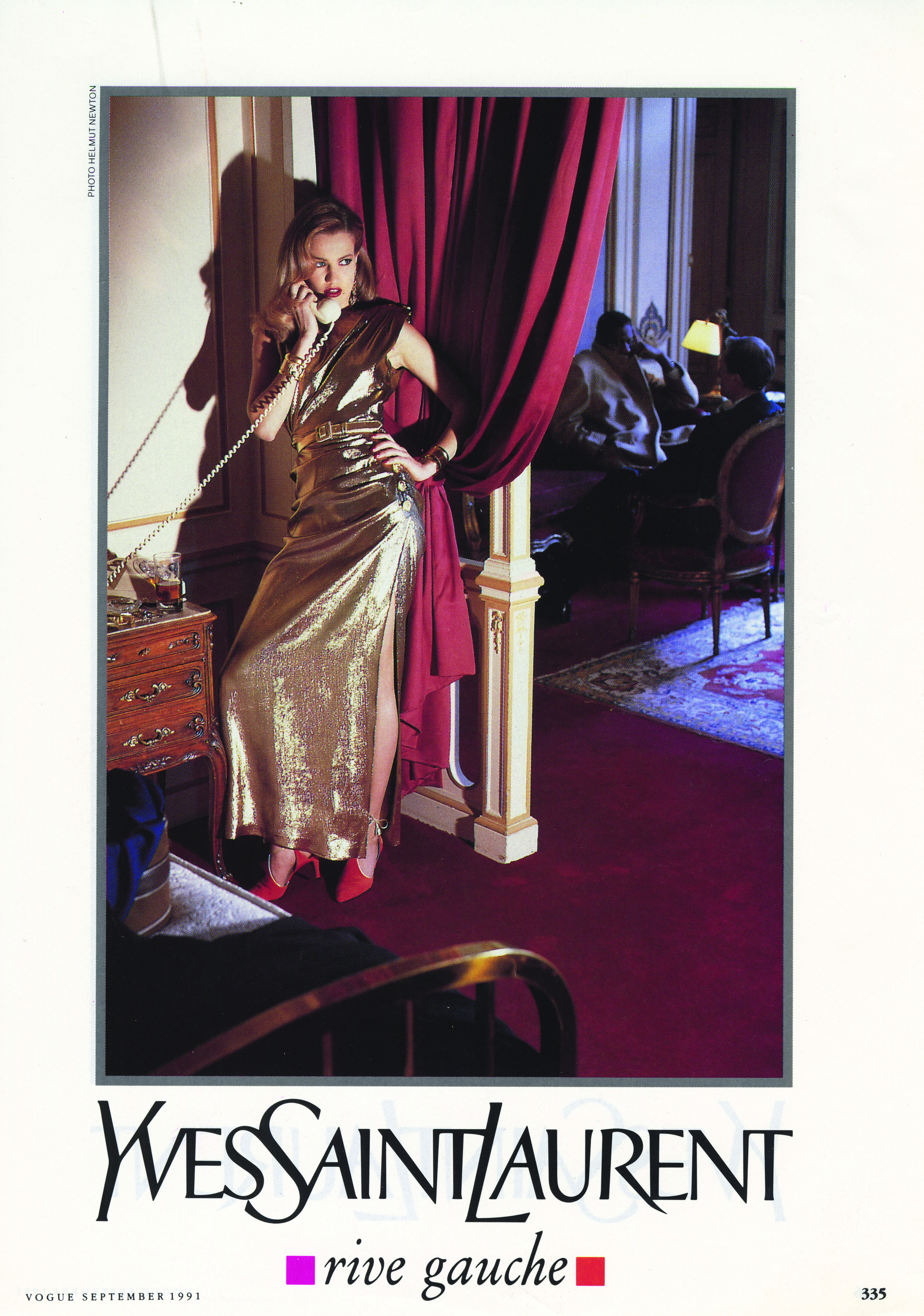 The new exhibition picks up where “A Gun for Hire” left off, showcasing photographs Newton shot mainly in the 1980s and 1990s for high-paying ad agencies and corporate clients, mostly in and around Monaco. In the first three exhibition rooms, we will be able to encounter fashion images for the luxury sector, for example, Newton’s interpretations of Yves Saint Laurent fashion, haute couture and prêt-à-porter. His photographic staging are as diverse and individual from season to season as the women’s fashion he depicted. They sometimes transcend reality, transporting us to distant and fantastical spheres.