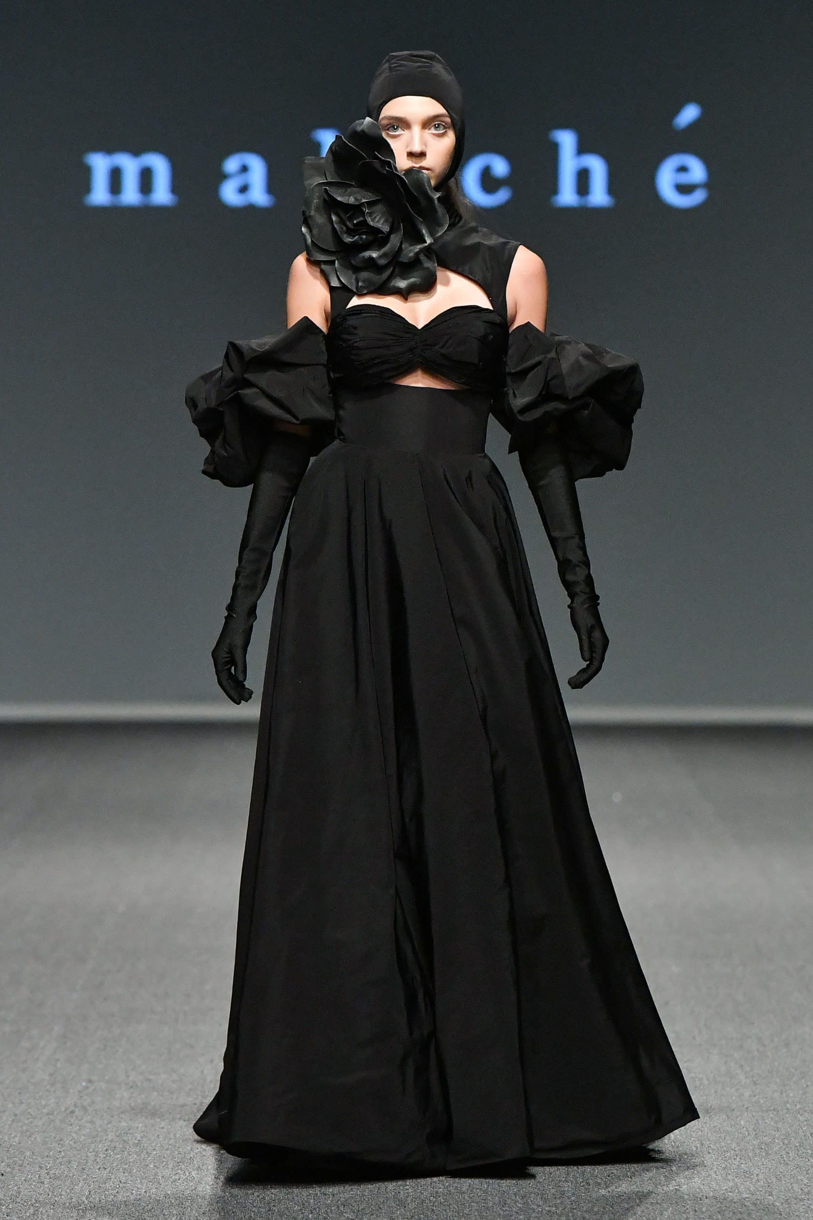 Known for its bridal couture, Filipino designer Michel Bernardo showed the UAE crowd what her brand Malichè is capable of beyond the altar. An all-black and white lineup dubbed “Tomorrow is Unlimited” her latest creations came to the fore in an emotional display, borrowing from the glam heydays of the 60s and 70s. The exaggerated rose served as the hallmark of the collection -- pinned cleverly to the neck and sewn onto sleek black gloves. Space-age hoods, scuba-tight fitted dresses and cutout bodices spoke to the glamour of a modern era. “It is a reminder -- or maybe, a challenge -- to all of us to do whatever we can do now, or we might unwittingly fall into the trap of an endless promise of tomorrow, which is but an illusion,” she said.