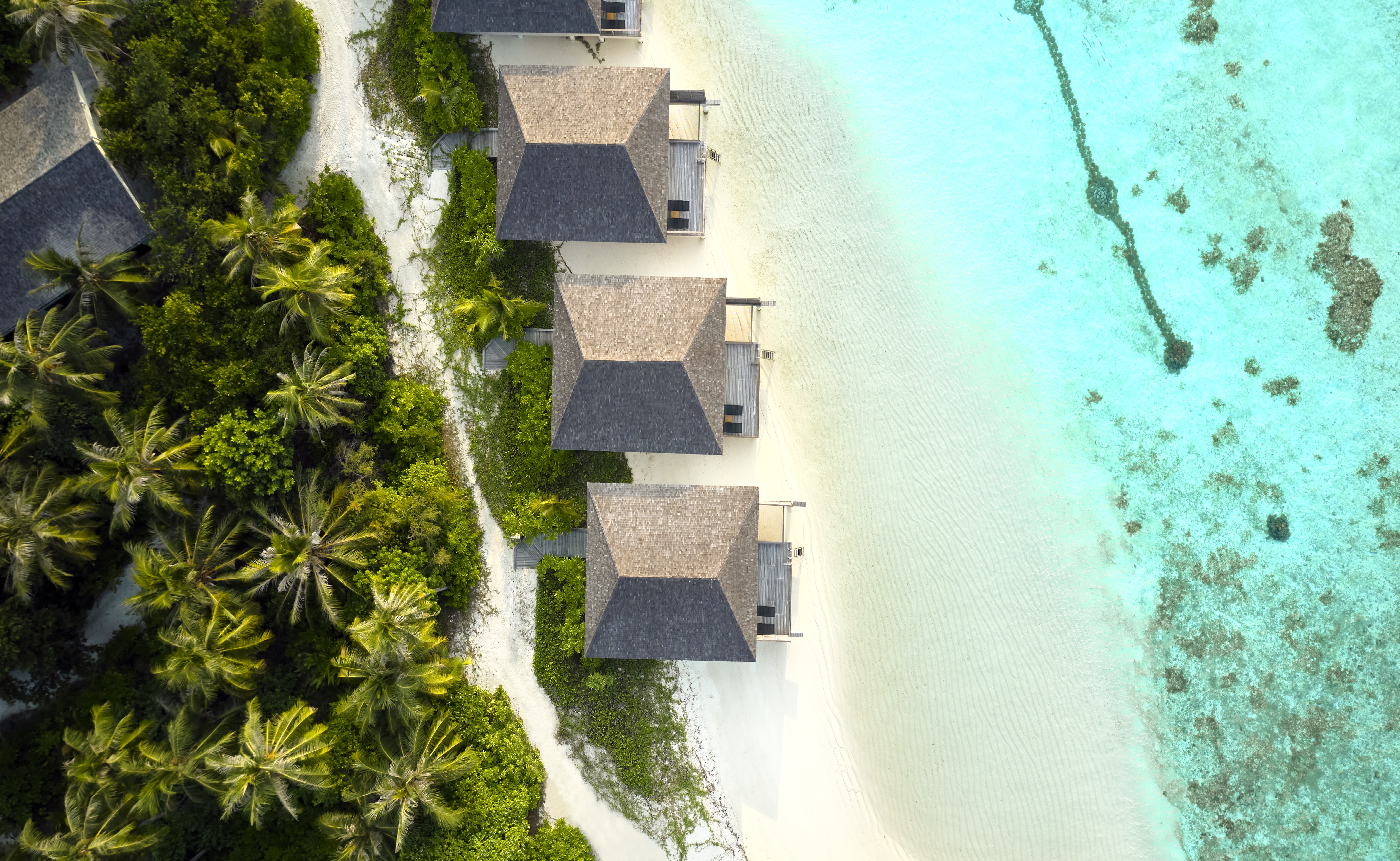 Each villa features a large walk-in wardrobe, Malin + Goetz bath amenities, iron & ironing board, a safe, well-stocked mini-bar, tea making facilities, Illy Espresso machine, LCD TV, and high-speed WiFi internet. Natural light floods through floor-to-ceiling glass, into the ocean-facing bed and private bathroom. Refreshing ocean breezes and ocean vistas are framed with sun loungers, sundeck, overwater hammock or private pool, making it the perfect haven to soak in the extraordinary Maldivian sunset.