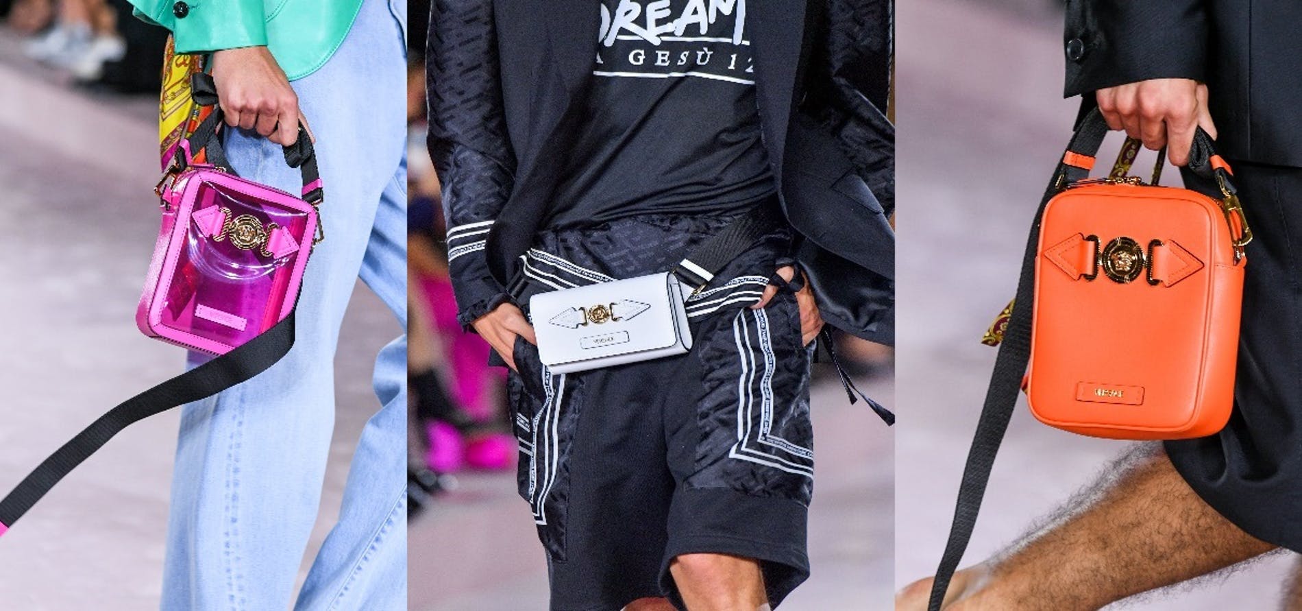 The new line brings together a series of contemporary accessory shapes. Cross-body bags are impactful, with a boxy, structured finish detailed with the Medusa Biggie hardware that runs throughout the line. A mini bag demonstrates versatility in design, with an adjustable strap for styling across the body or waist, while a pouch with detachable wristlet walks the line between smart and casual with distinct Versace confidence. A backpack in lightweight PVC features a detachable front pouch for a modular approach on-the-go. Small accessories, including different wallet shapes and an essential phone case, complete the line-up.