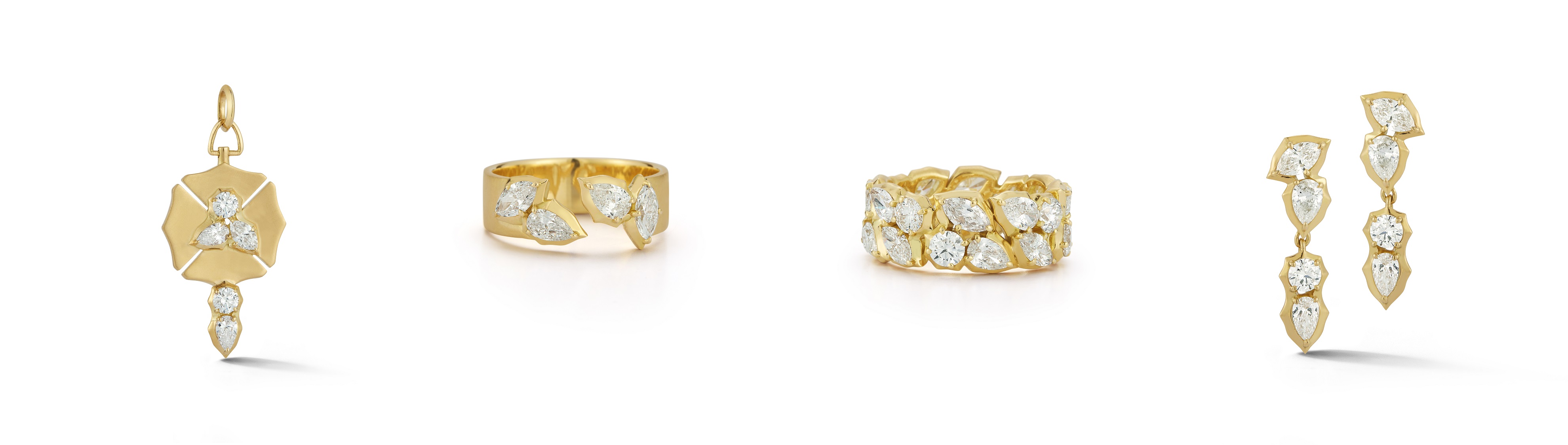 And I started over again. Fresh. It was hard..until it wasn’t. I looked at books of poppy flowers and started to fall in love with them. The hearty stalks that stand straight even when they wind around or drip down at the end. I love the fuzzy bulbs that slowly start to peel away into delicate leaves of crimson red and vibrant oranges. And I Iove how irregular they are…no two are the same. It reminded me of diamonds and how we always talk about the unique characteristics of each one. And most of all I love their name. Then the designs came..first the building blocks for the pieces. The 4 unique clusters we are using to create a collection of floral inspired, diamond focused jewelry pieces that still speak to our aesthetic of reinterpreted classics. An ode to vintage but totally modern with a dash of sex appeal.